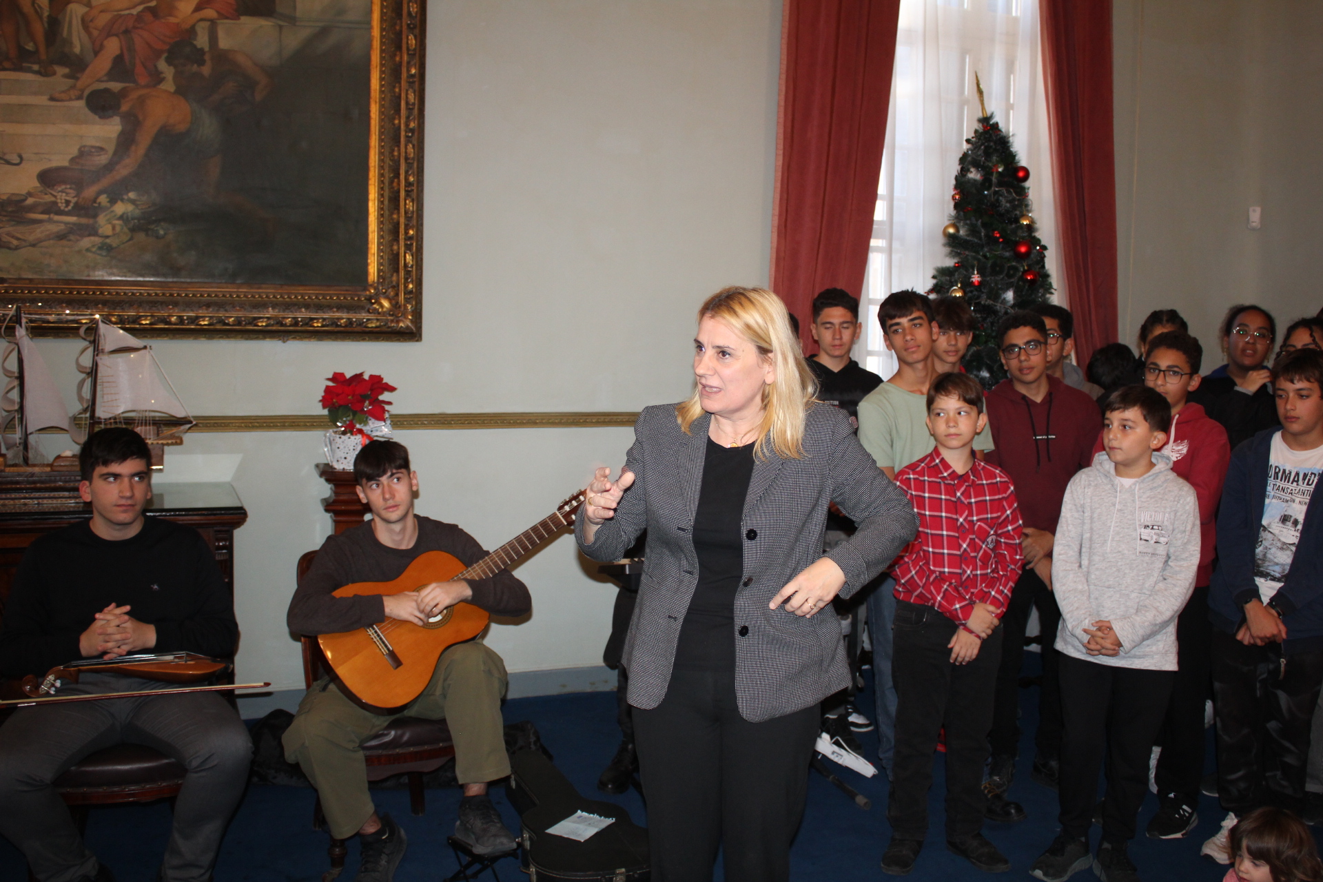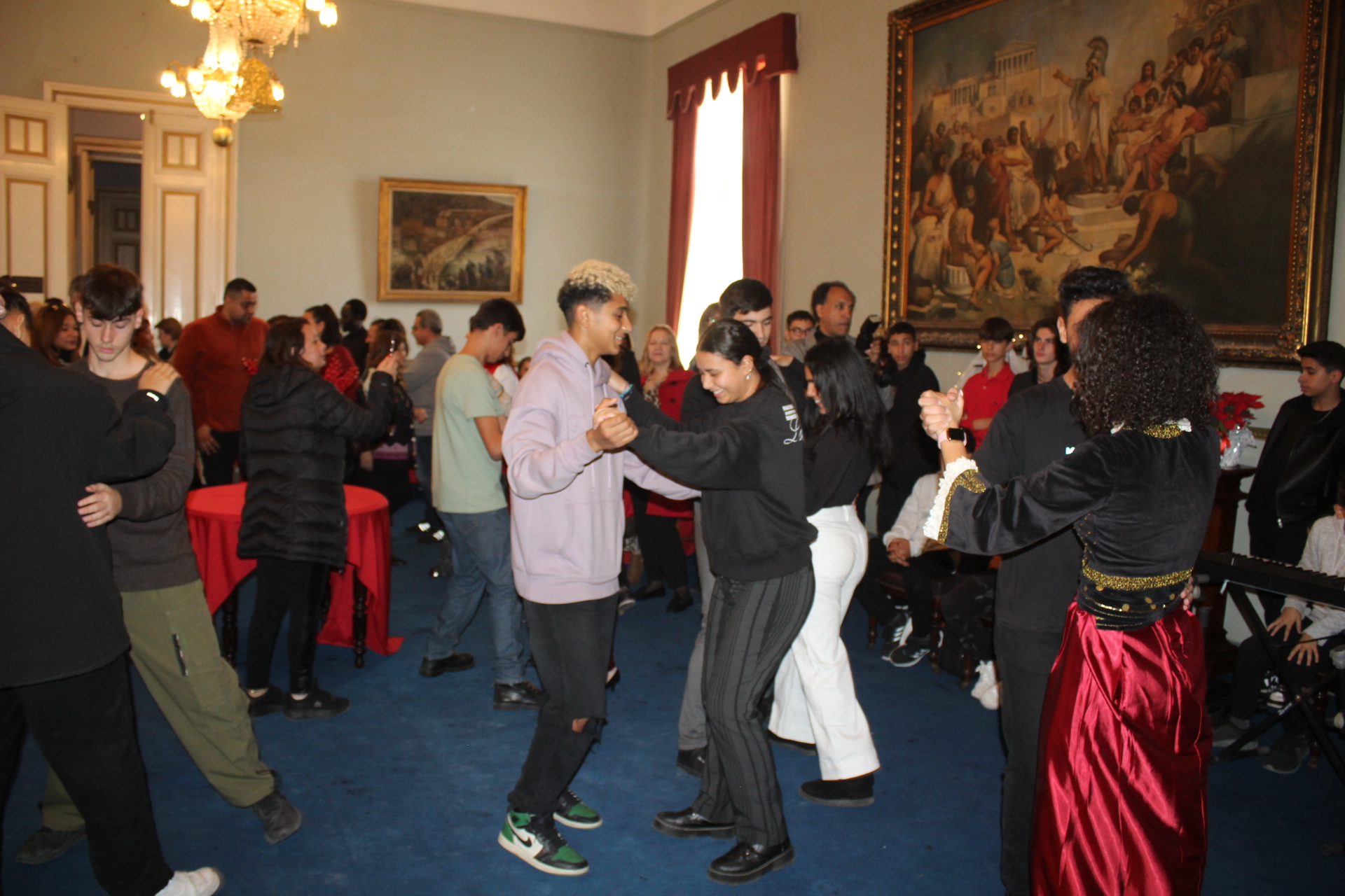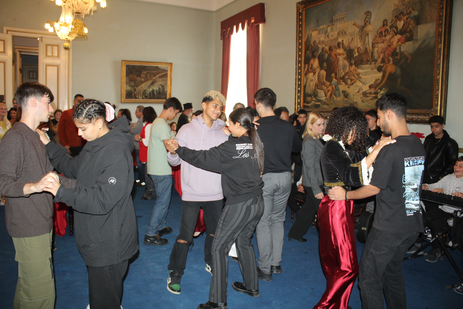 ΟΙ μαθητές των Ελληνικών Σχολείων, Δημοτικού και Γυμνασίου, τραγούδησαν ενώ  οι έφηβοι στη συνέχεια χόρεψαν εξαιρετικά βαλς όπου μέσα στην ιστορική αίθουσα με την μοναδικής ομορφιάς αρχιτεκτονική και τους πίνακες του παρελθόντος, ταξίδεψαν το μυαλό όλων ωσάν να βρίσκονταν σε μια βιενέζικη αίθουσα χορού.
