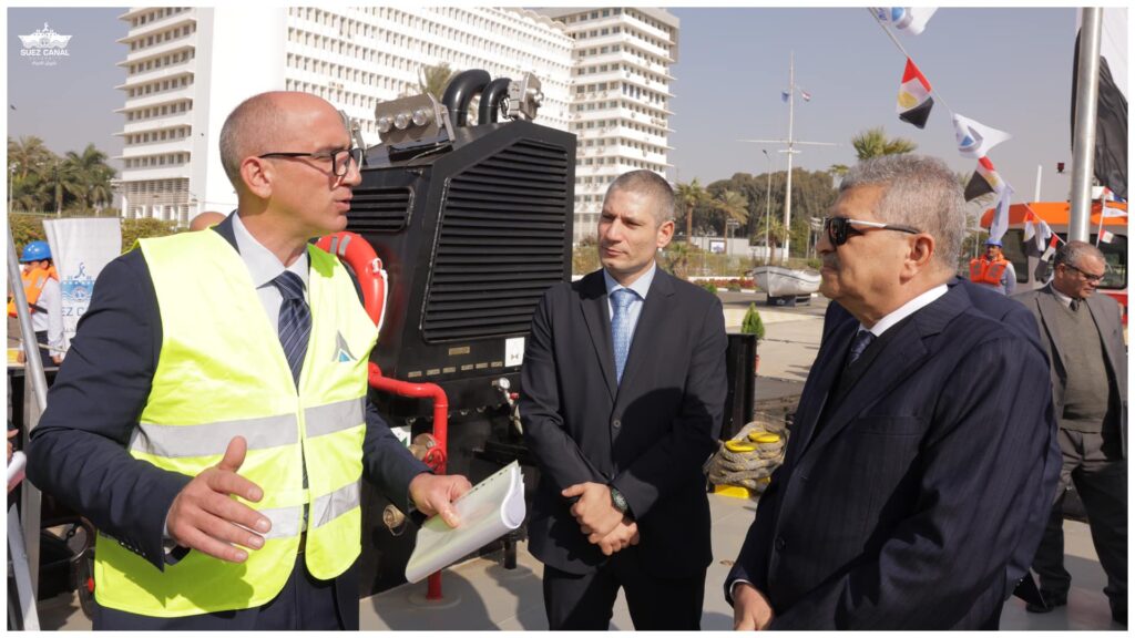 H.E Admiral Ossama Rabiee: Οι θαλάσσιες μονάδες του στόλου Anti-Polution της Αιγύπτου έχουν φτάσει. Έναρξη παροχής υπηρεσίας αποκομιδής απορριμμάτων στις δύο εισόδους της Διώρυγας κατά το πρώτο τρίμηνο του 2025. Το σκάφος συλλογής απορριμμάτων ECO SUEZ 1 είναι η πρώτη μονάδα στον φιλικό προς το περιβάλλον στόλο της Εταιρείας.