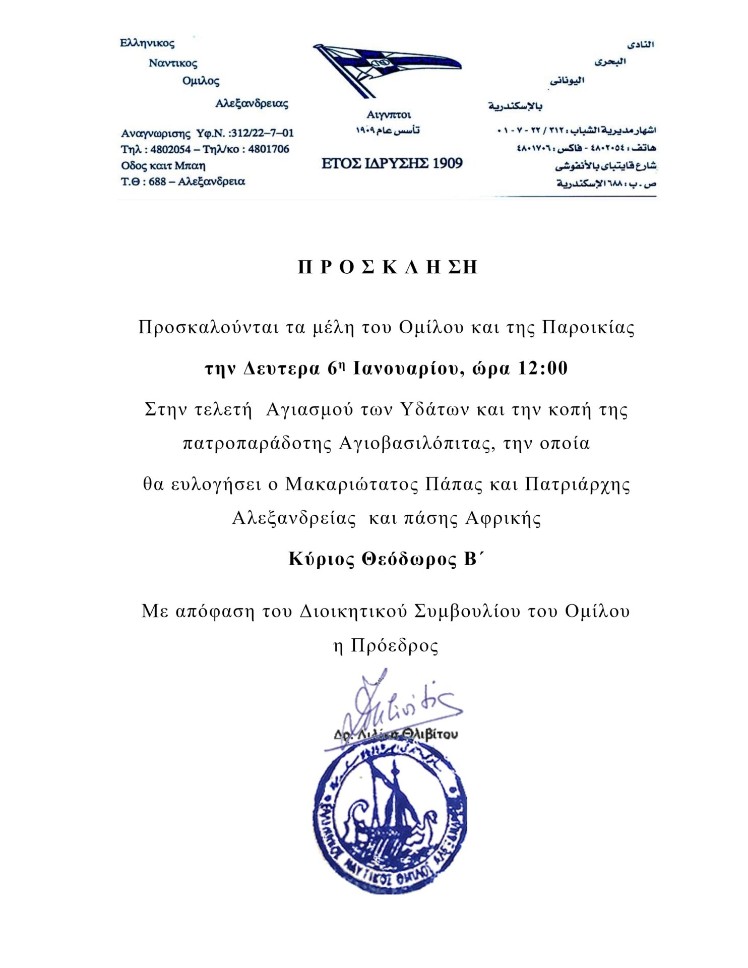 θα ευλογήσει ο Μακαριώτατος Πάπας και Πατριάρχης Αλεξανδρείας και πάσης Αφρικής