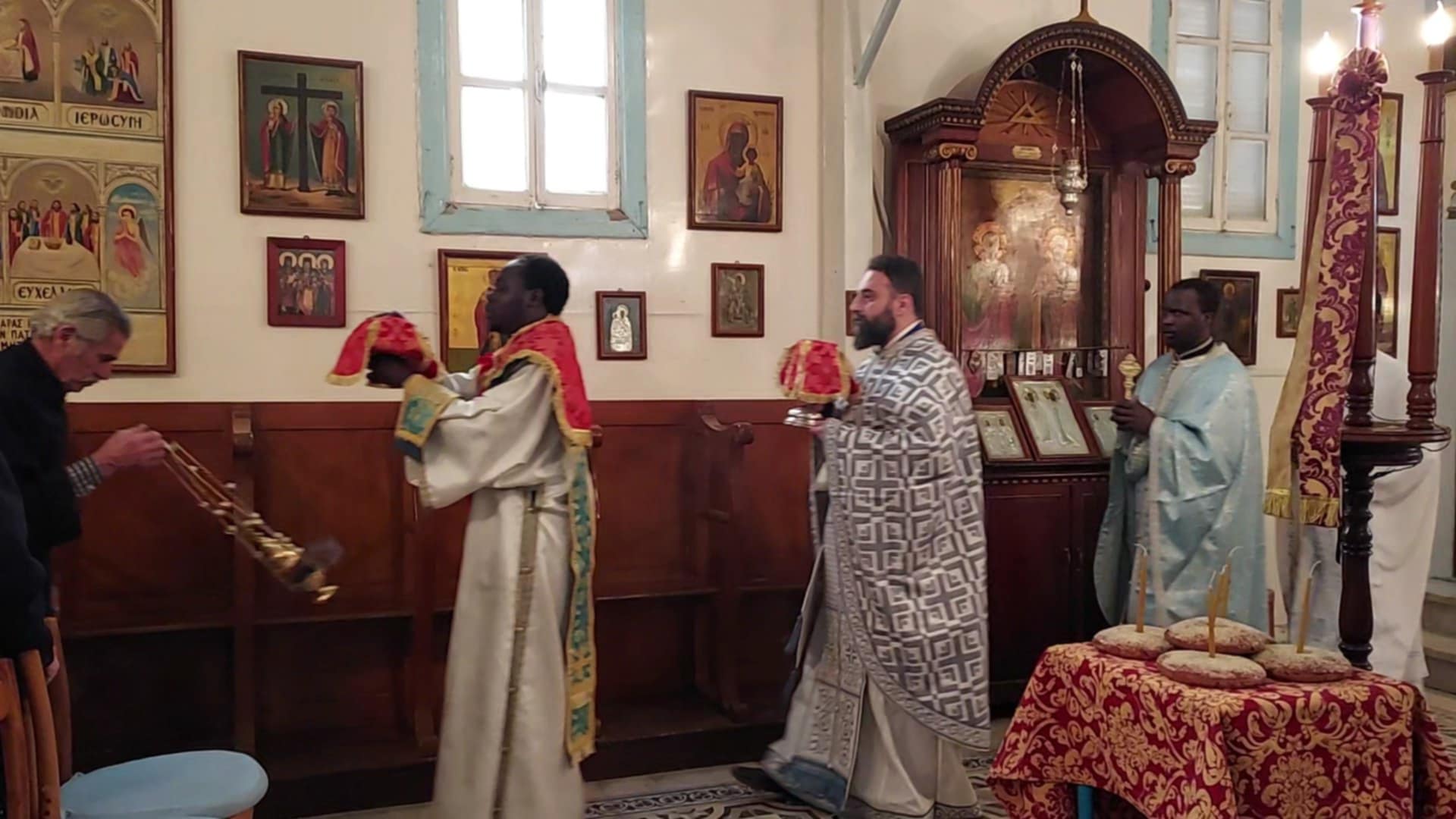 Στο τέλος της Θείας Λειτουργίας ο Σεβασμιότατος κ. Γερμανός, ομίλησε με δεινό λόγο και ξεχωριστή γνώση για τους εορτάζοντες Αγίους της Ορθοδοξίας, πληροφορώντας τους εκκλησιαζόμενους Αιγυπτιώτες για τη ζωή, τα θαύματα και το έργο τους.