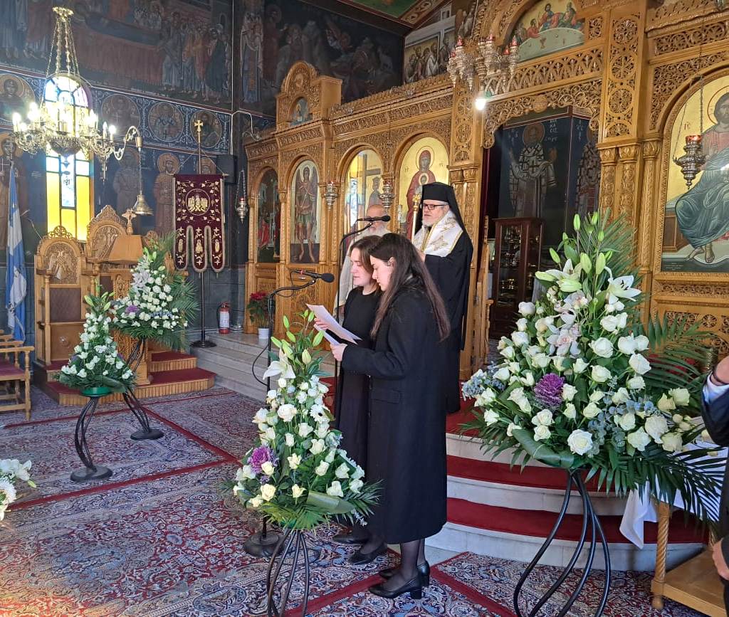 Με κατάνυξη παρακολούθησαν όλοι τον Σεβασμιώτατο Μητροπολίτη Γουινέας κ. Γεώργιο, κατά την επικήδεια τελετή του αγαπημένου τους προσώπου, και ιδιαίτερη συγκίνηση αισθάνθηκαν άπαντες όταν μετά τον λόγο του, οι δύο κόρες του εκλιπόντος διάβασαν με τρεμάμενη φωνή, αυτά που ένιωθαν για τον αγαπημένο τους πατέρα. «Αγαπημένε μας πατέρα εσύ μας νοιάστηκες, μας φρόντισες, μας αγάπησες, ήσουν δίπλα μας  κάθε στιγμή, σ αγαπάμε και σου οφείλουμε τα πάντα για όσα μας πρόσφερες. Σ ευχαριστούμε καλό σου ταξίδι».