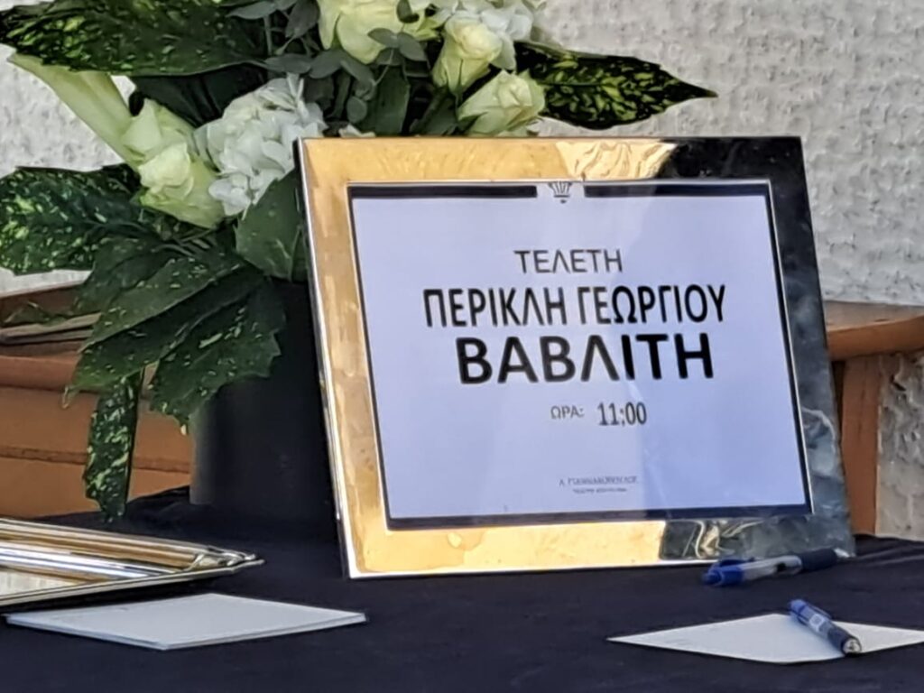 Εξέφρασε μεταξύ πολλών άλλων τα εξής: «Στην Αίγυπτο λένε πως η ψυχή όταν αποχωρίζεται τα εγκόσμια,  πλανάται με την μορφή ενός Αγγέλου  στα μέρη που έζησε και αγάπησε. Ο αγαπημένος μας Περικλής Βαβλίτης, θα ταξιδέψει στο Λονδίνο όπου γεννήθηκε και σπούδασε,  θα επισκεφθεί την Γενεύη στην Ελβετία που εργάστηκε, θα περάσει από την Αλεξάνδρεια της Αιγύπτου, τον τόπο που μεγάλωσαν οι γονείς του και θυμόταν με αγάπη και νοσταλγία, και στη συνέχεια θα σταθεί εδώ στην Αθήνα, για να οδηγηθεί στην αιωνιότητα κοντά στο Θεό μας. Ας αποτελέσει αυτό την παρηγορία για τους αγαπημένους του συγγενείς. Τις δυο του κόρες που τις λάτρευε και τον λάτρευαν.  Την Ελισάβετ και την Μαριέττα. Τις καμάρωνε πολύ, σε όλα και ήταν πάντα δίπλα τους για να τις υποστηρίξει από το σχολείο μέχρι την ώρα που αιφνιδίως πληροφορηθήκαμε το θλιβερό μαντάτο. Αγαπούσε τον κήπο του και τα λουλούδια του και γέμιζε η ψυχή του από την πίστη στο Θεό και την αγάπη προς το συνάνθρωπο. Αιωνία του η Μνήμη».