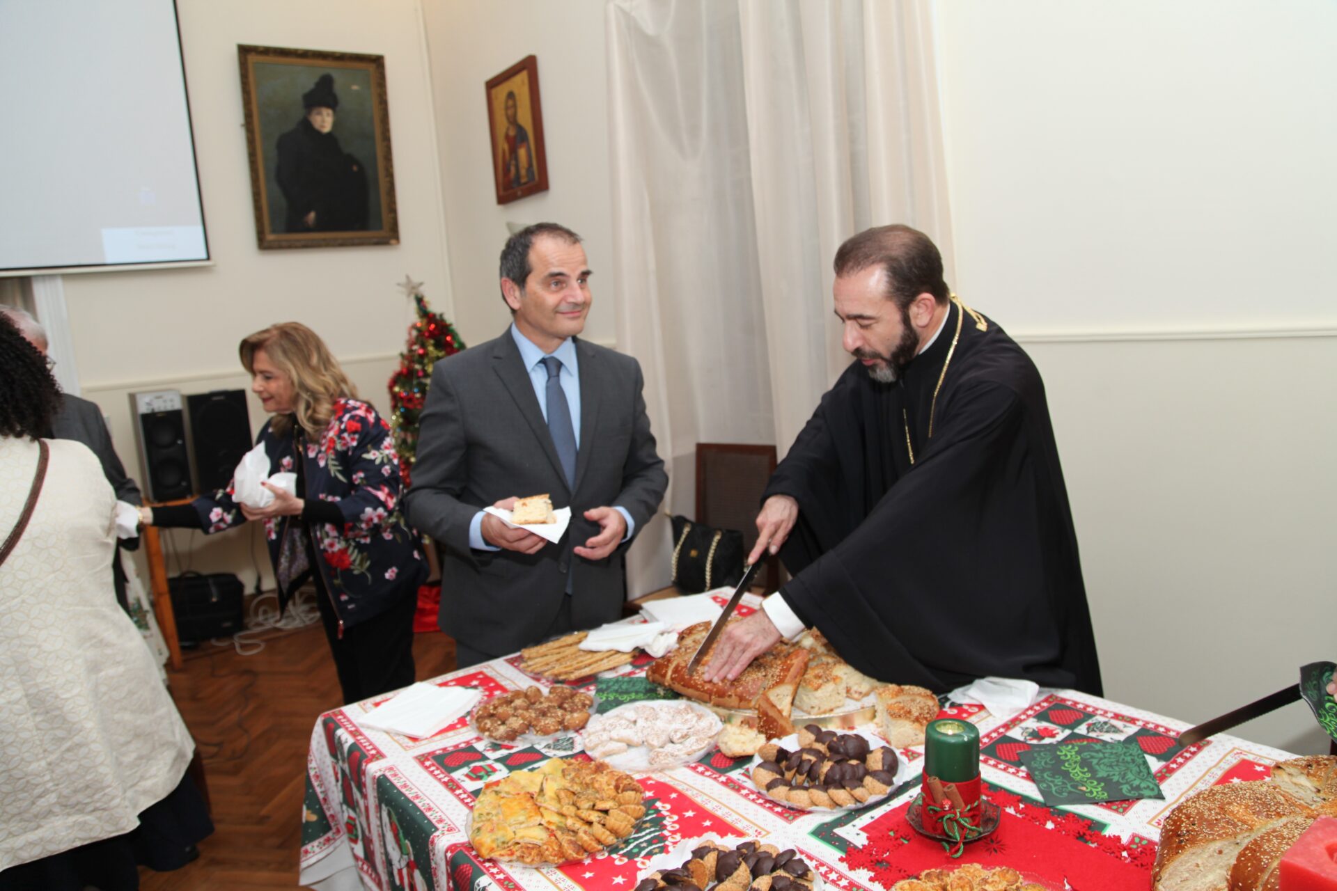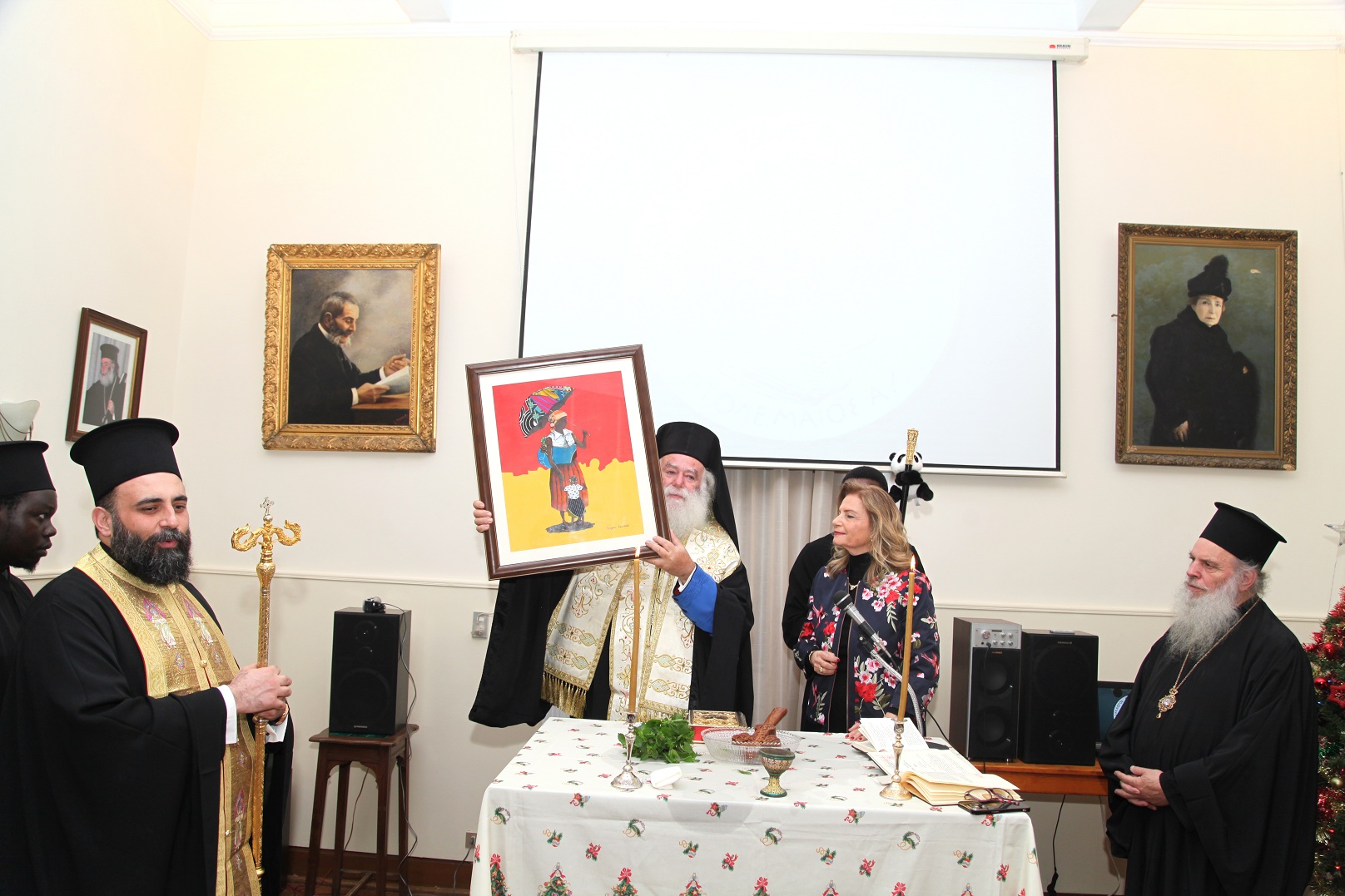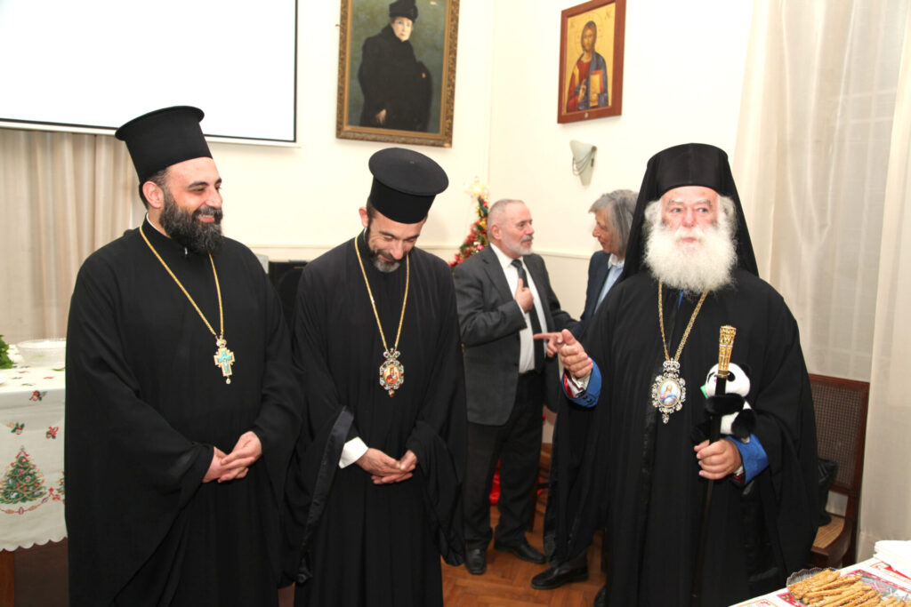 Η Πρόεδρος του ανωτέρω σωματείου κα Λιλίκα Θλιβίτου, υποδέχθηκε με το χαμόγελο της αισιοδοξίας τους προσκεκλημένους συμπάροικους, προεξάρχοντος βέβαια του Πάπα και Πατριάρχη Αλεξανδρείας και πάσης Αφρικής Θεοδώρου Β΄, άρτι αφιχθέντος εκ Τιράνων όπου παρευρέθη στην επικήδεια τελετή του Μακαριστού Αρχιεπισκόπου Αλβανίας Αναστασίου. Συνοδεύετο από τον Σεβασμιώτατο Μητροπολίτη Πτολεμαίδος κ. Παντελεήμονα Αρχιγραμματέα της Ιεράς Συνόδου, τον Θεοφιλέστατο Επίσκοπο Ταμιάθεως κ. Γερμανό Προϊστάμενο της Ιεράς Μονής του Οσίου Σάββα του Ηγιασμένου και τον Πανοσιολογιότατο Αρχιμανδρίτη – Πατριαρχικό Επίτροπο κ. Δαμασκηνό καθώς και μαθητών της Πατριαρχικής Σχολής Άγιος Αθανάσιος.