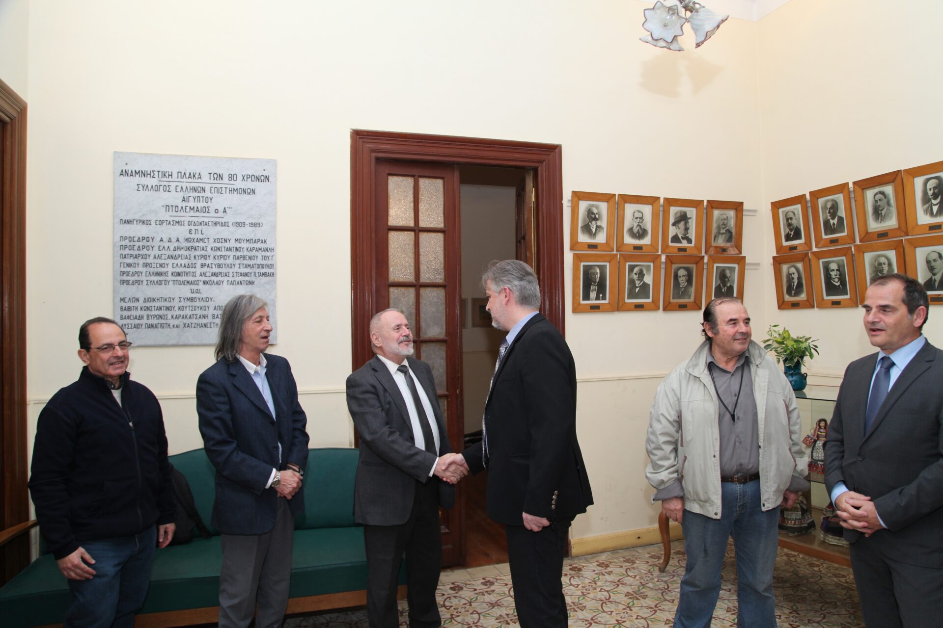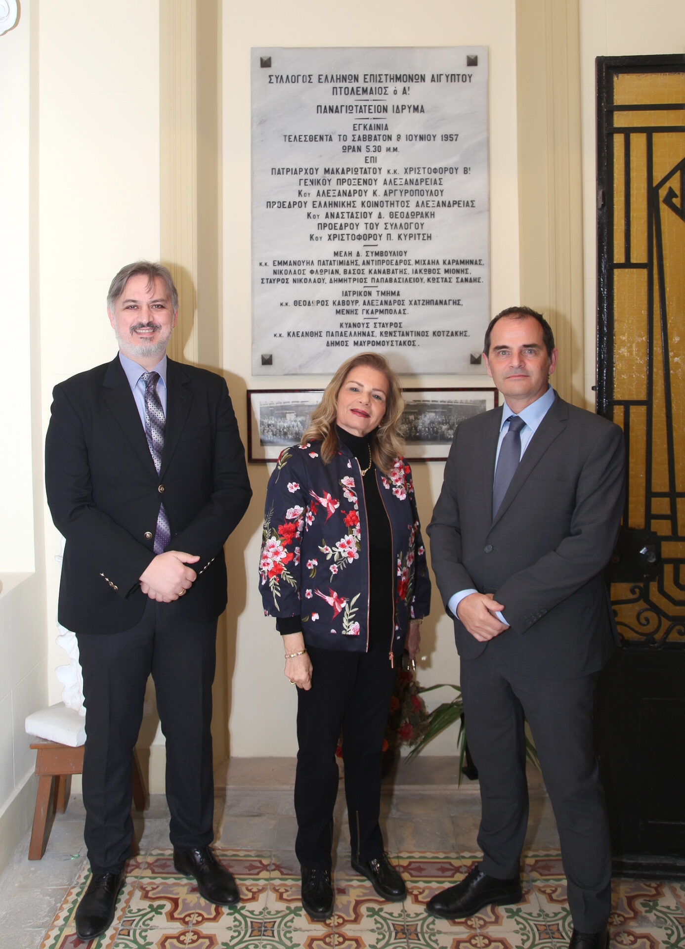 Ο Πρόεδρος της Ελληνικής Κοινότητας Αλεξανδρείας κ. Ανδρέας Βαφειάδης, με τον Γενικό Γραμματέα κ. Νικόλαο Κατσιμπρή και τον Οικονομικό Επόπτη κ. Εμμανουήλ Τατάκη, ικανοποιημένοι για το αποτέλεσμα της ανακαινισμένης επαύλεως εισέπρατταν τα συγχαρητήρια των παρισταμένων για την επιτυχή ολοκλήρωση των εργασιών.