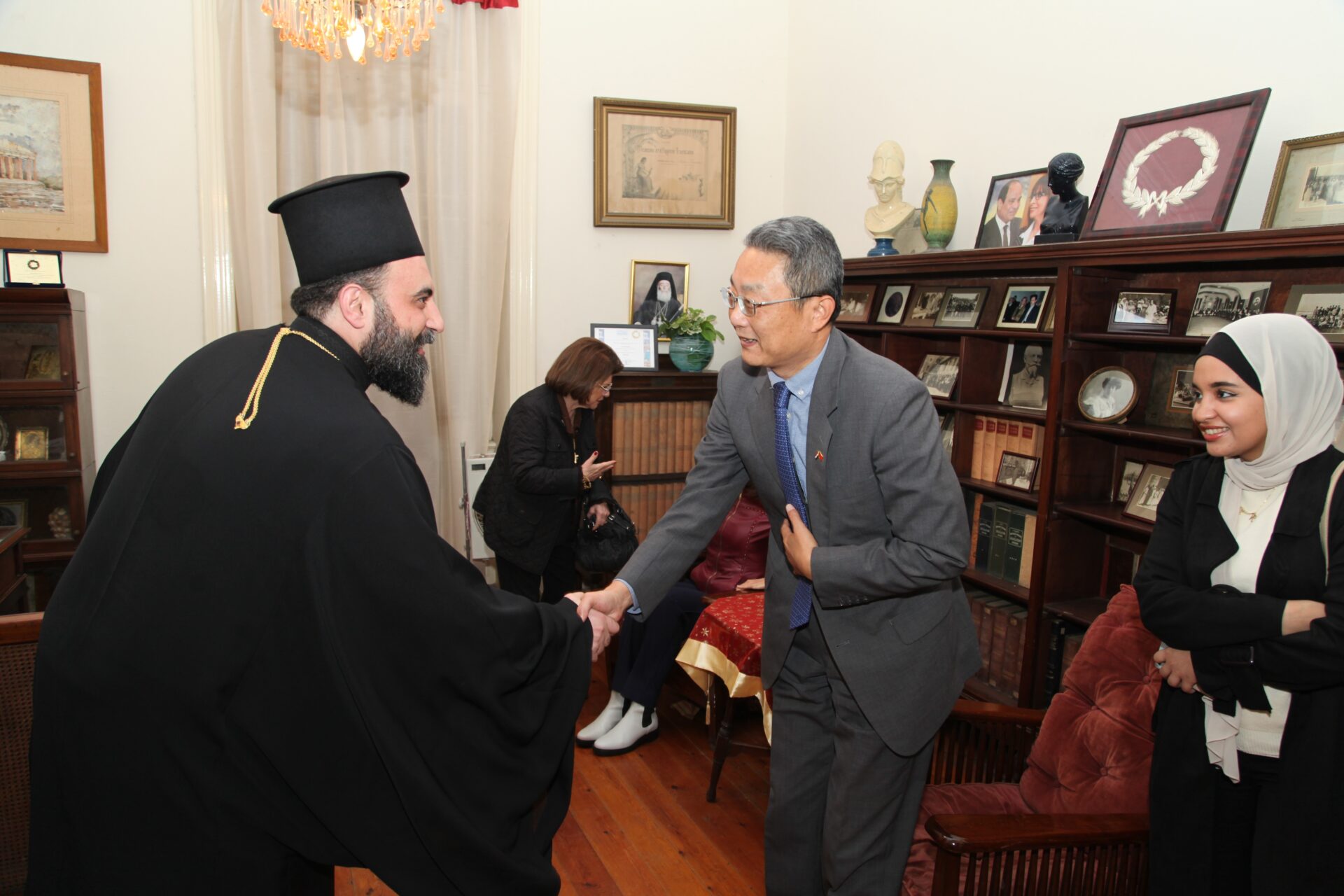 Εκτός των προαναφερομένων, πολλοί οι προσκεκλημένοι εκ των αλεξανδρινών θεσμών, τους οποίους ονομαστικά παραθέτουμε κάτωθι: Οι Γενικοί Πρόξενοι των χωρών Κίνας, Mr Yi Yang – Παλαιστίνης, Dr. Wafik Shehata Abo Sido και Λιβανου Mr. Abir Ali. Επίσης παρούσα και η Mrs Mona Hakim των Rotary όπως και η Πρόεδρος του Λυκείου Ελληνίδων κα Αλίκη Αντωνίου, οι Διευθύντριες του Τοσιτσαίου – Πρατσίκειου Δημοτικού κα Αδαμαντία Νικολακοπούλου και του Αβερωφείου Γυμνασίου Λυκείου κα Αφροδίτη Πεβαρέτου μαζί με τους εκπαιδευτικούς: κα Πασχαλίνα Αγαπιάδου, κ. Αλέξανδρο Μπάση, κ. Παναγιώτη Θεοδώρου, κα Δέσποινα Κοβατζή, κα Ελένη Παπαθανασίου, κα Βάνα Μπούρα και κα Λένα Παπακυριάκου, ενώ ο κ. Νικόλαος Χατζησκάκης με τον κ. Χρήστο Αθανασόπουλο και τον κ. Ιωάννη Γενειατάκη έπαιξαν τα μουσικά τους όργανα και ψυχαγώγησαν με τις χαρούμενες νότες τους την πολυπληθή ομήγυρη. Το παρών έδωσαν ακόμα και οι δύο φιλέλληνες κ. Μάγκντι Χασάν Καθηγητής Νεφρολογίας της Ιατρικής Σχολής του Πανεπιστημίου Αλεξανδρείας και η κα. Ρουάϊντα Μαμούνι Dr του Πανεπιστημίου Αλεξανδρείας, ο κ. Πέτρος Λούτσης της Κυπριακής Αδελφότητας και Προιστάμενος του Ιερού Ναού Αγίου Νικολάου, ο πρώην Αντιπρόεδρος της ΕΚΑ κ. Μιχάλης Αρσλανίδης, οι Πρόεδροι των Αραβόφωνων παροικιών Mr.Fouad Farah, Raif dib, της φιλανθρωπίας George Offiesh και ο κ. Γιάννης Αμπτελνούρ και βέβαια ο Γενικός Γραμματέας και Διευθυντής της Πατριαρχικής Βιβλιοθήκης κ. Δημήτριος Καλομοιράκης.