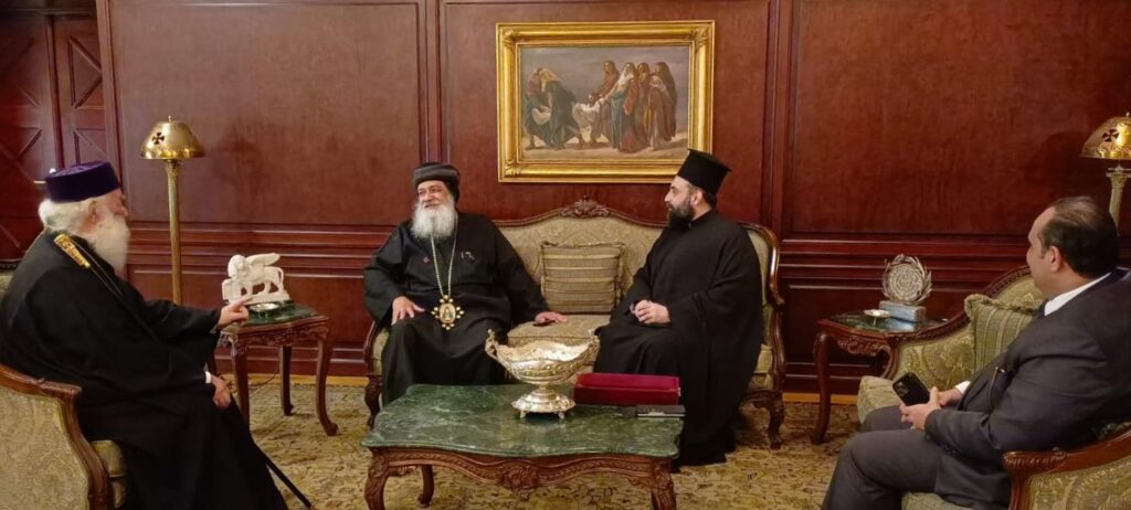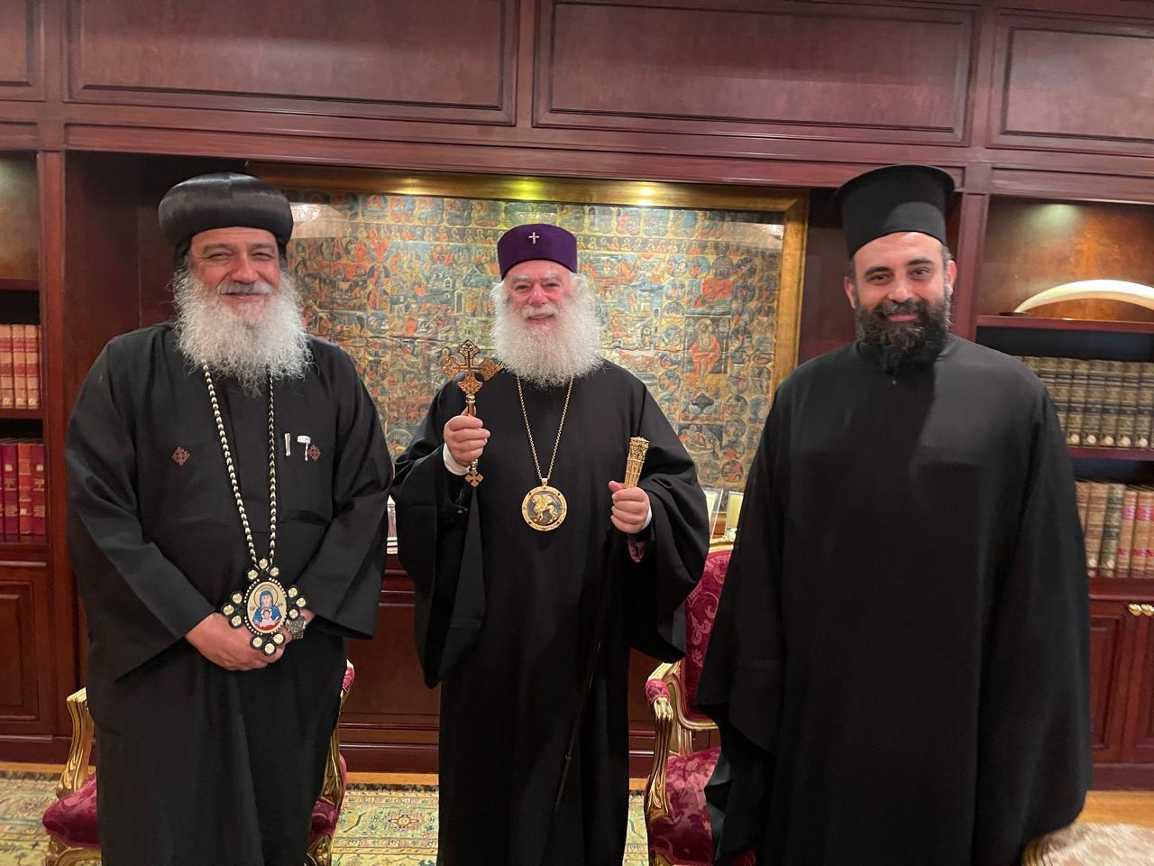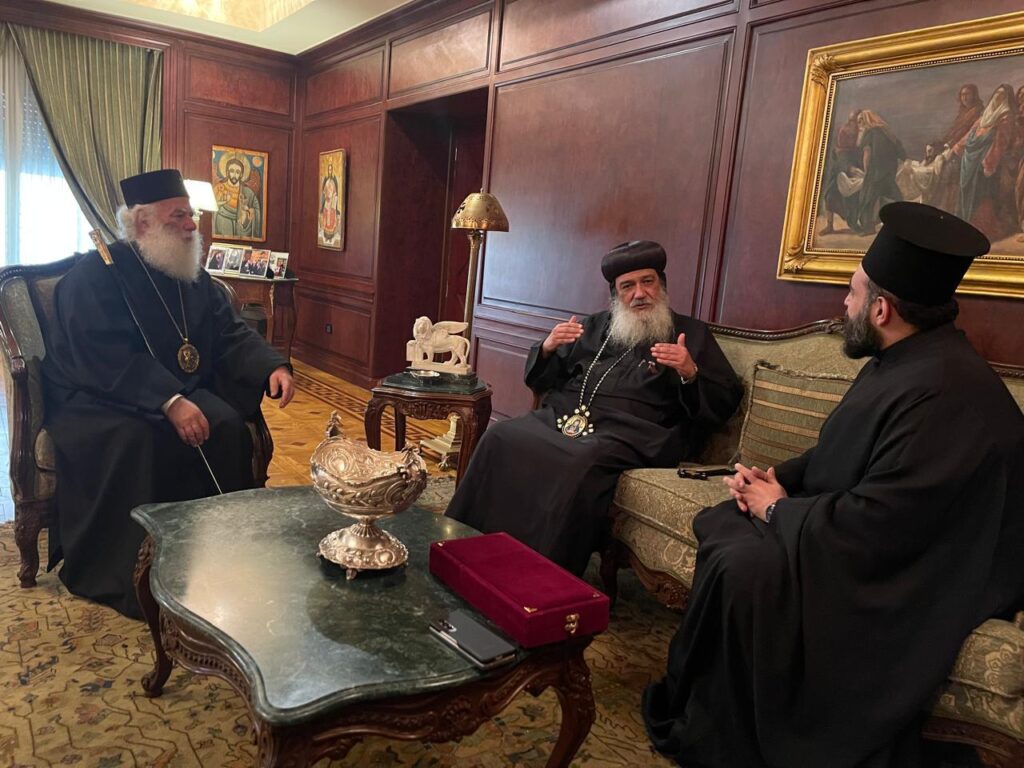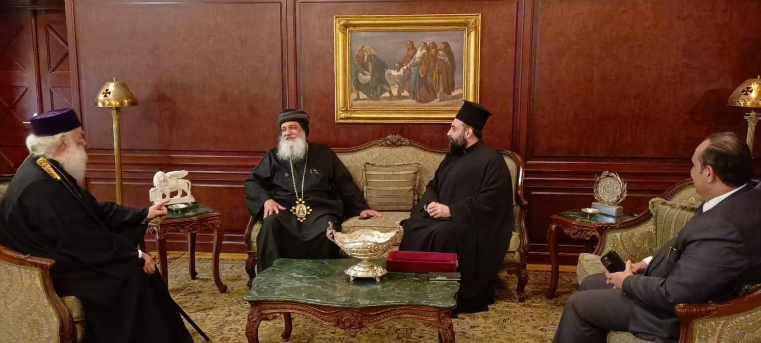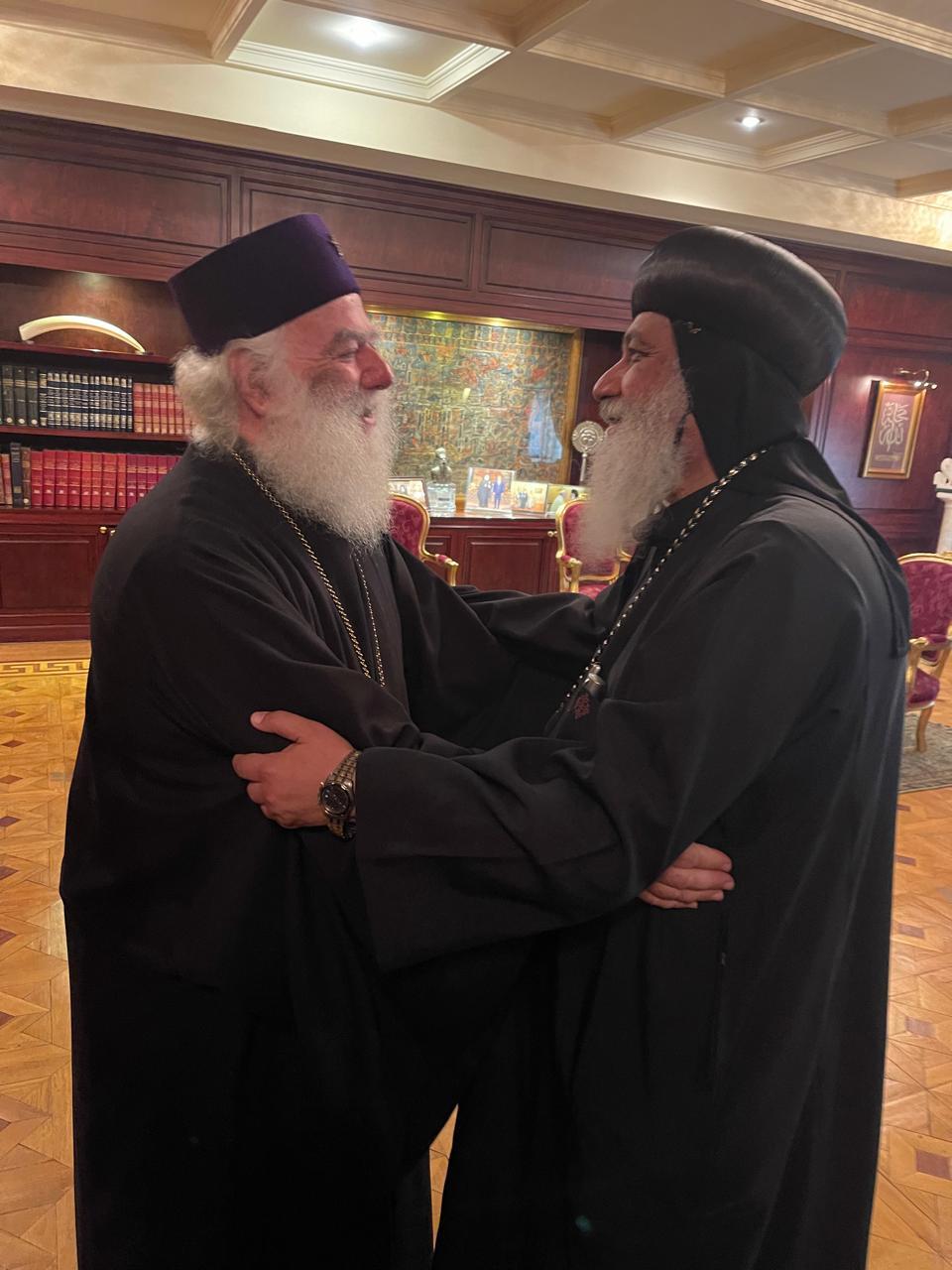 Περαίνων ο Θεοφιλέστατος μετέφερε στον Μακαριώτατο την αδελφική αγάπη και τις ευχές του Αγιωτάτου Πατριάρχου της Κοπτικής Εκκλησίας κ.Tawadros II. Ο σεπτός Προκαθήμενος του Θρόνου του Αγίου Μάρκου, αφού ανέπτυξε σκέψεις και τρόπους συνεργασία προς ανάπτυξη υγειονομικών δράσεων επ’ωφελειά του εμπεριστάτου Αφρικανού αδελφού, τον ευχαρίστησε για την επίσκεψη, εξέφρασε εγκάρδιους χαιρετισμούς προς τον Κόπτη Πατριαρχη, υπογραμμίζοντας ιδιαιτέρως  την πολυαιώνια ειρηνική πνευματική πορεία των δύο Εκκλησιών στην ευλογημένη Νειλοχώρα.
