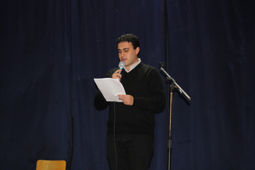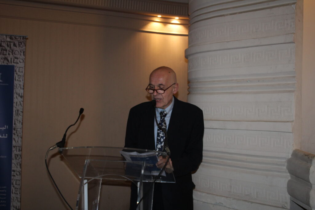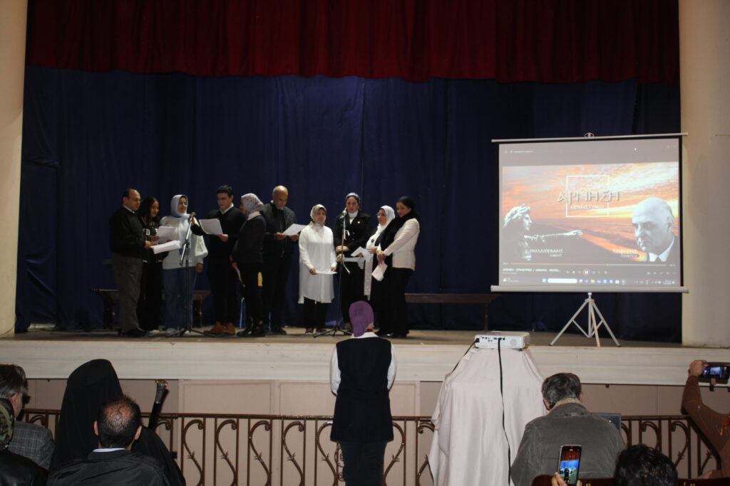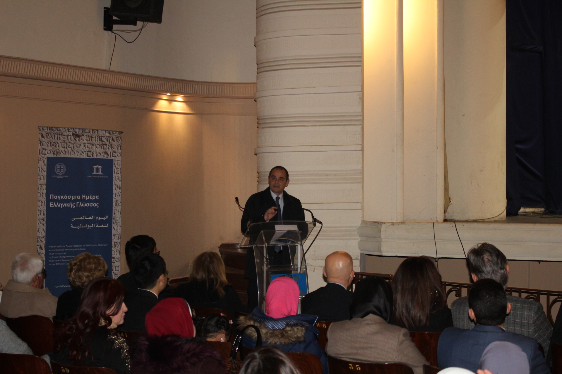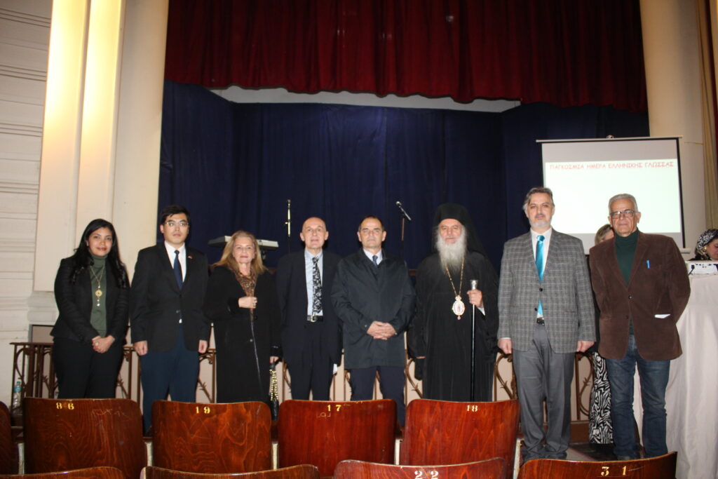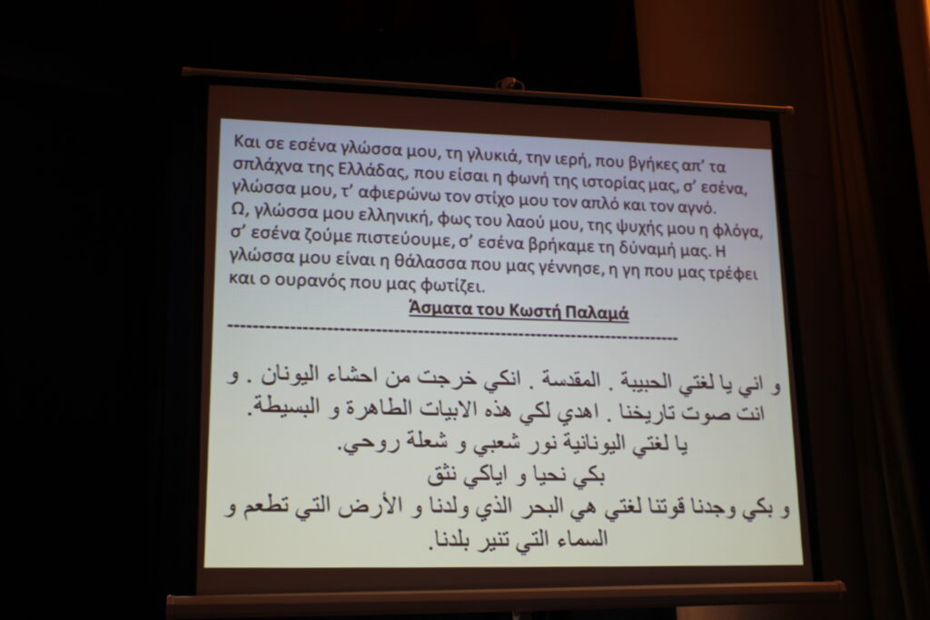 Οι χαιρετισμοί ολοκληρώθηκαν με την ομιλία του Συντονιστή Βόρειας Αφρικής και Μέσης Ανατολής κ. Γεωργίου Κοκορέλη, του καθ΄ ύλην αρμόδιου για την πορεία και δραστηριότητα της εκπαιδευτικής κοινότητας. Ήταν μια ομιλία με αναφορές στην γέννηση της ελληνικής γλώσσας, στην ιστορική της διαδρομή και στην μετεξέλιξή της έτσι ώστε να φτάσει σήμερα στο σημείο να αναγνωρίζεται ως η σημαντικότερη γλώσσα των γλωσσών. Και όπως δήλωσε με τον εορτασμό της επιδιώκεται η ανάδειξη της οικουμενικότητας που εμπεριέχει και η συμβολή της στον γλωσσικό και πολιτισμικό εμπλουτισμό των ευρωπαϊκών και πολλών άλλων Γλωσσών του Πλανήτη.