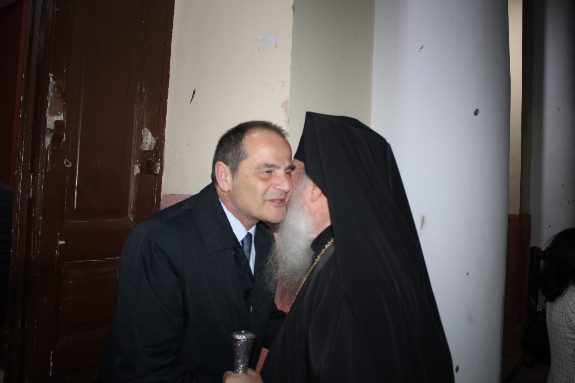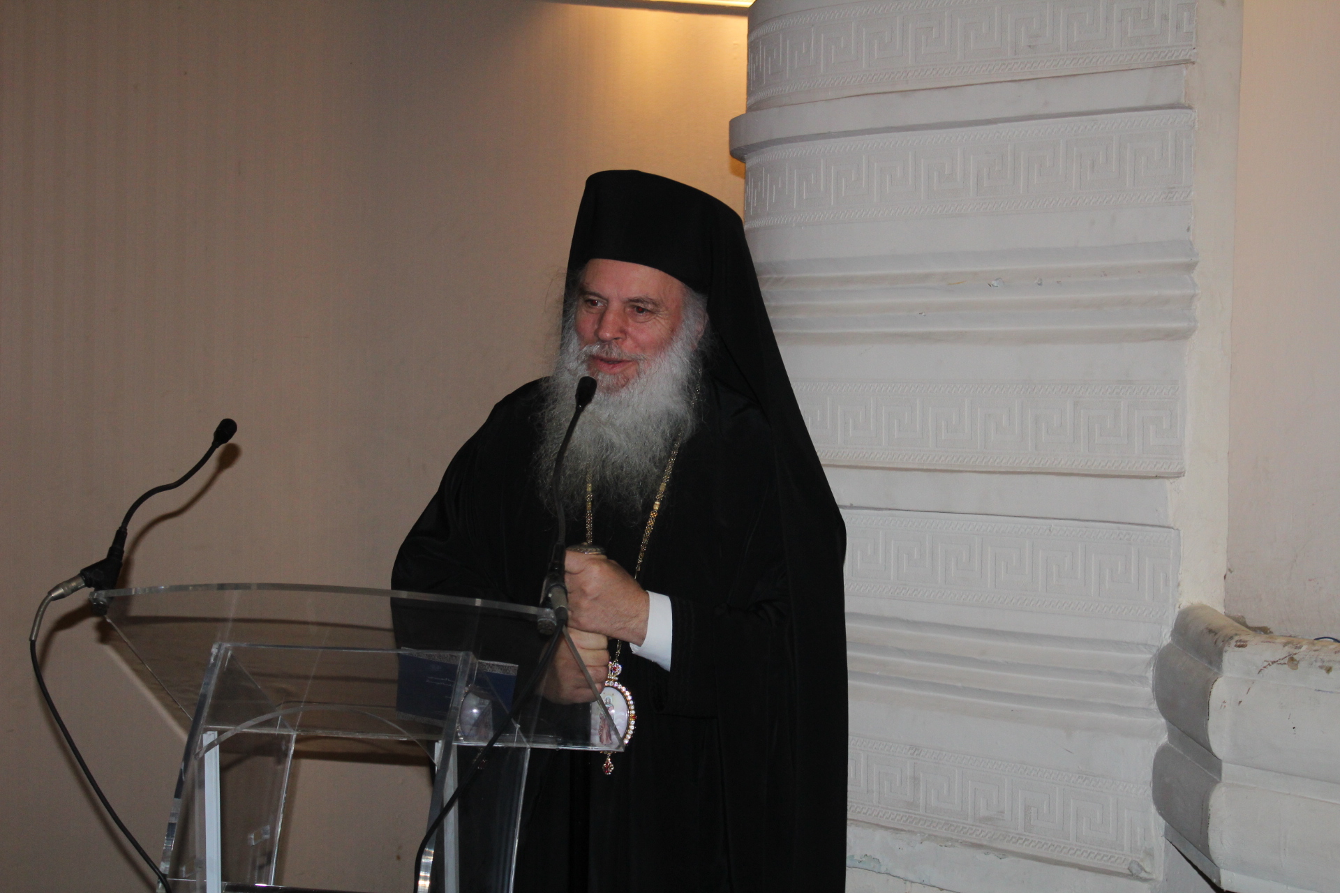 Οι χαιρετισμοί άρχισαν με τον Πανιερώτατο Επίσκοπο Ταμιάθεως κ. Γερμανό, Προϊστάμενο τής Ιεράς Μονής του Οσίου Σάββα του Ηγιασμένου, και Ψυχή της Πατριαρχικής Σχολής, λειτουργώντας ως εκπρόσωπος του Μακαριωτάτου και μεταφέροντας τις ευχές του καθότι απουσιάζει στο ιεραποστολικό του ταξίδι.
