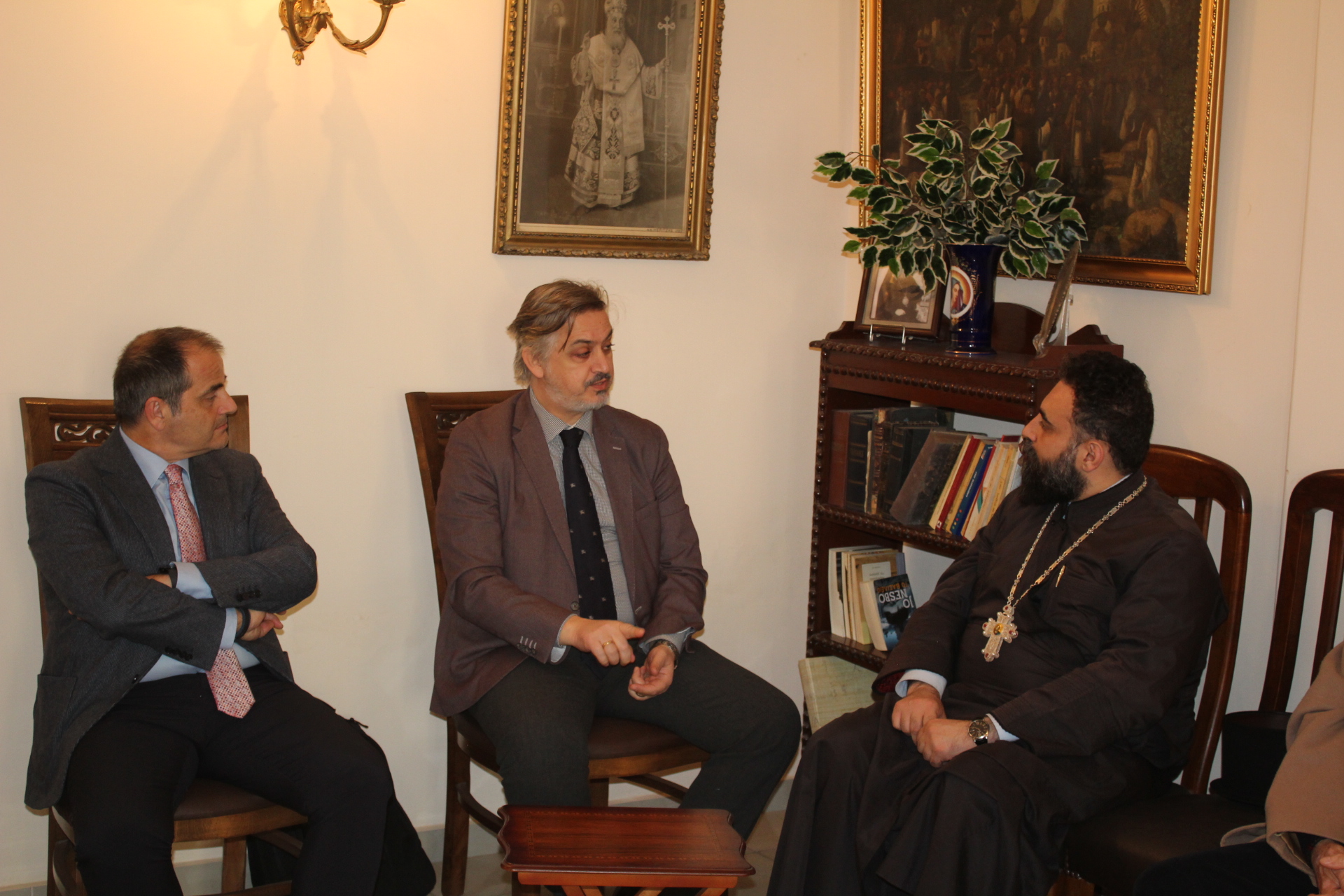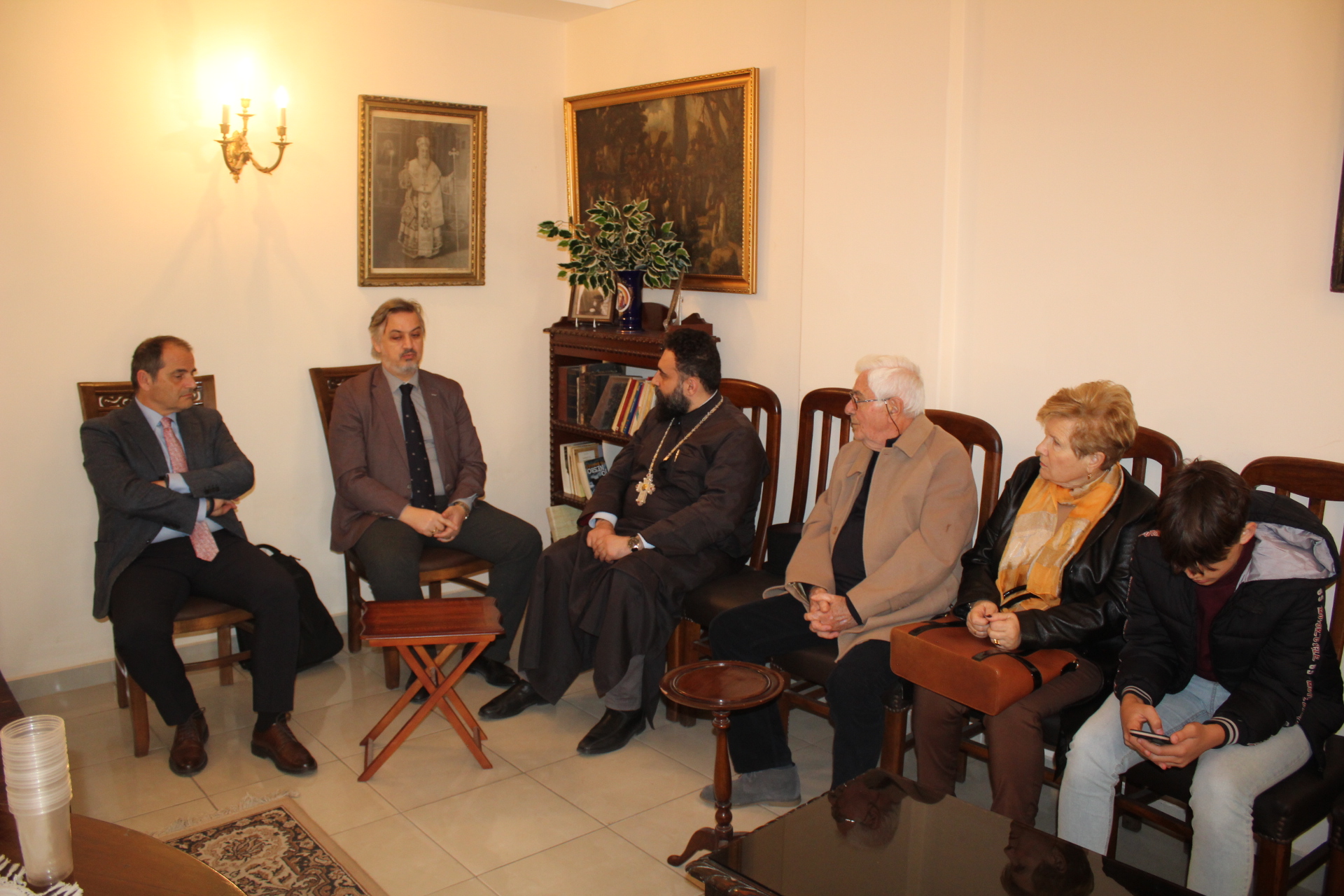 Στη συνέχεια προσεφέρθη καφές στο Αρχονταρίκι του Ευαγγελισμού, όπου εκεί ο Πανοσιολογιότατος Αρχιμανδρίτης κ. Δαμασκηνός ενημέρωσε τον Γενικό Πρόξενο και τον Πρόεδρο της ΕΚΑ για το επιτυχημένο για μια ακόμα φορά ταξίδι του Μακαριωτάτου.