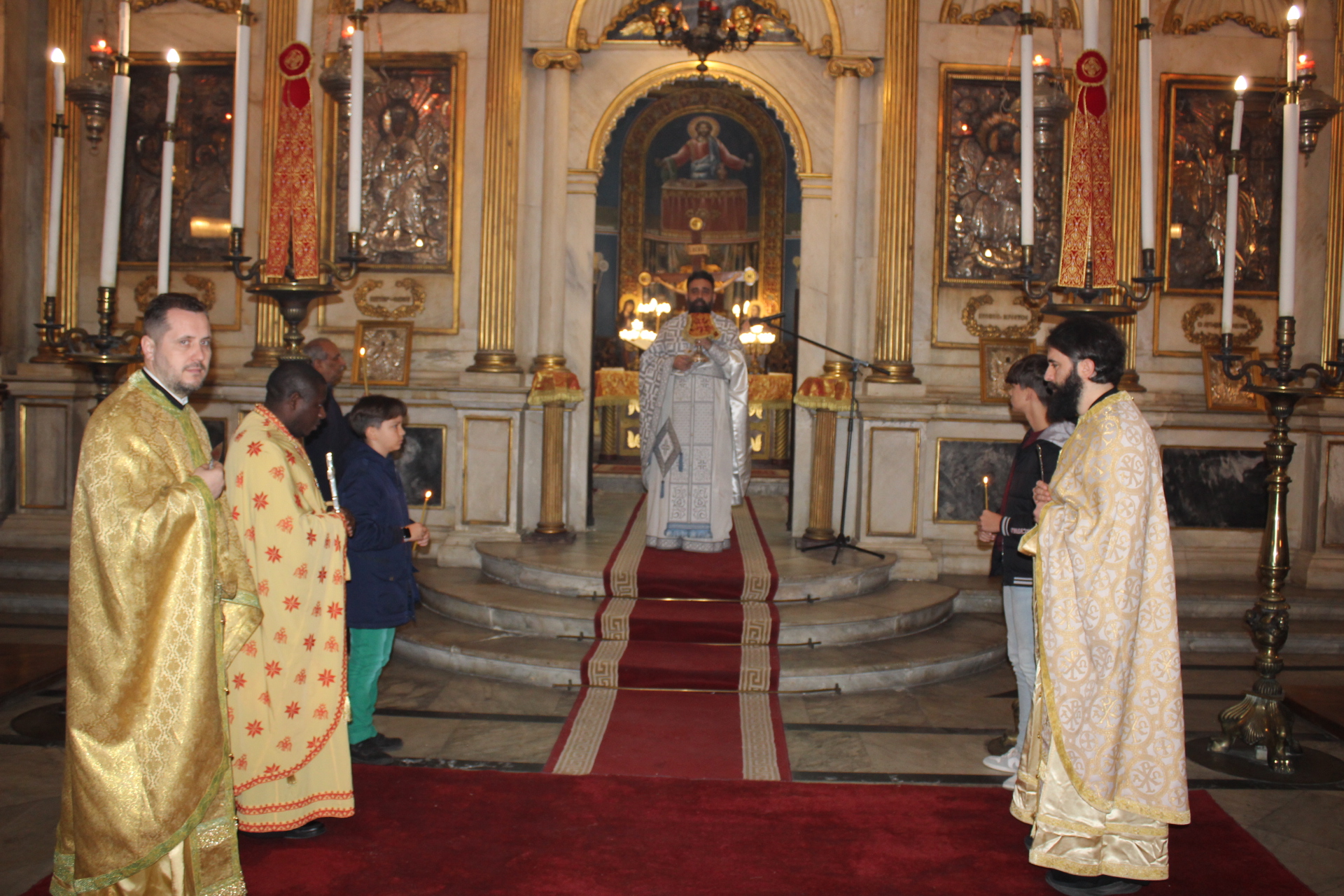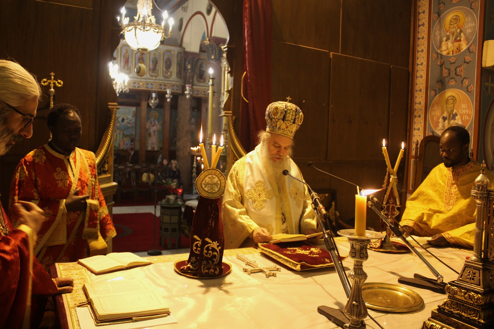 Την Θεία Λειτουργία τέλεσε ο Πανοσιολογιότατος Αρχιμανδρίτης κ. Δαμασκηνός – Πατριαρχικός Επίτροπος, ο οποίος υποδέχθηκε τους επισκέπτες πιστούς με ξεχωριστή ζέση, εκφράζοντας προς αυτούς τις ευχές και τις ευλογίες Μακαριωτάτου, Πάπα και Πατριάρχη Αλεξανδρείας και πάσης Αφρικής κ.κ. Θεοδώρου Β’, ο οποίος για άλλη μια φορά τελεί το θεάρεστο ιεραποστολικό του έργο.