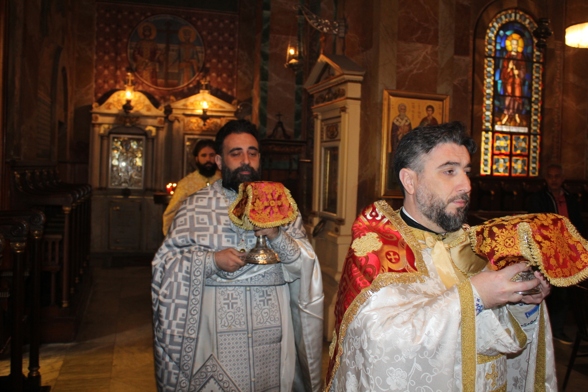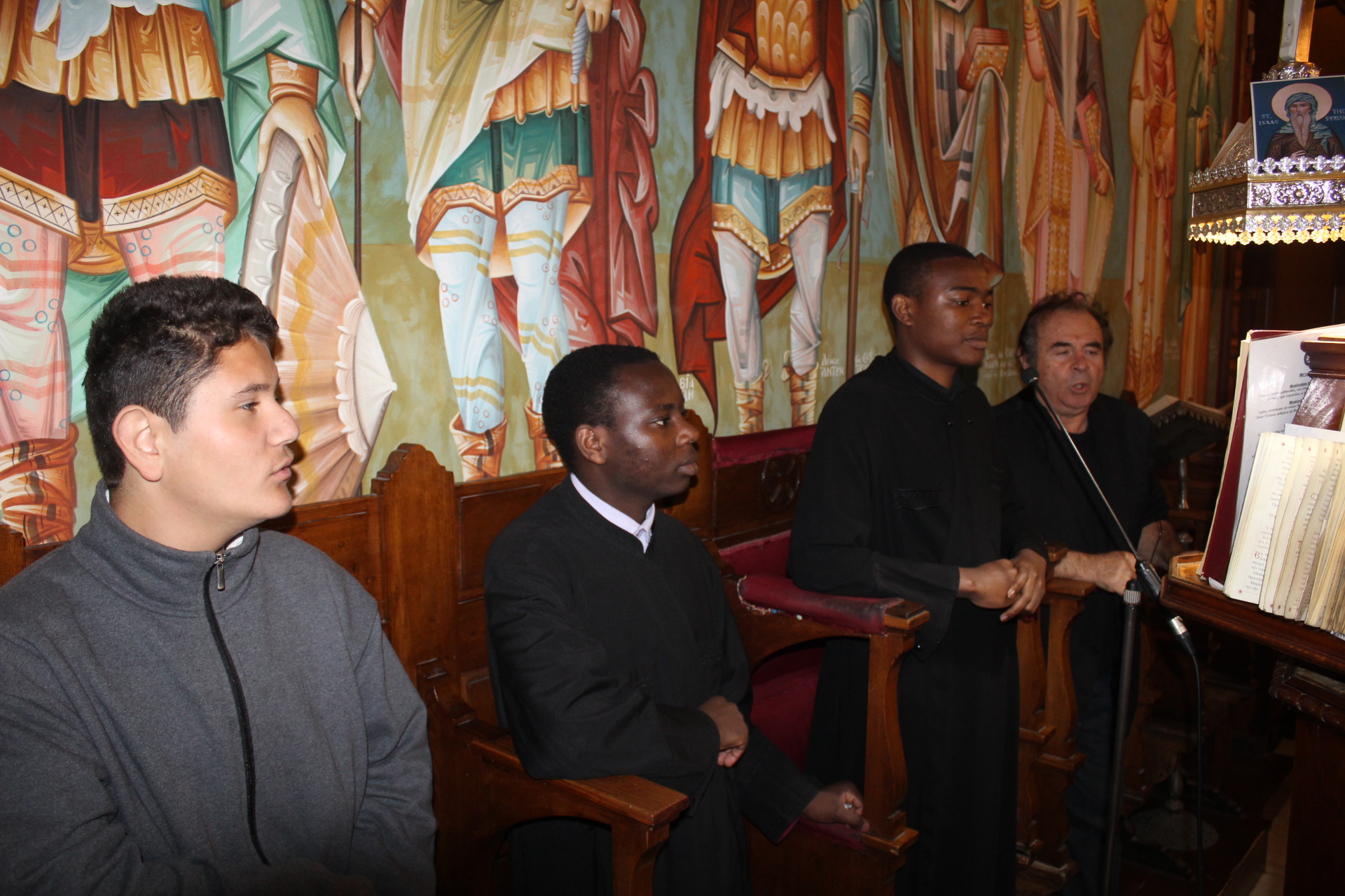 Τους βυζαντινούς ύμνους απέδωσαν ο προαναφερθείς Γενικός Πρόξενος και ο εκπαιδευτικός ιεροψάλτης κ. Αλέξανδρος Μπάσης.