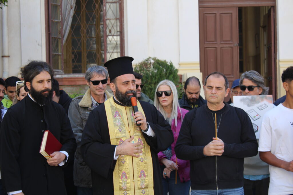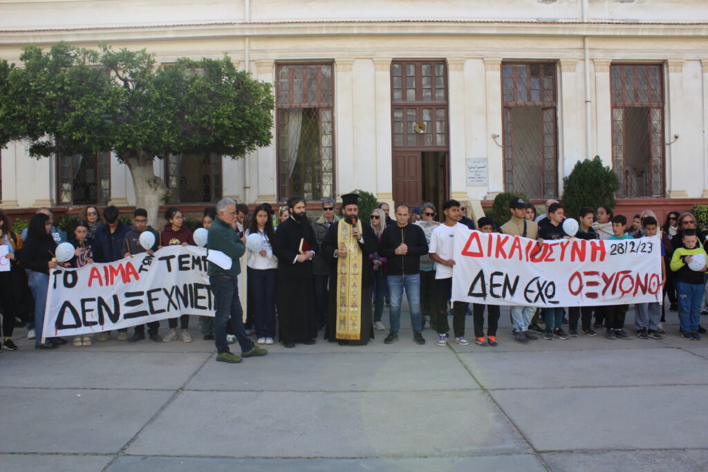 Ο Πανοσιολογιότατος κ. Δαμασκηνός πριν να αποδώσει μετά ξεχωριστής συγκινήσεως την Επιμνημόσυνη Ακολουθία, μετέφερε τις ευχές και τις προσευχές του Μακαριωτάτου και ενημέρωσε τους παρόντες περί του Τρισάγιου που τέλεσε ο Πάπας και Πατριάρχης Αλεξανδρείας και πάσης Αφρικής κ.κ. Θεόδωρος Β΄ για τα Θύματα των Τεμπών.