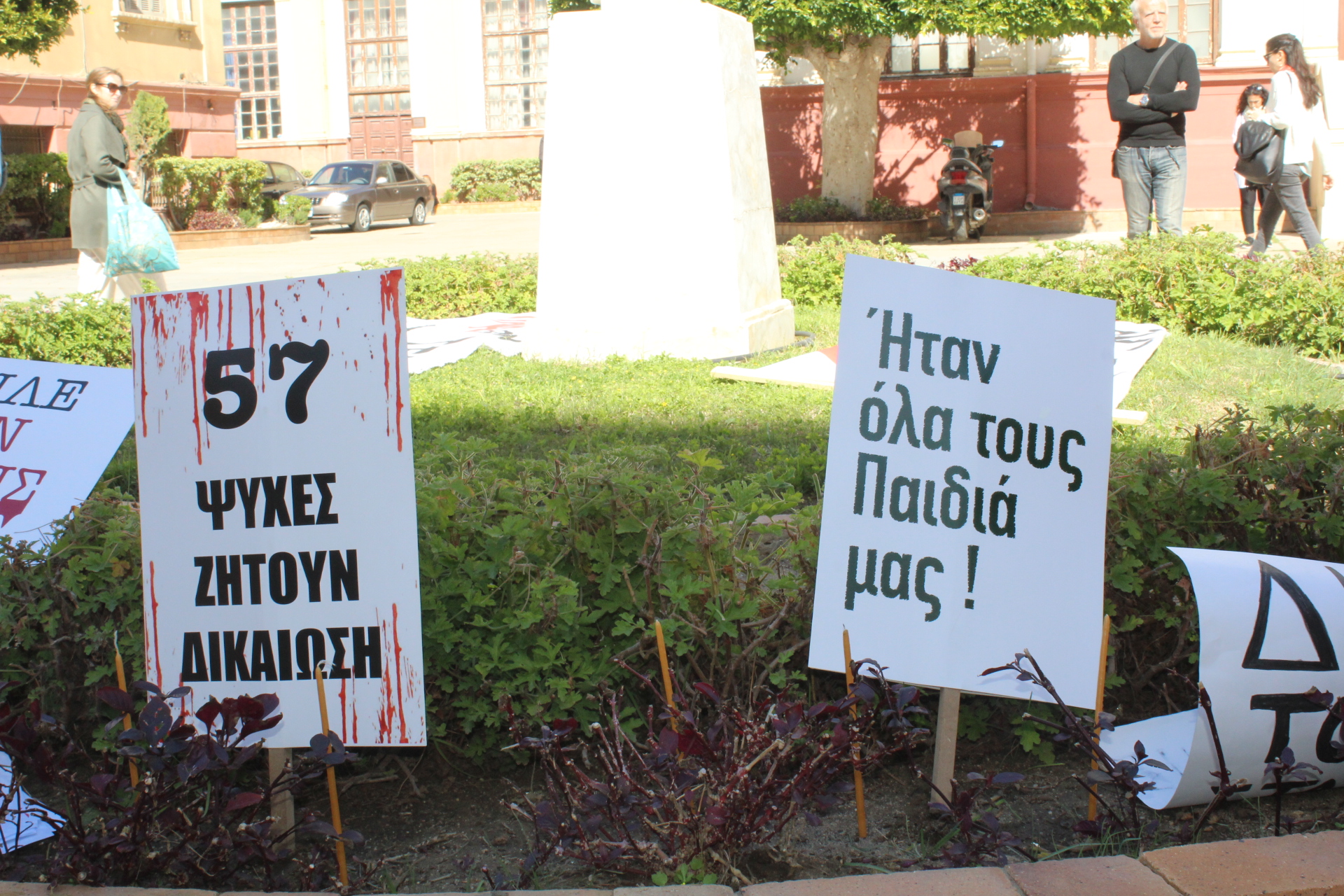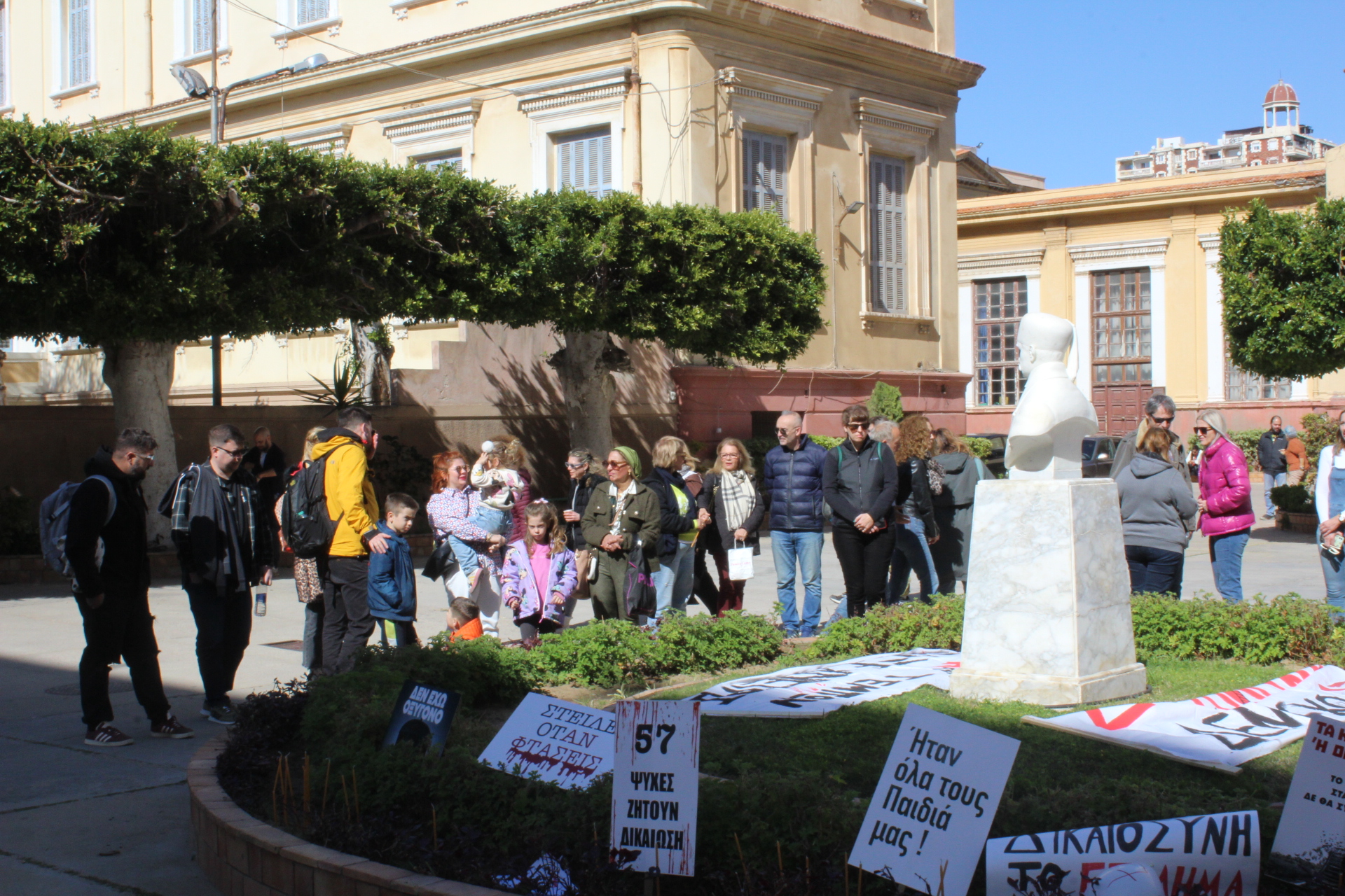 Νέα παιδιά κρατούσαν τα πανό τους και ενήλικες ύψωναν τα αναγραμμένα επί χάρτου συνθήματα, σφραγίζοντας την απαίτηση όλων για την αποκάλυψη της Αλήθειας και μόνον αυτής!