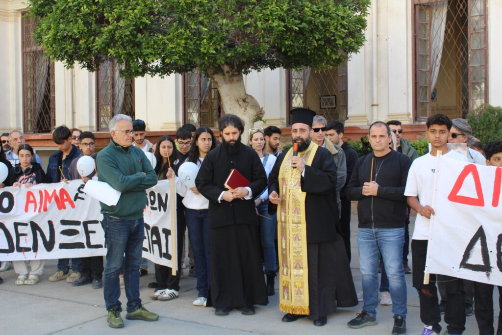 Ο Πανοσιολογιότατος τόνισε ότι «είναι εξόχως σημαντικό το γεγονός ότι είμαστε όλοι μαζί για να ενώσουμε τις προσευχές μας υπέρ αναπαύσεως όλων των θυμάτων» και ακολούθως εξέφρασε την ευχή ποτέ να μην ξαναζήσουμε τοιαύτη τραγωδία. Επιπλέον τόνισε, με το συναίσθημα να κατακλύζει τη ομιλία του, «ποτέ ξανά να θρηνήσουν γονείς επάνω στους τάφους των παιδιών τους».