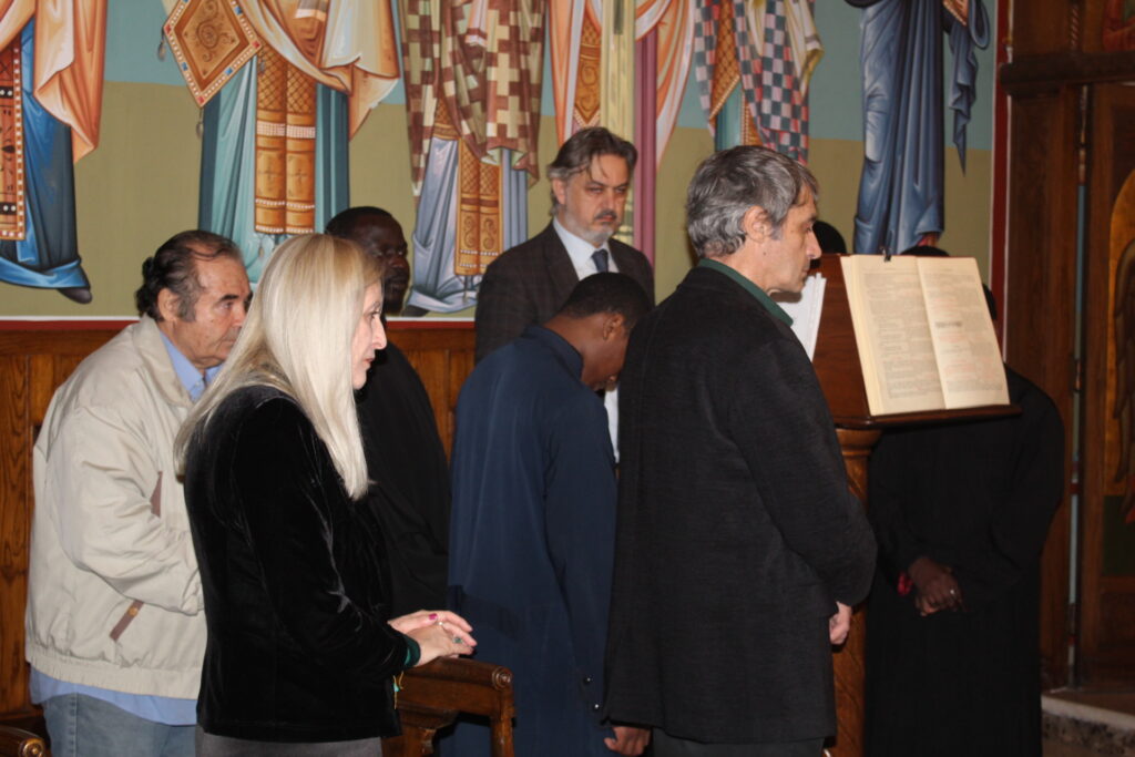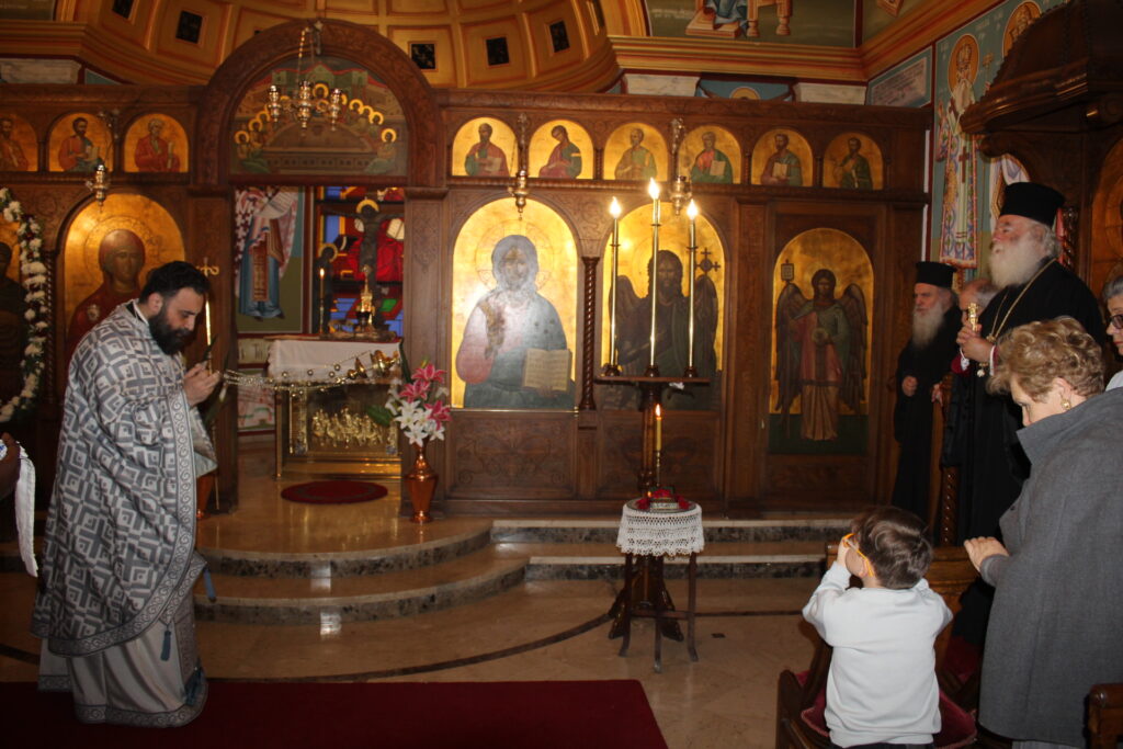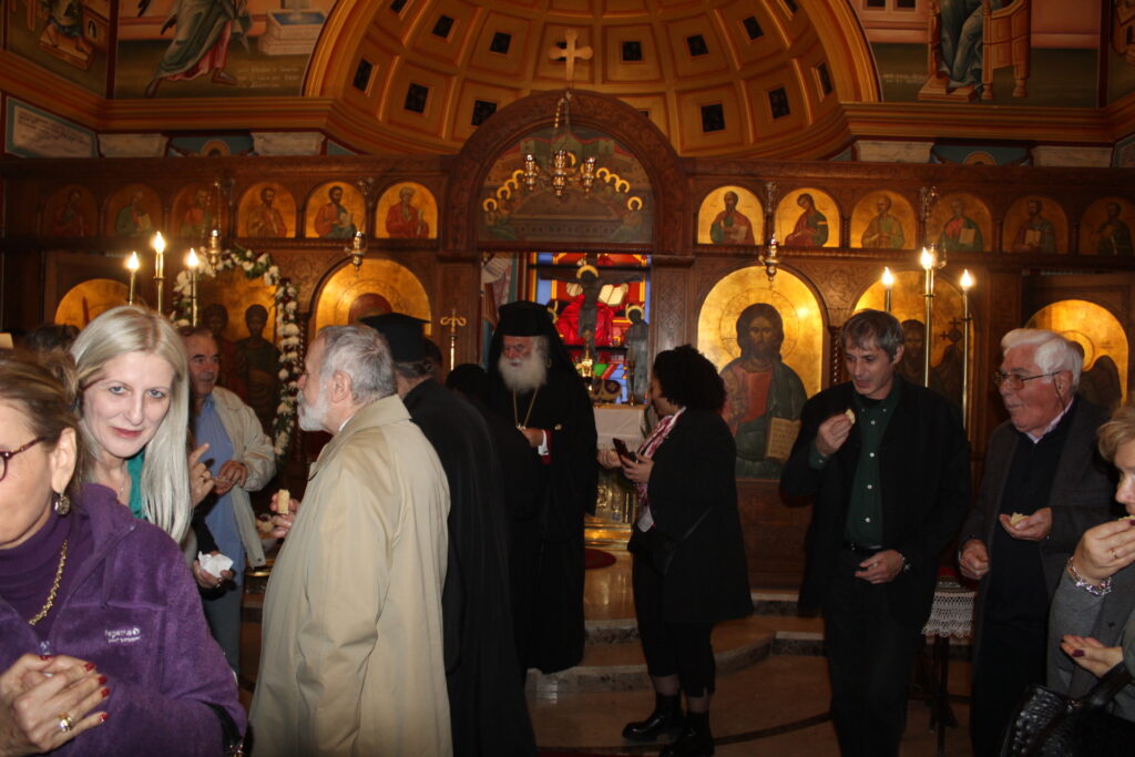 Στη συνέχεια και αφού οι πάντες πήραν τον αγιασμένο άρτο από τα χέρια του, μεταφέρθηκαν στον παραδίπλα χώρο της υποδοχής, όπου εκεί κεράστηκαν νοστιμότατες γεύσεις από παραδοσιακά ελληνικά γλυκίσματα, χυμούς, και καφέ. Στο τέλος όλοι, ως μια παρέα συζήτησαν, επικοινώνησαν και ευχήθηκαν Χρόνια Πολλά στον Μακαριώτατο και Καλή Σαρακοστή.