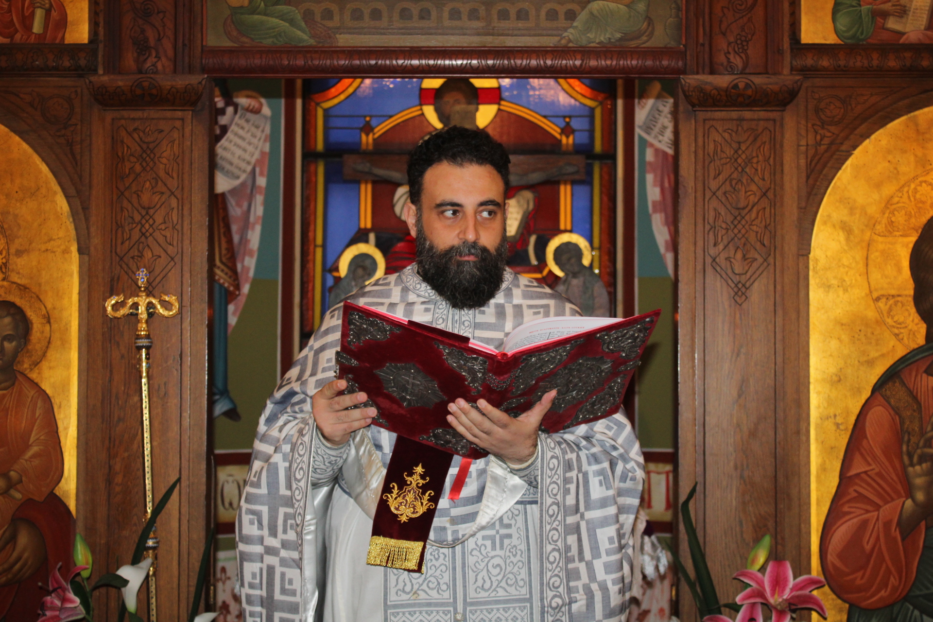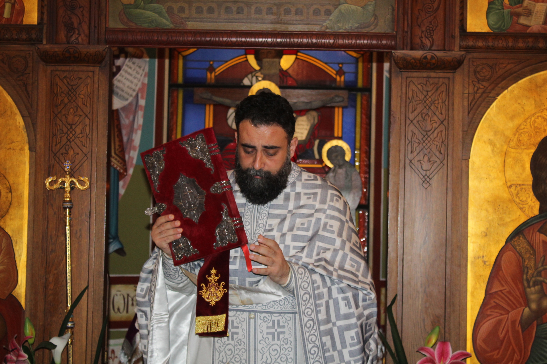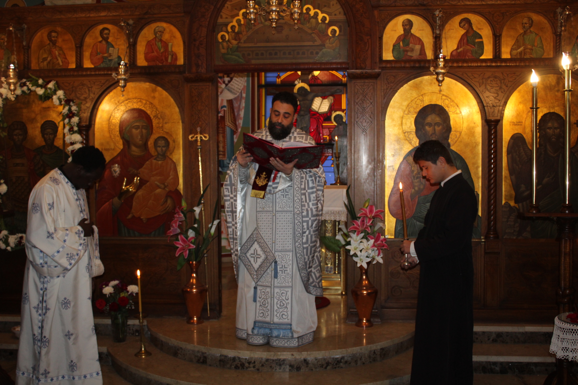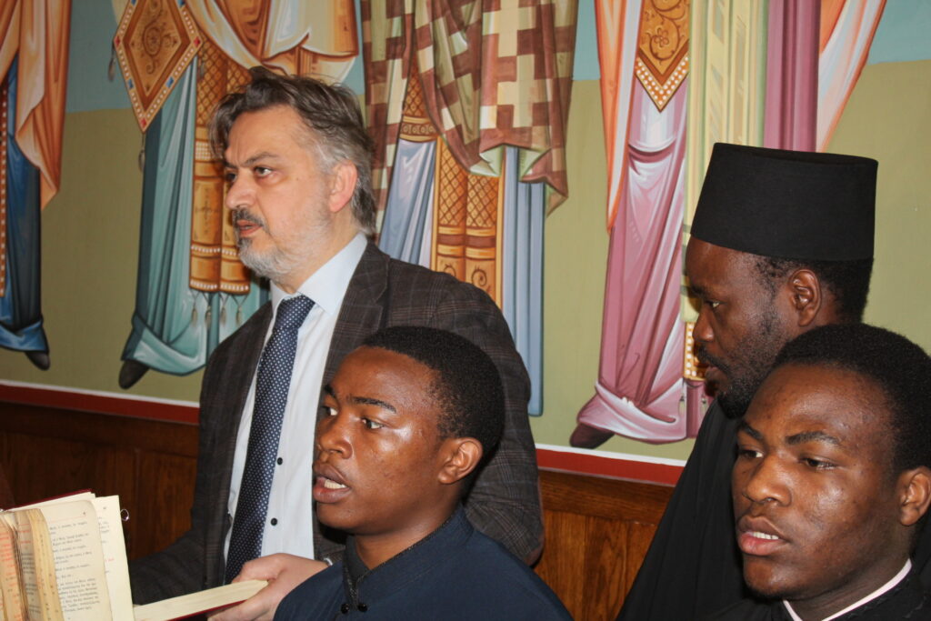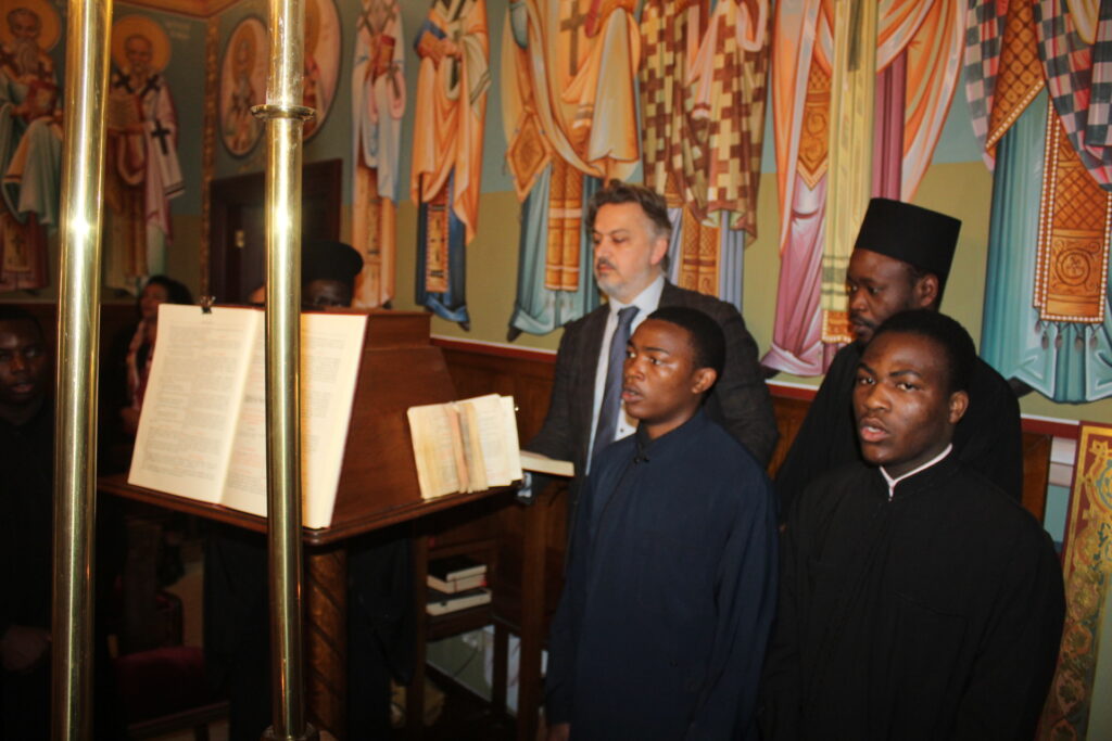 Στο ψαλτήρι προεξήρχε ο καλλικέλαδος Γενικός Πρόξενος Αλεξανδρείας κ. Ιωάννης Πυργάκης, ο οποίος απ΄ την πρώτη στιγμή που πάτησε το πόδι του στην Αλεξάνδρεια δεν έπαψε να στηρίζει τις ιερές τελετουργίες του Παλαίφατου Πατριαρχείου Αλεξανδρείας. Αρωγός στην απόδοση των βυζαντινών ύμνων, ο ιεροψάλτης κ. Ιωάννης Γεννιατάκης με την αρωγή των μαθητών της Πατριαρχικής Σχολής «Άγιος Αθανάσιος».