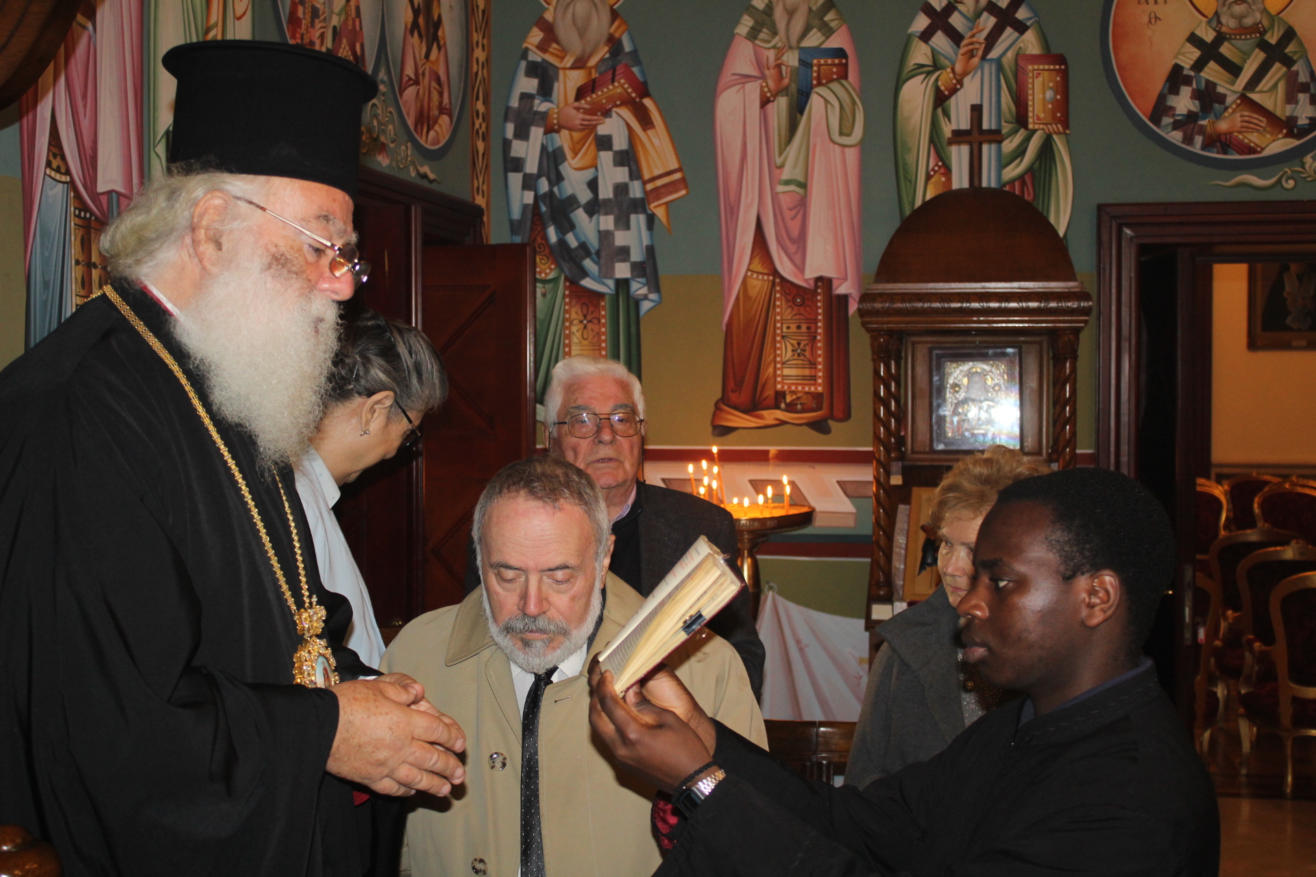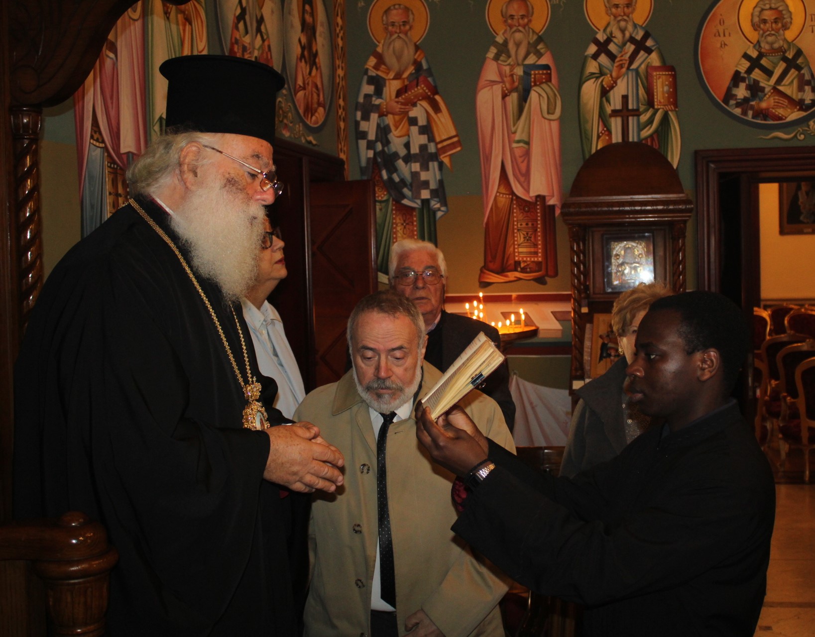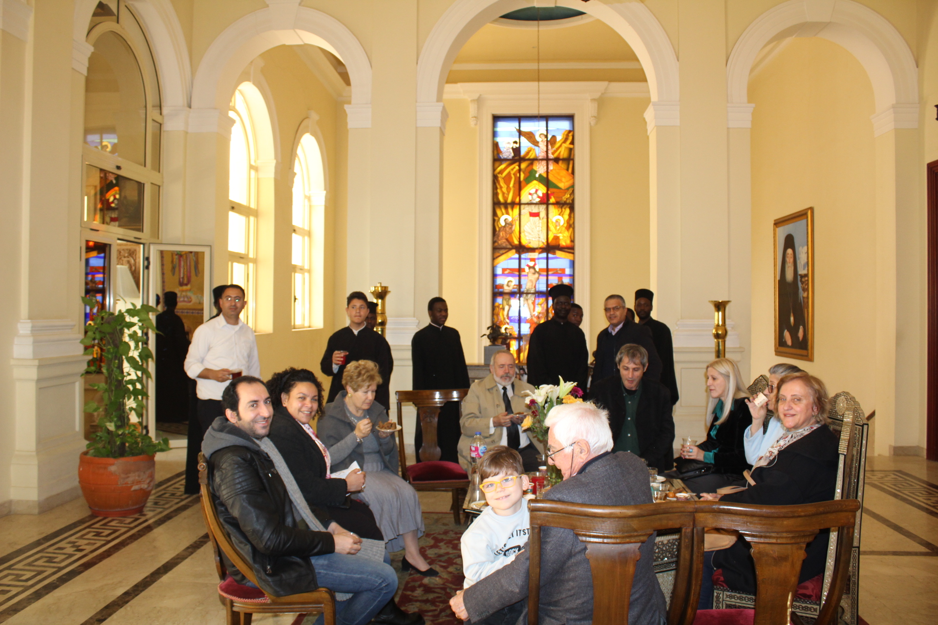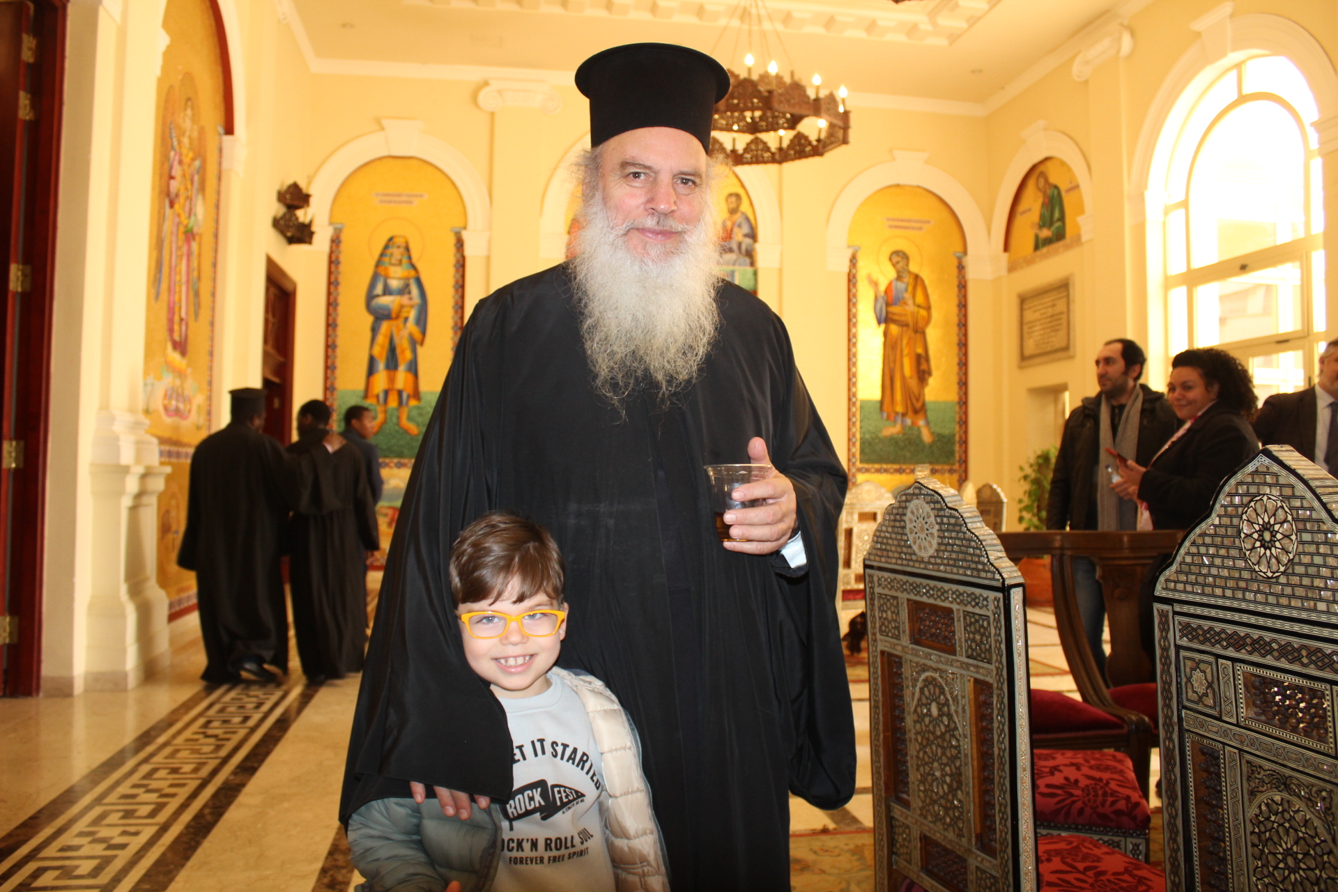 Ο Πατριάρχης Αλεξανδρείας με ζωγραφισμένο το χαμόγελο στο πρόσωπο, έδωσε τις ευχές και τις ευλογίες του σε όλους τους παριστάμενους πιστούς, αναφέρθηκε σε όλους ενθυμούμενος τα μικρά τους ονόματα, γεγονός που ικανοποίησε τους παρευρισκόμενους, συζήτησε με Κρήτες συμπατριώτες του επισκέπτες και με ιδιαίτερη χαρά φωτογραφήθηκε από τον μικρότερο της ομήγυρης, τον αγαπητό σε όλη την Παροικία Νικηφόρο, υιό του Γενικού Προξένου κ. Ιωάννη Πυργάκη τον οποίο συνόδευαν οι παππούδες του.