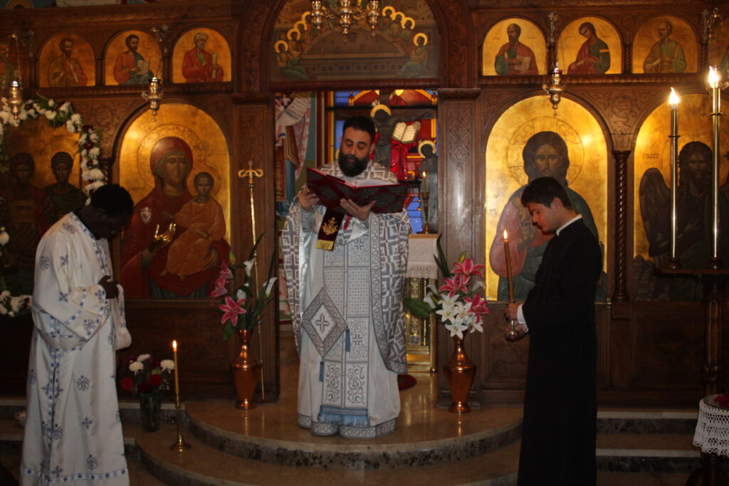 Στο παρεκκλήσιο των Αγίων Θεοδώρων εντός του Πατριαρχείου τελέστηκε ανήμερα του Αγίου Θεοδώρου του Τήρωνος Θεία Λειτουργία χοροστατούντος του Πάπα και Πατριάρχη Αλεξανδρείας και πάσης Αφρικής κ.κ. Θεοδώρου Β’, στην οποία ιερούργησε ο Πανοσιολογιότατος Αρχιμανδρίτης κ. Δαμασκηνός – Πατριαρχικός Επίτροπος, παρουσία των Σεβασμιωτάτων Μητροπολιτών: Πτολεμαΐδος κ. Παντελεήμονος – Αρχιγραμματέως της Ιεράς Συνόδου, Λεοντουπόλεως Γέροντος Γαβριήλ και Ταμιάθεως κ. Γερμανού. Παρών και ο νέος ιερέας του Πατριαρχικής Αυλής Πατέρας Ανδρέας.