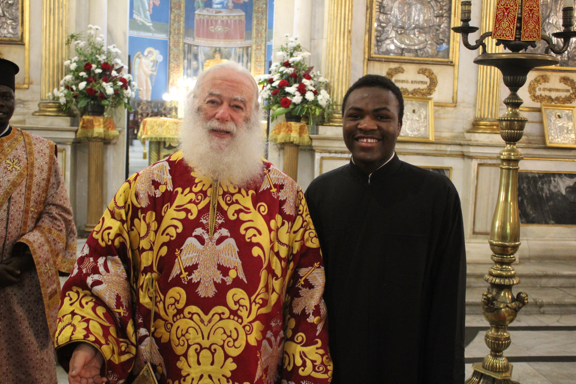 Μια ιδιαίτερα συγκινητική στιγμή εκτυλίχθηκε με την χειροτονία από τον Μακαριώτατο του νεαρού Αφρικανού ιερέως από την Τανζανία σε Αρχιμανδρίτη, όπου εκεί θα αναλάβει όπως είπε ο Πάπας και Πατριάρχης Αλεξανδρείας και πάσης Αφρικής κ.κ. Θεόδωρος Β΄, το δύσκολο έργο της ιεραποστολής στα δύσβατα μονοπάτια της πατρίδα του, για να διδάσκει το Λόγο του Χριστού!