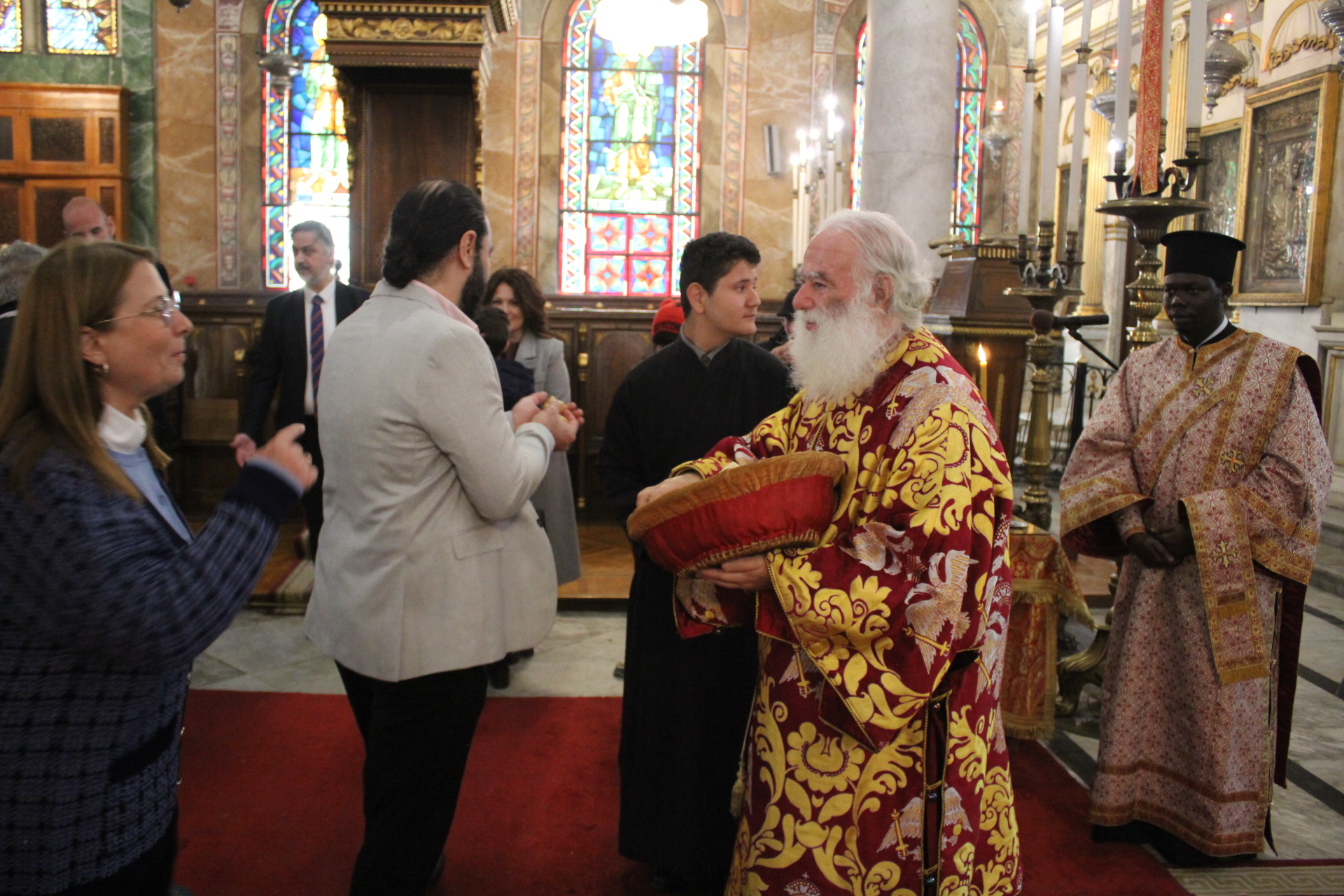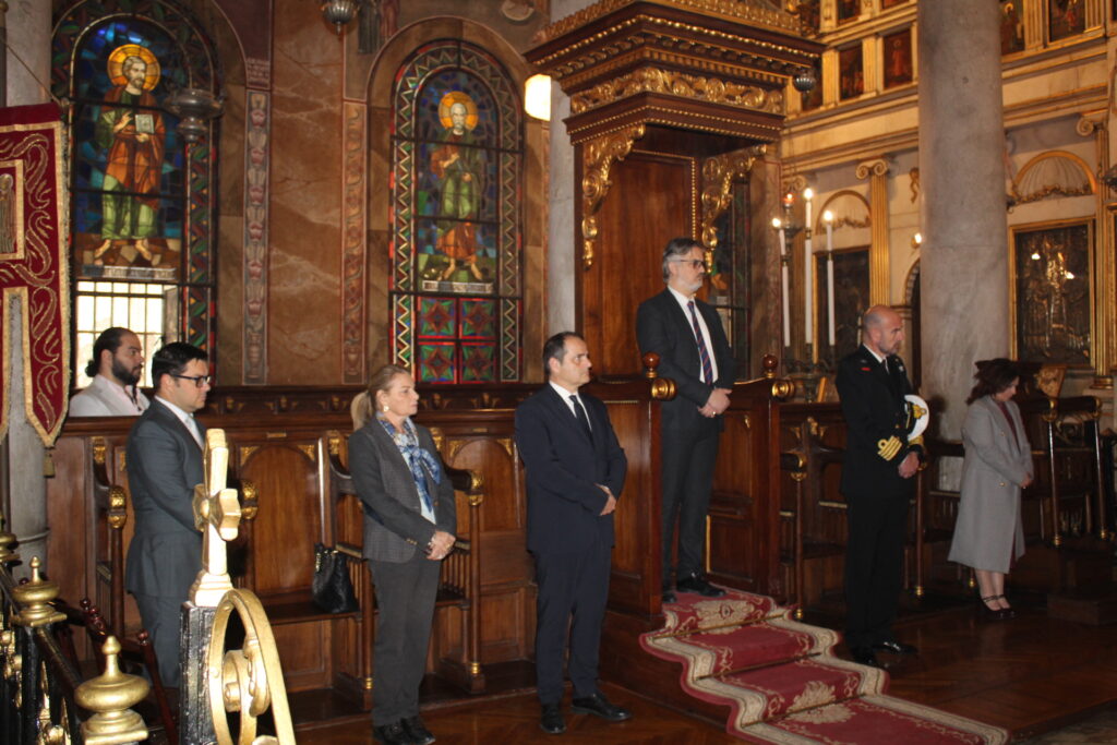 Κατά την Λειτουργική Σύναξη μετείχαν ο Γενικός Πρόξενος της Ελλάδος στην Αλεξάνδρεια κ. Ιωάννης Πυργάκης, ο Πρόεδρος της Ελληνικής Κοινότητας Αλεξανδρείας κ. Ανδρέας Βαφειάδης, ο Αναπληρωτής Γενικός Γραμματέας κ. Δημήτριος Κάβουρας, ο Σύνδεσμος του Π/Ν της Ελλάδας στην Αλεξάνδρεια, Πλοίαρχος κ. Χρυσόστομος Ράγκος, η Πρόεδρος του Ελληνικού Ναυτικού Ομίλου και του Συλλόγου Ελλήνων Επιστημόνων «Πτολεμαίος Α΄» κα Λιλίκα Θλιβίτου, η αρχαιολόγος και Διευθύντρια του Ινστιτούτου Αλεξανδρινού κι Ελληνικού Πολιτισμού κα. Καλλιόπη Παπακώστα, Εκπρόσωποι ιστορικών σωματείων και οργανισμών, οι δημοσιογράφοι του «Πρώτου Θέματος» προεξαρχούσης της κας Νανάς Δαριώτη, εκπαιδευτικοί, εργαζόμενοι στην Κοινότητα, το Γενικό Προξενείο, πολλοί Πάροικοι και εκδρομείς εξ Ελλάδος.