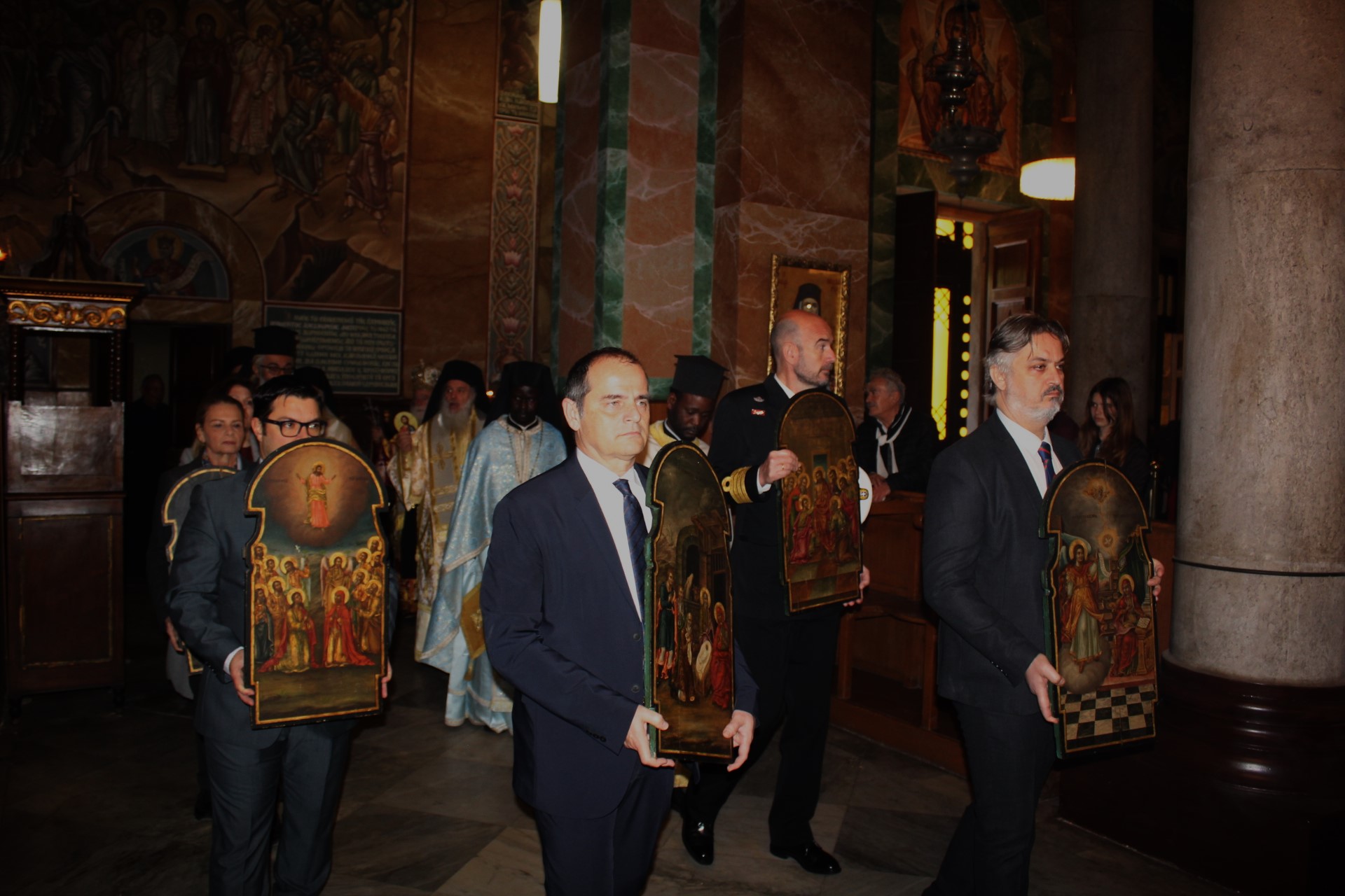 Προπορεύονταν κρατώντας ταπεινά τα σύμβολα της χριστιανοσύνης ο Γενικός Πρόξενος κ. Ιωάννης Πυργάκης, ο Πρόεδρος της ΕΚΑ κ. Ανδρέας Βαφειάδης, ο Αν. Γραμματέας κ. Δημήτριος Κάβουρας, ο Σύνδεσμος του Π/Ν κ. Χρυσόστομος Ράγκος, η Πρόεδρος του ΕΝΟΑ και Πτολεμαίου Α΄, κα Λιλίκα Θλιβίτου, και η σύζυγος του Γενικού Προξένου κα. Κατερίνα Γιδαράκου, τηρώντας την παραδοσιακή περιφορά των εικόνων, τίμησαν όπως κάθε χρόνο τη σπουδαία εορτή της Ορθοδοξίας. Άλλωστε η πρώτη Κυριακή της Μεγάλης Τεσσαρακοστής ονομάστηκε και Κυριακή της Ορθοδοξίας, σε ανάμνηση της αναστήλωσης των εικόνων από την αυτοκράτειρα Θεοδώρα το 842, που σηματοδότησε το τέλος της Εικονομαχίας (726-843), της πολιτικοθρησκευτικής διαμάχης που συντάραξε τη Βυζαντινή Αυτοκρατορία και απείλησε τη συνοχή της.
