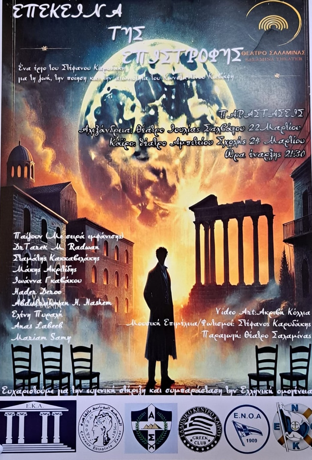 Το Θέατρο Σαλαμίνας ταξιδεύει στην Αίγυπτο, εκεί όπου η ποίηση και η ζωή του Κ.Π. Καβάφη μας ενώνουν πέρα από σύνορα και γλώσσες.