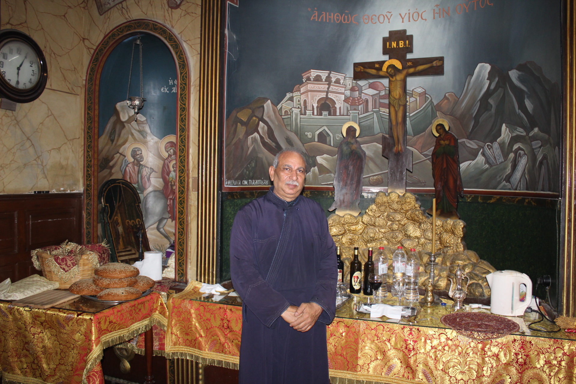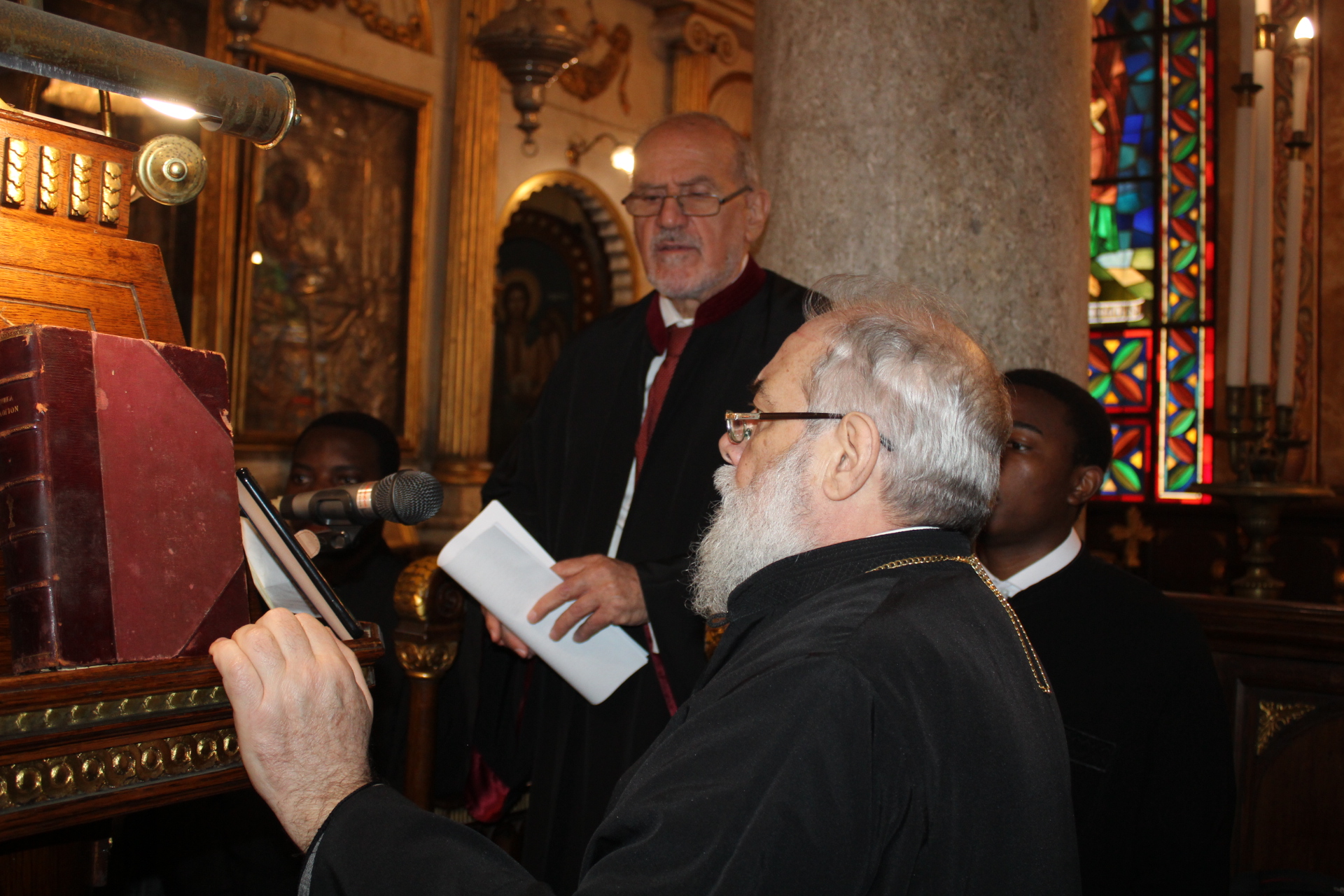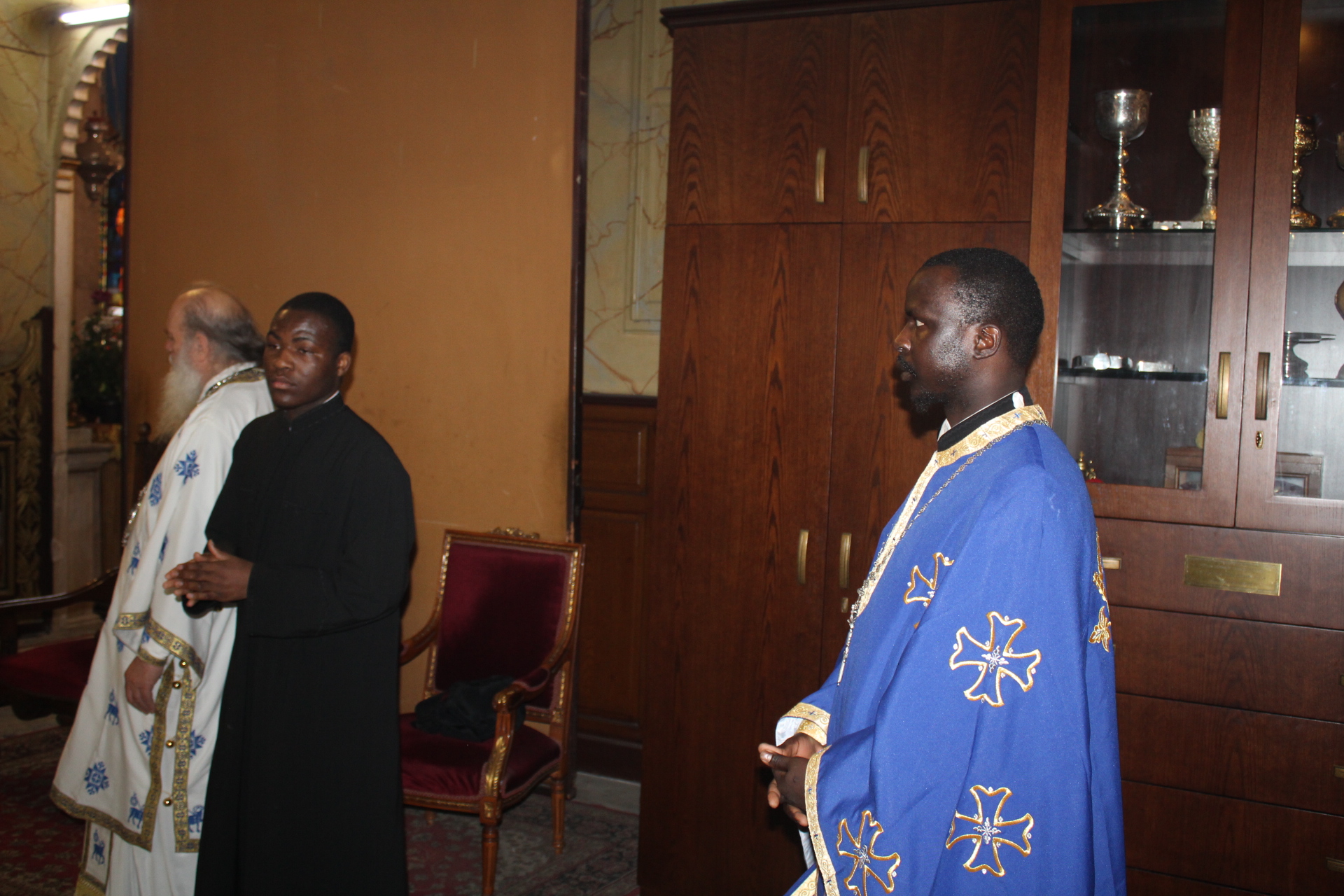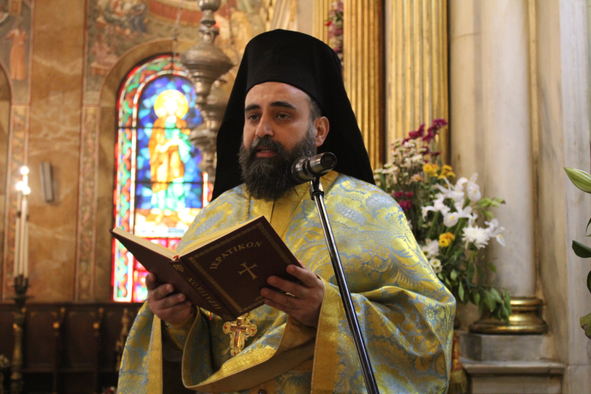 Ο Μακαριώτατος Πάπας και Πατριάρχης Αλεξανδρείας και Πάσης Αφρικής κ.κ. Θεόδωρος Β’, προεξήρχε της Θείας Λειτουργίας, με συλλειτουργούς τους Σεβασμιότατους Μητροπολίτες: Γέρων Λεοντοπόλεως κ. Γαβριήλ, Γενικό Πατριαρχικό Επίτροπο, Πτολεμαΐδος κ. Παντελεήμονα Αρχιγραμματέα της Ιεράς Συνόδου, Ταμιάθεως κ. Γερμανό Προϊστάμενο της Ιεράς Μονής του Οσίου Σάββα του Ηγιασμένου και τον Πανοσιολογιότατο Αρχιμανδρίτη κ. Δαμασκηνό Πατριαρχικό Επίτροπο, μαζί με τον Πατέρα Ανδρέα, τον αραβόφωνο ιερέα Σάμυ και μαθητές της Πατριαρχικής Σχολής Άγιος Αθανάσιος. Έψαλλαν οι ιεροψάλτες Αλέξανδρος Μπάσης και Ιωάννης Γενειατάκης.