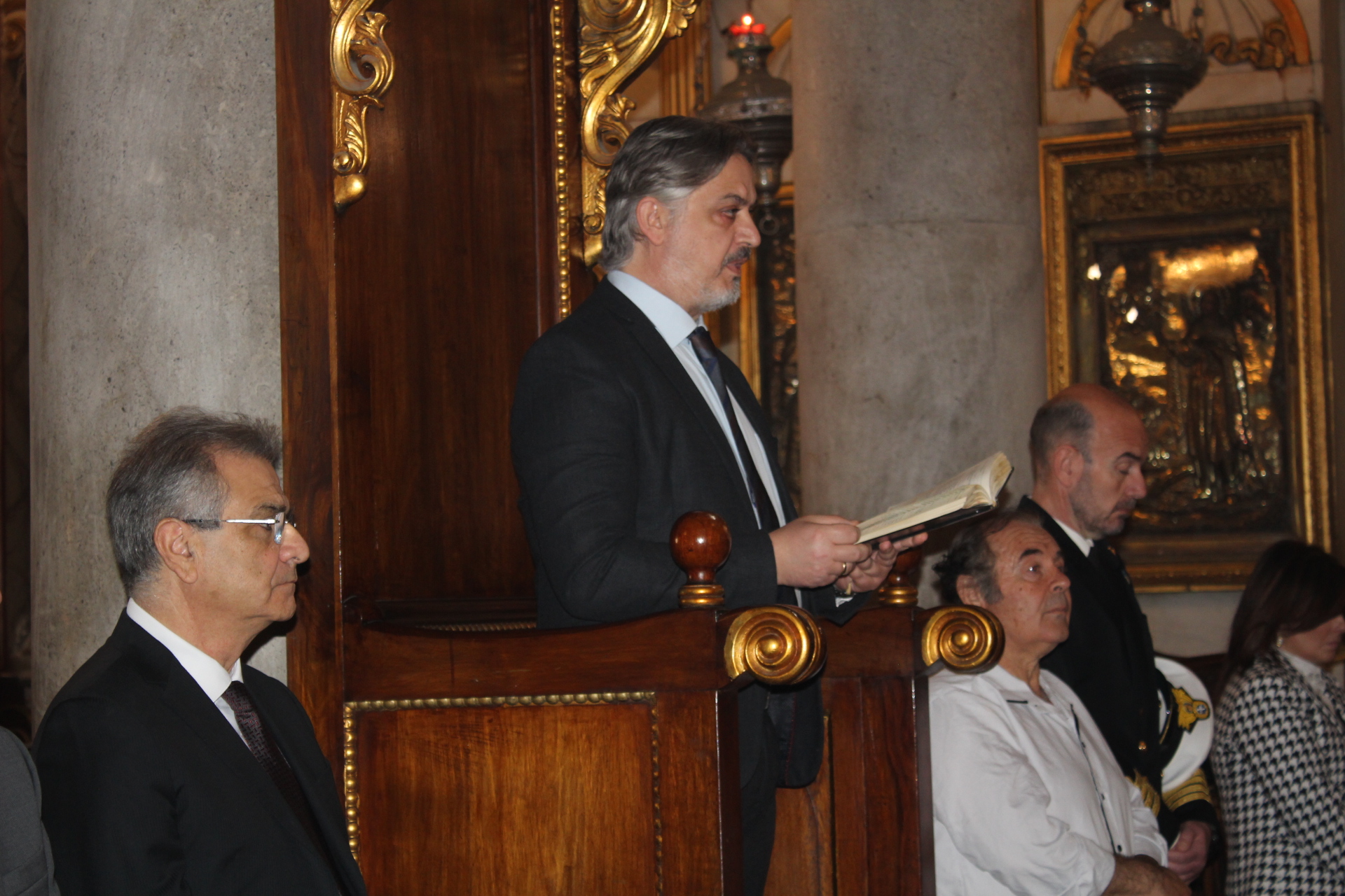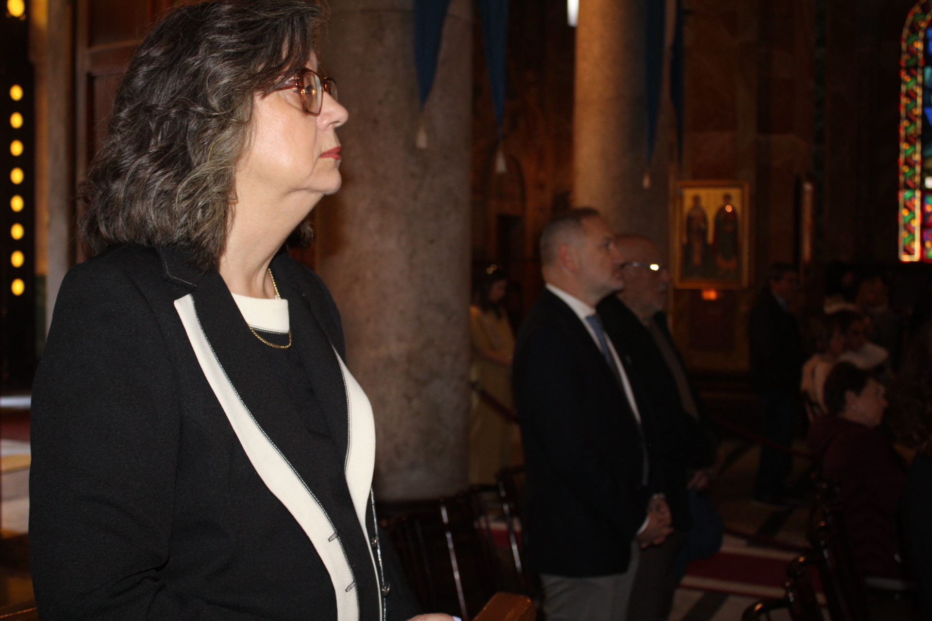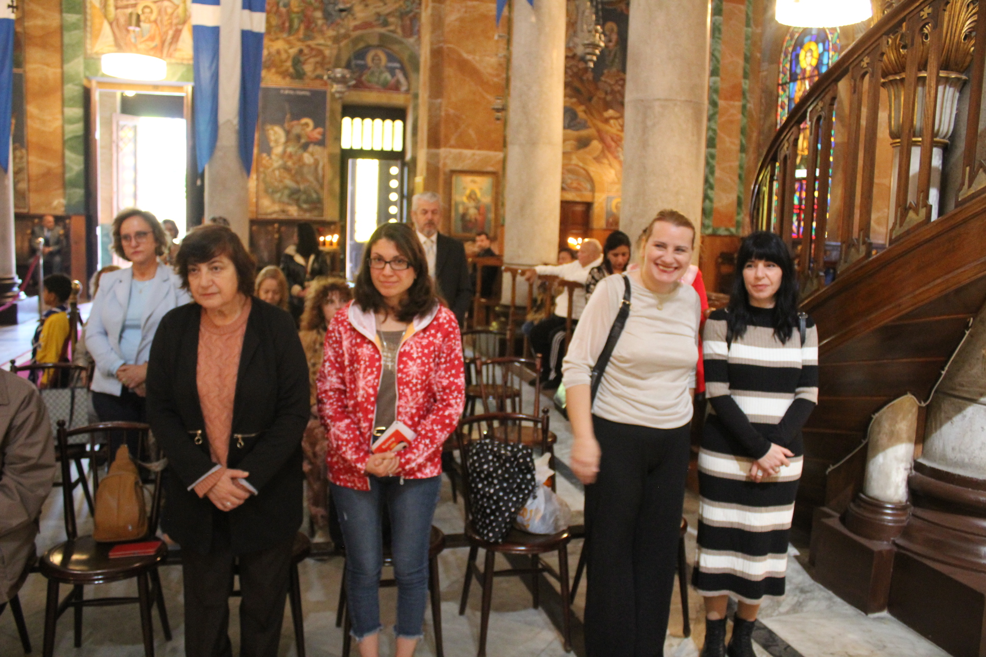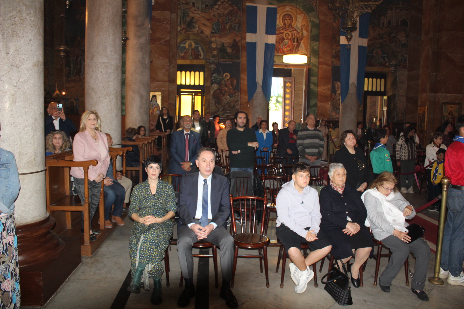 Στην Επέτειο της 25ης Μαρτίου, παρέστησαν στον Καθεδρικό Ναό του Ευαγγελισμού από πλευράς θεσμικών εκπροσώπων οι εξής: ο Γενικός Πρόξενος της Ελλάδας στην Αλεξάνδρεια κ. Ιωάννης Πυργάκης μετά της συζύγου του κας Κατερίνας Γιδαράκου, ο Αντιπρόεδρος Α΄ της Ελληνικής Κοινότητας Αλεξανδρείας κ. Ιωάννης Παπαδόπουλος, ο Σύνδεσμος του Ελληνικού με το Αιγυπτιακό Πολεμικό Ναυτικό, Πλοίαρχος κ. Χρυσόστομος Ράγκος, ο Οικονομικός Επόπτης της ΕΚΑ κ. Εμμανουήλ Τατάκης, ο Κοινοτικός Επίτροπος κ. Ιωάννης Σιόκας, η κα Λιλίκα Θλιβίτου, Πρόεδρος του Ελληνικού Ναυτικού Ομίλου Αλεξανδρείας και του Συλλόγου Ελλήνων Επιστημόνων «Πτολεμαίος Α’», η Γενική Γραμματέας της Κυπριακής Αδελφότητας Αλεξανδρείας κα Μαρία Παυλίδου, η Διευθύντρια του Ελληνικού Ιδρύματος Πολιτισμού Αλεξανδρείας κα Σταυρούλα Σπανούδη, η Διευθύντρια του Αβερωφείου Γυμνασίου Λυκείου κα Αφροδίτη Πεβερέτου, η Διευθύντρια του Τοσιτσαίου Πρατσίκειου Δημοτικού κα Αδαμαντία Νικολακοπούλου, οι κες του Λυκείου Ελληνίδων Παράρτημα Αλεξανδρείας, Ευαγγελία Παπαζώτου και Κατερίνα Παπαδοπούλου, ο Γενικός Έφορος Διοίκησης των Προσκόπων κ. Άρης Μαρκοζάνης και πολλοί πάροικοι, εκπαιδευτικοί, στελέχη του Γενικού Προξενείου και επισκέπτες εξ Ελλάδος και αλλού.