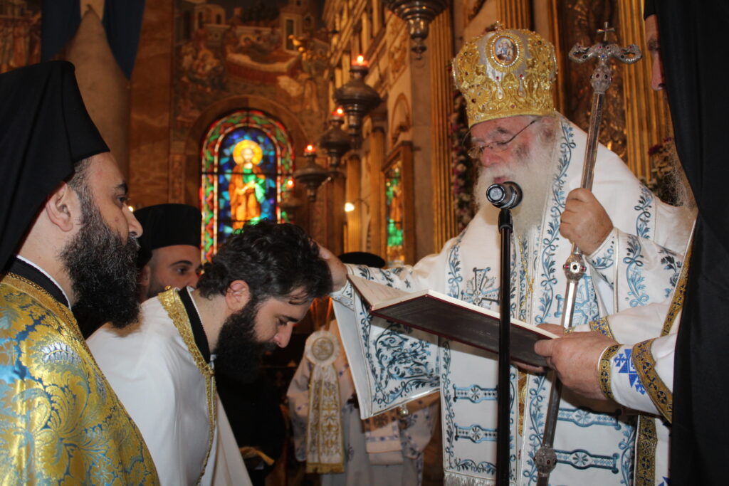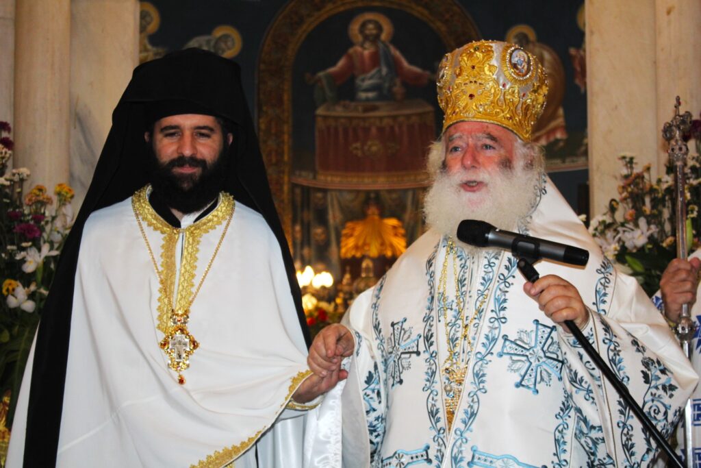 Συγκινητική ήταν στιγμή, όταν ο Μακαριώτατος, χειροτόνησε Αρχιμανδρίτη του Πατριαρχείου τον Πατέρα Επιφάνιο, έναν αγαπητό σε όλους μας κληρικό, που κατόρθωσε στον λίγο καιρό της παρουσίας του στην Αλεξάνδρεια, να εμπνεύσει τον σεβασμό όλης της Παροικίας.