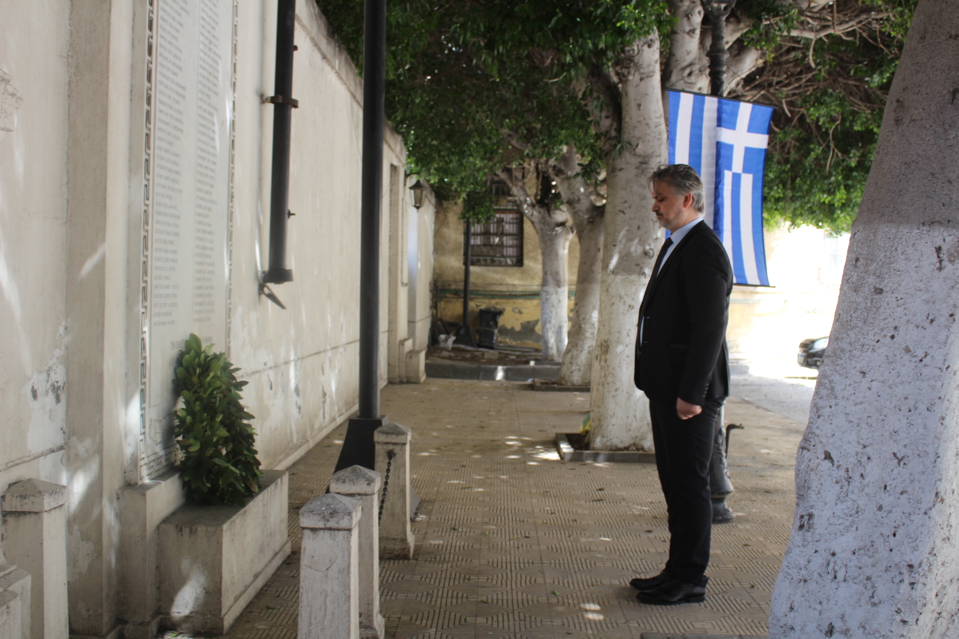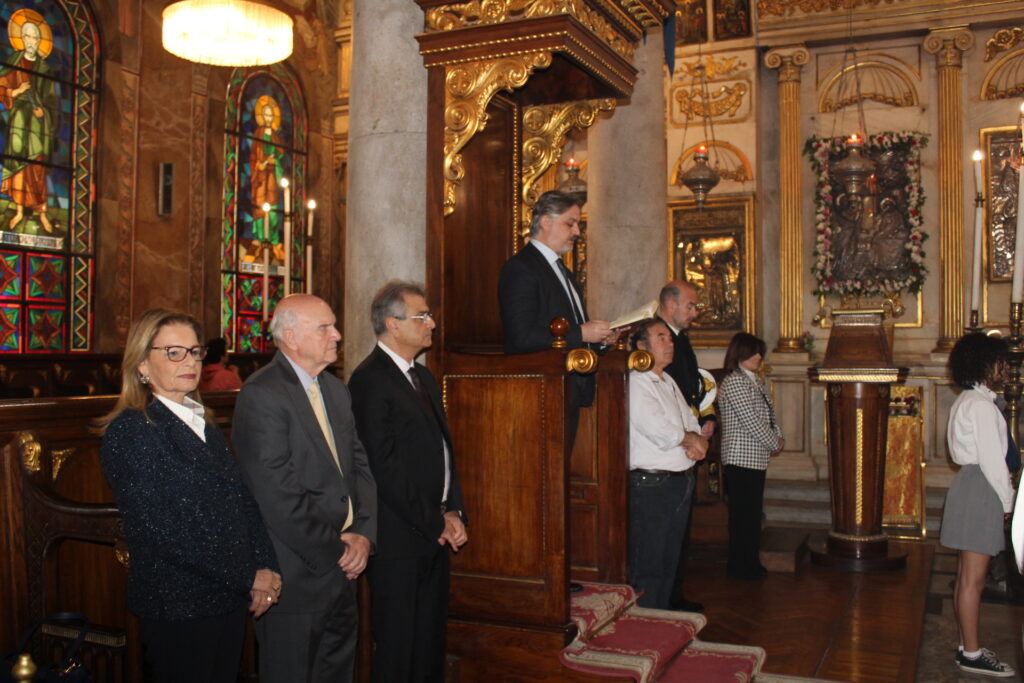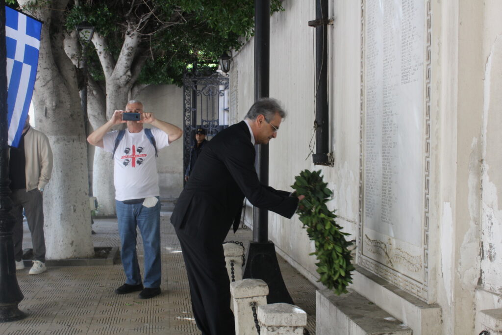 Ο Γενικός Πρόξενος κ. Ιωάννης Πυργάκης διάβασε το μήνυμα του Προέδρου της Ελληνικής Δημοκρατίας κ. Κωνσταντίνου Τασούλα και με την ολοκλήρωση της Θείας Λειτουργίας οι εκκλησιαζόμενοι πάροικοι εξήλθαν του Ναού, για την κατάθεση στεφάνων στα μνημεία του Ελληνισμού.