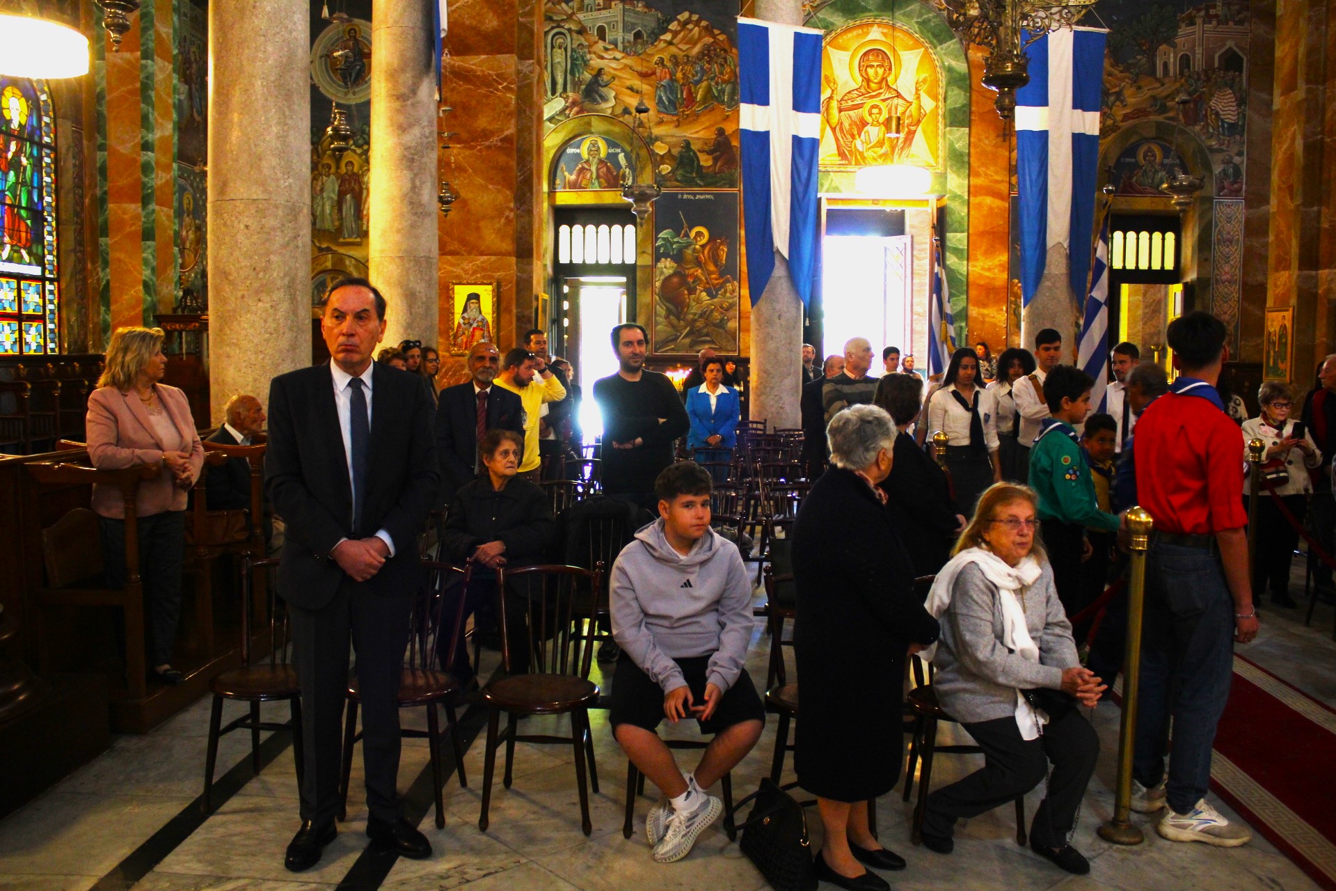 Ξεχωριστή ήταν η παρουσία μαθητών και προσκόπων, που καθ΄ όλη την Θεία Λειτουργία σε στάση προσοχής με τις σημαίες τους, τίμησαν την Ορθοδοξία και την Εθνική Επέτειο, όπως πράττουν αγόγγυστα κάθε χρόνο.