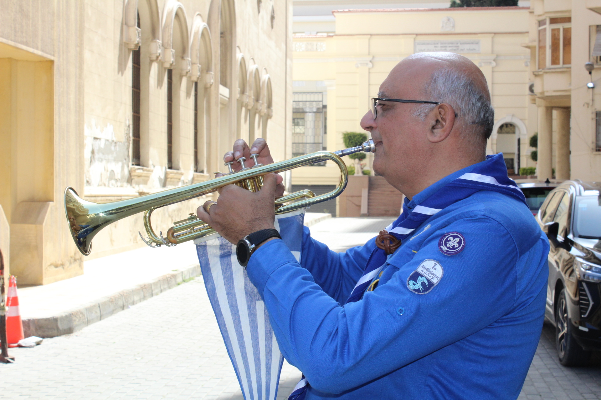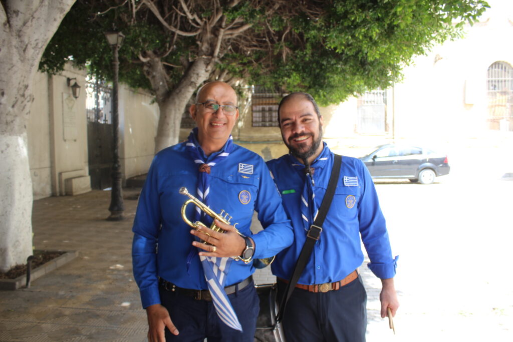 Ο Διευθυντής της ΕΚΑ κ. Γεώργιος Μπούλος και ο μουσικός Ριάντ, για άλλη μια χρονιά τίμησαν την ιστορική ημέρα της Εθνικής Επετείου, με τα μουσικά τους όργανα, ενώ εμφανής ήταν η απουσία του αείμνηστου μουσικού της μπάντας Τζόνι Μύρου!