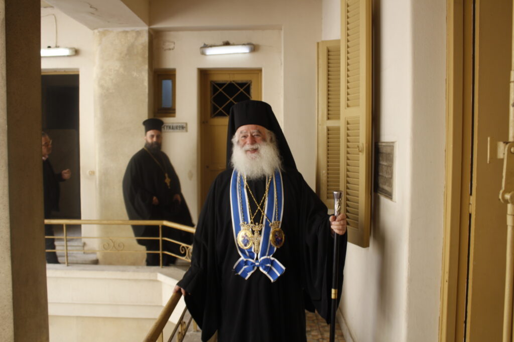 Και βέβαια δεν έλειψε ο καφές, οι χυμοί και τα κεράσματα στο Αρχονταρίκι του Ευαγγελισμού, με τον Μακαριώτατο να ευλογεί δια ζώσης τους πιστούς που ήθελαν να τον ασπαστούν και να πάρουν την ευχή του.