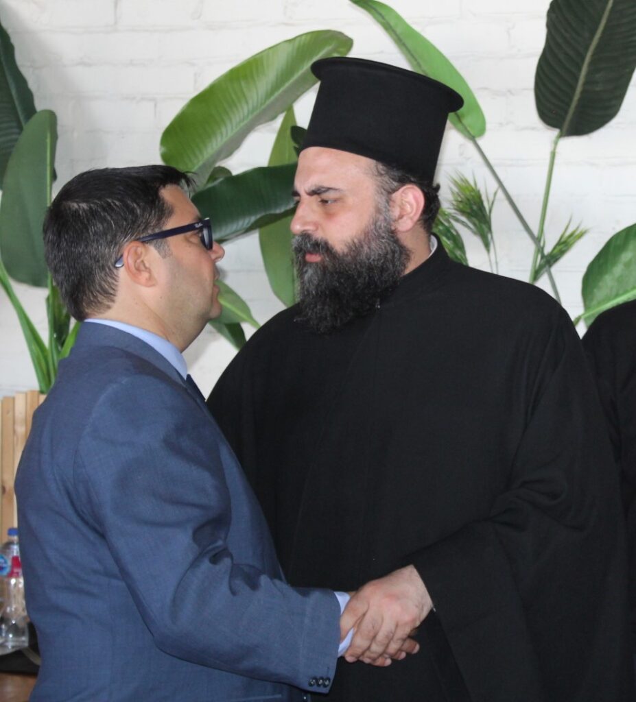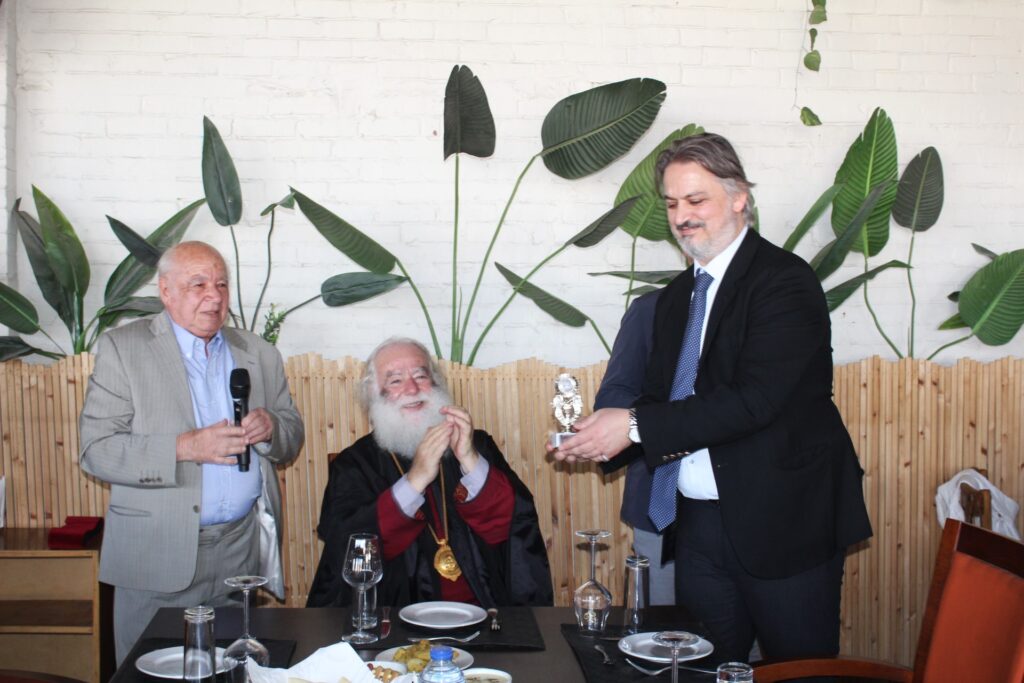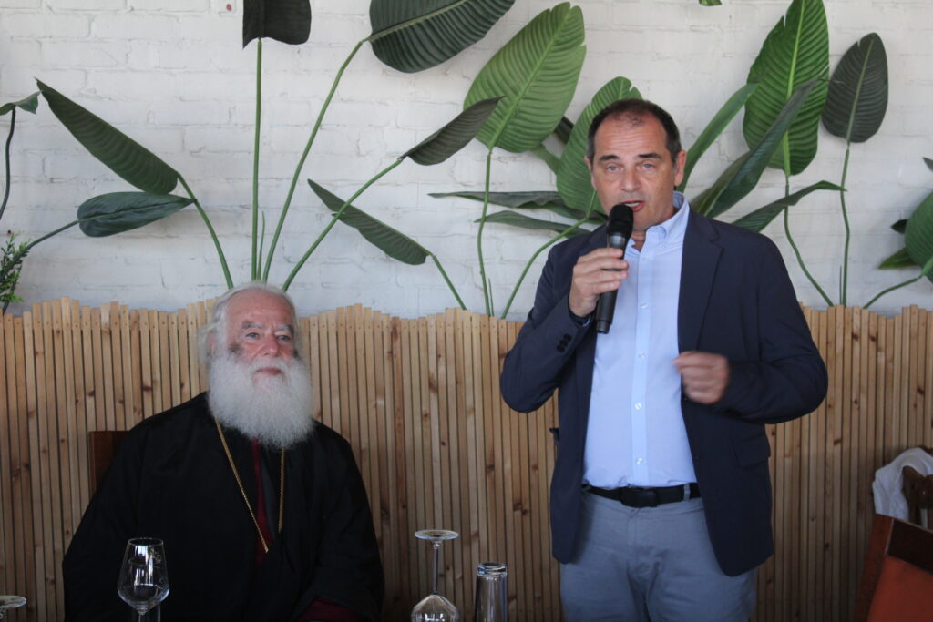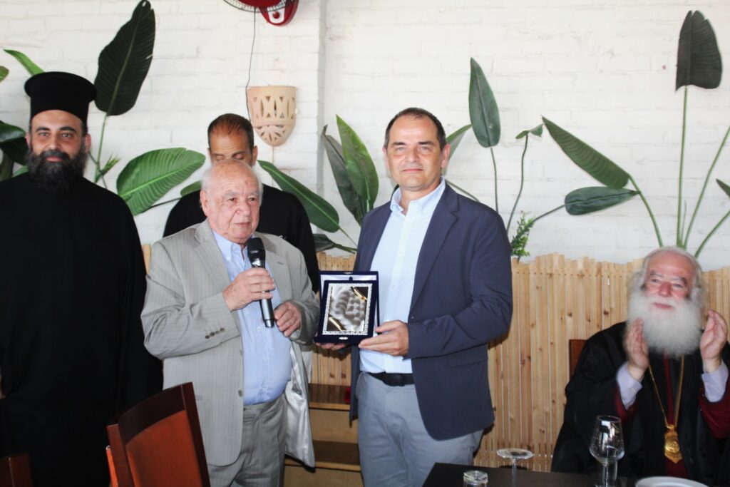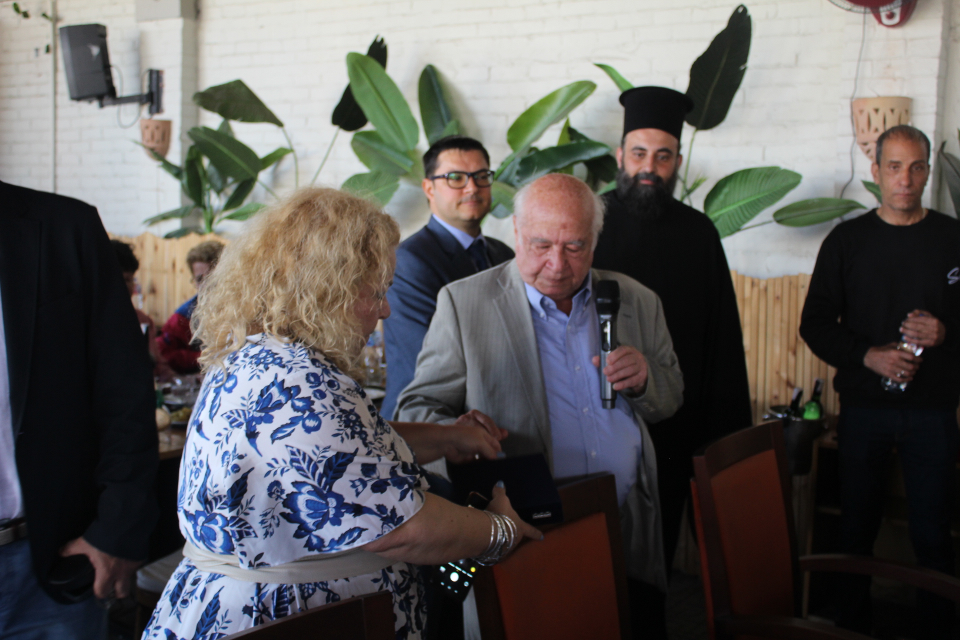 Να σημειωθεί ακόμα ότι μετά τις ευλογίες και τις ευχές του Μακαριωτάτου, ο Πρόεδρος και οικοδεσπότης κ. Ανδρέας Βαφειάδης, χαιρέτησε τους προσκεκλημένους, ακολούθησε ο Γενικός Πρόξενος κ. Ιωάννης Πυργάκης και στη συνέχεια ο λόγος εδόθη στον Πρόεδρο του ιστορικού ΣΑΕ κ. Κώστα Μιχαηλίδη, ο οποίος με συγκίνηση χαιρέτησε τους παριστάμενους και προσέφερε αναμνηστικό δώρο στον κ. Ανδρέα Βαφειάδη και τον Γενικό Πρόξενο κ. Ιωάννη Πυργάκη.