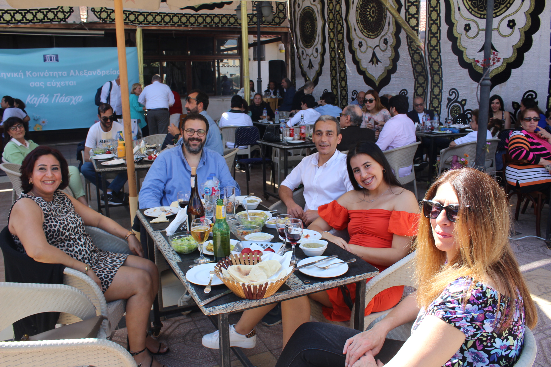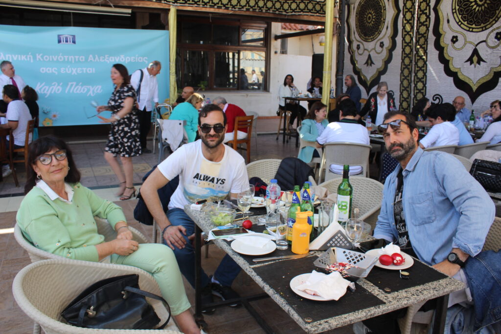 Την Κυριακή το μεσημέρι στο Κοινοτικό Εντευκτήριο, την γνωστή σε όλους μας Ένωση, ο χώρος κατεκλύσθη από Αιγυπτιώτες και Ελλαδίτες, όπου όλοι μαζί τίμησαν την εορτή του Πάσχα με ωραία εδέσματα, σε συνταγές Αντιγόνης, ενώ με χορούς και μουσικές επήλθε η επιδιωκόμενη ευωχία, απ΄ την πολυπληθή ομήγυρη!