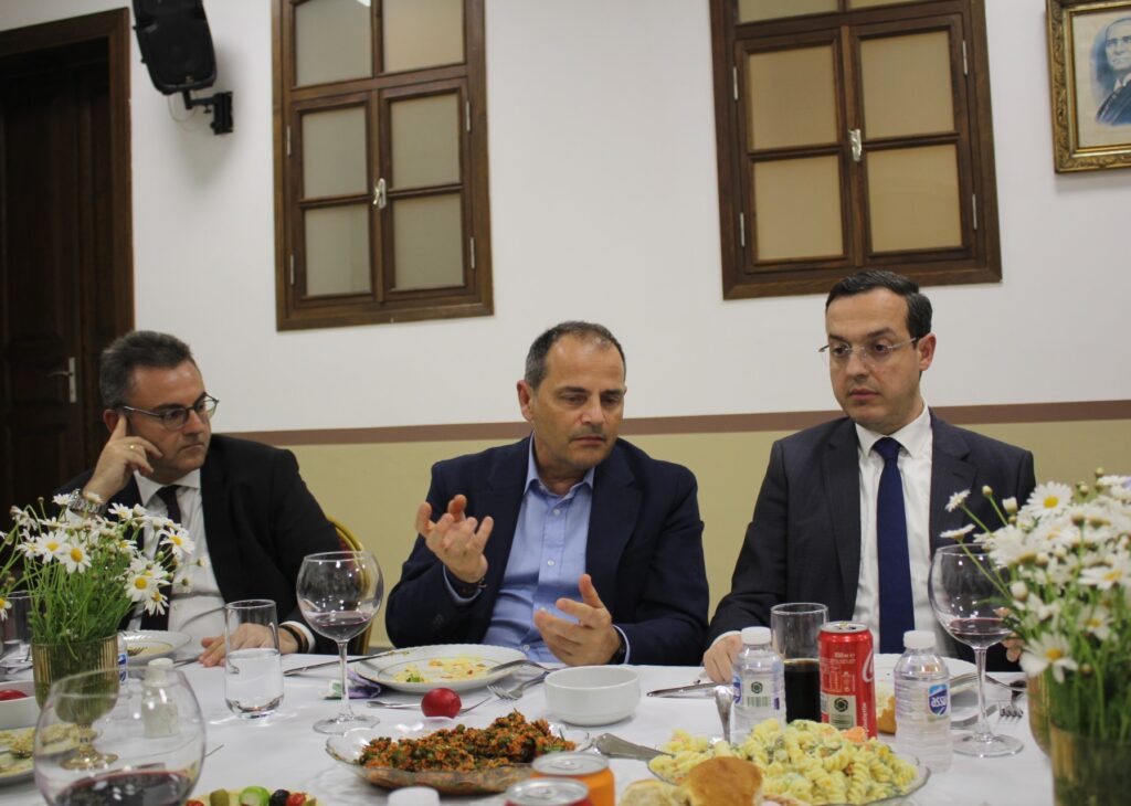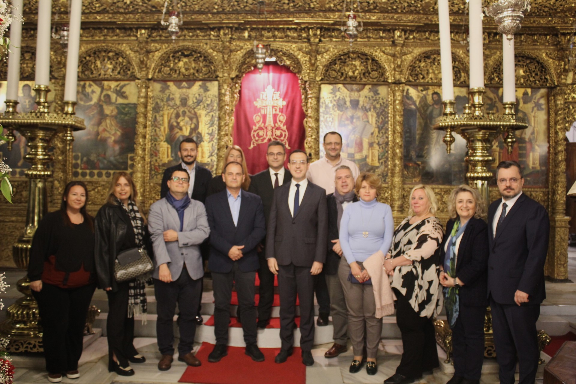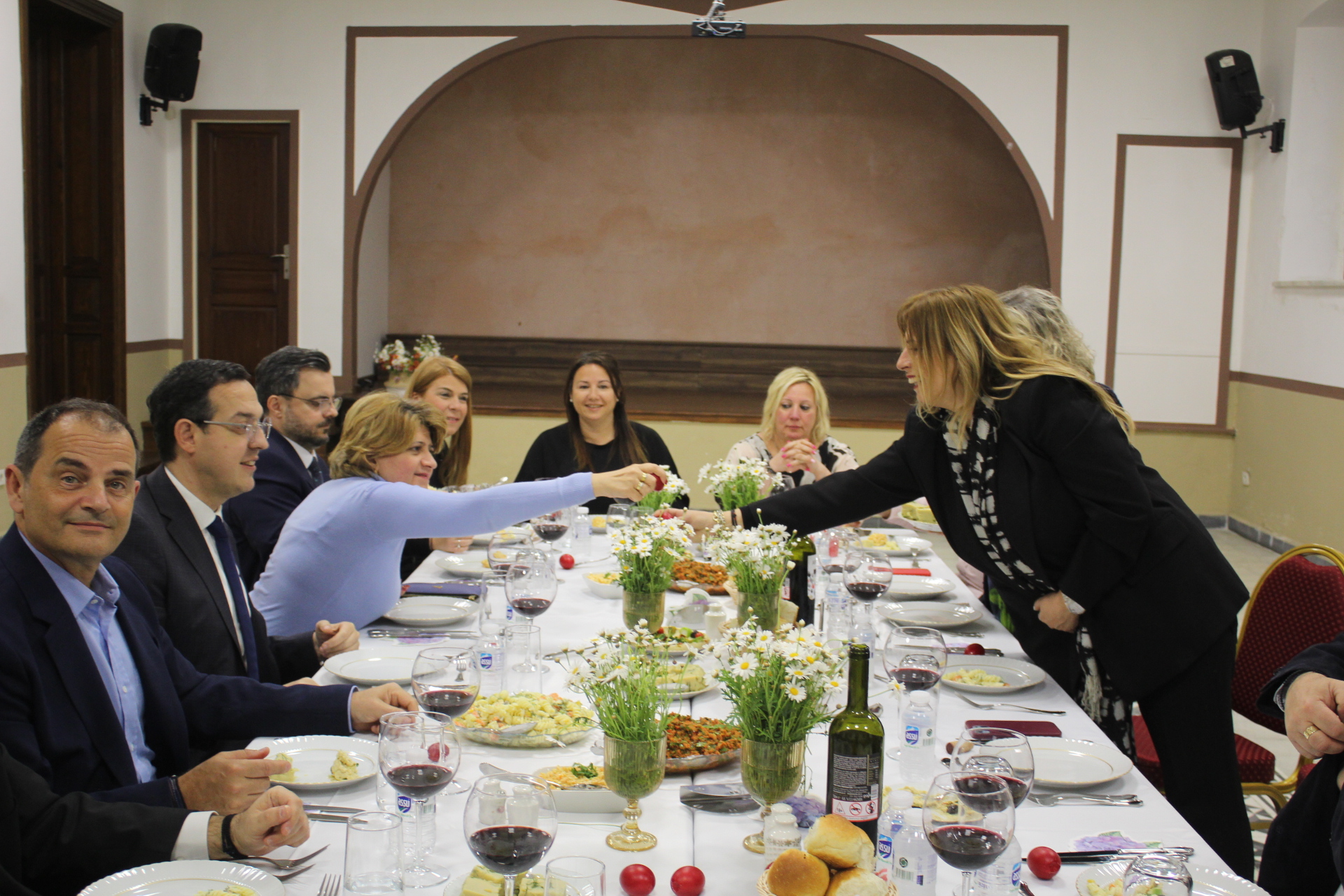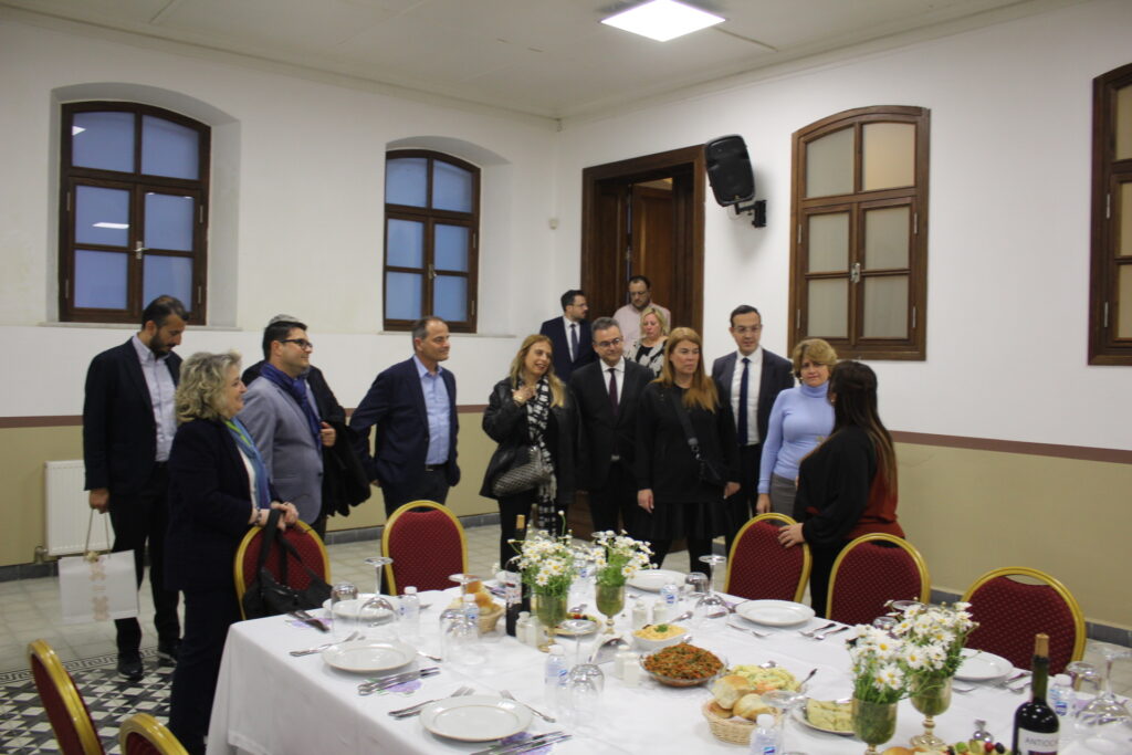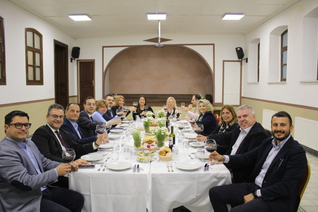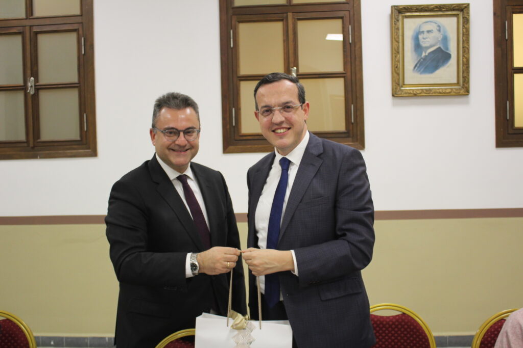Μετά το προσκύνημα και την ξενάγηση στον Ιερό Ναό του Αγίου Δημητρίου – το κόσμημα της ορθόδοξης χριστιανοσύνης των Ρωμιών της Πόλης – από τον Πρόεδρο κ. Γεώργιο Θεοδωρίδη και τα μέλη του Διοικητικού Συμβουλίου της Κοινότητας Ταταούλων, κατευθυνθήκαμε άπαντες στο παραδίπλα συγκρότημα της Αστικής Σχολής. Ενός περιλάλητου κοινοτικού σχολείου με ξεχωριστό ιστορικό μέγεθος, όπου σε μία εκ των αιθουσών του, προσκεκλημένοι και οικοδεσπότες, ταυτιστήκαμε ως μια αδελφοποιημένη παρέα, συνδεδεμένη με την ίδια γλώσσα, τις παραδόσεις, τα ήθη και τα έθιμα των Ρωμιών της Πόλης απ΄ τη μια πλευρά και των Αιγυπτιωτών Αλεξανδρινών από την άλλη.