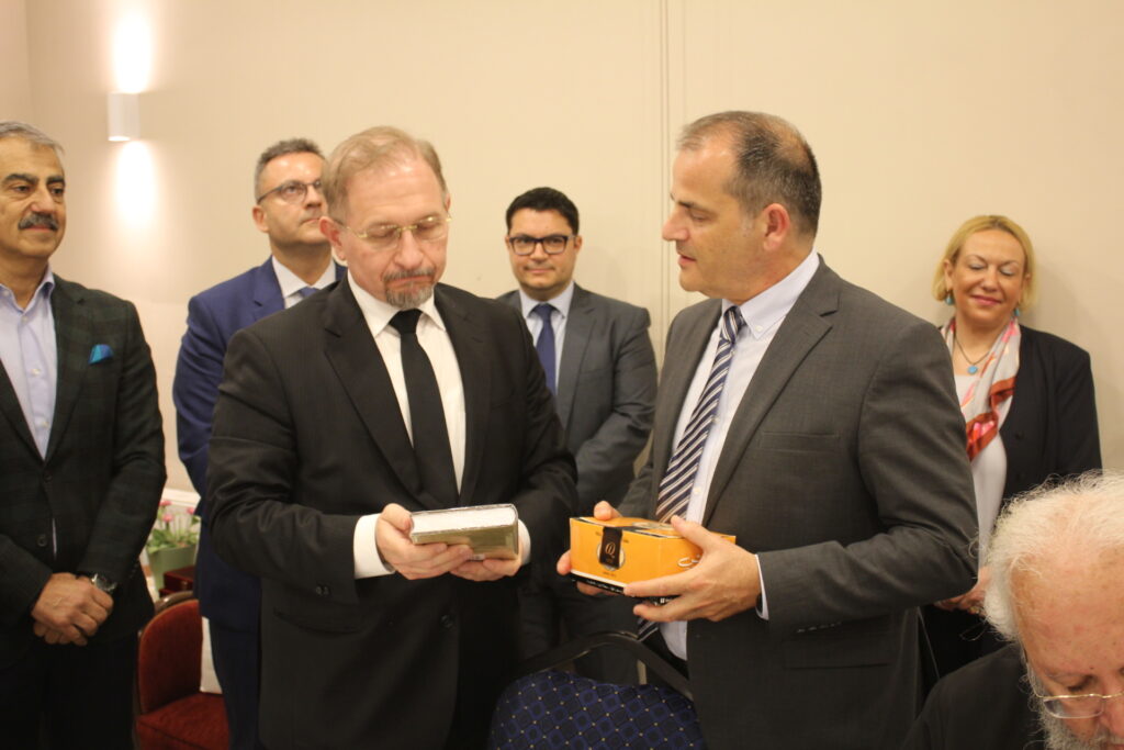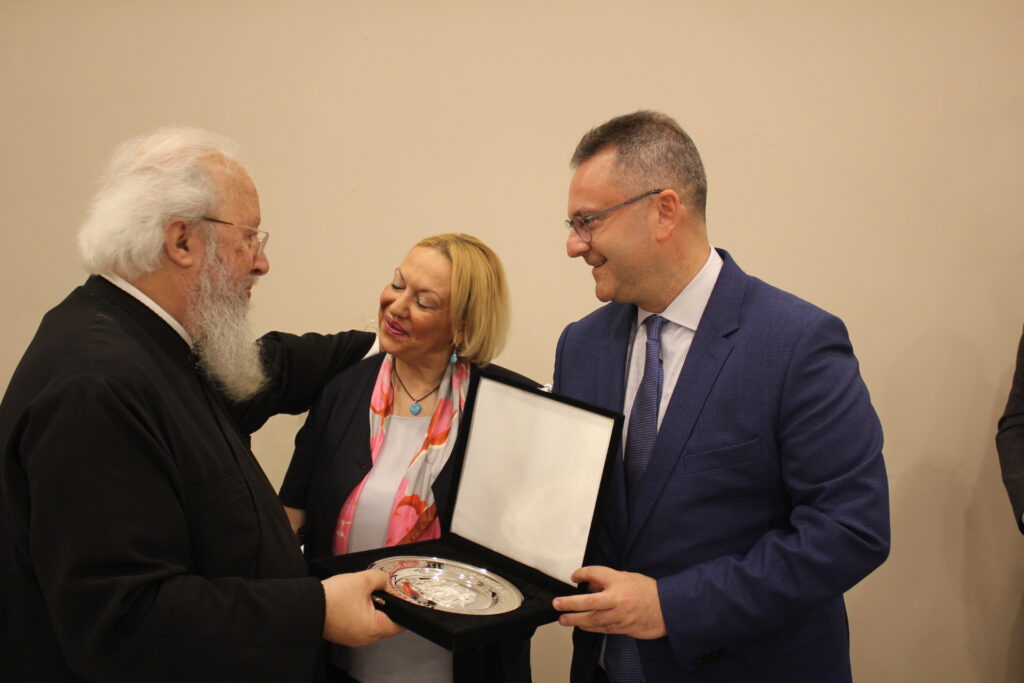 Ο Προέδρος κ. Ανδρέας Βαφειάδης προσέφερε αναμνηστικά δώρα τιμής και εκτίμησης προς τον Πανιερώτατο Μητροπολίτη Φαναρίου κ. Αγαθάγγελο, Γενικό Διευθυντή της Αποστολικής Διακονίας της Εκκλησίας της Ελλάδος, στον Μητροπολίτη Κυδωνίων κ. Αθηναγόρα, στον Άρχοντα και πρώην Πρόεδρο κ. Παντελεήμονα Βίγκα, τον νυν Πρόεδρο κ. Νικόλαο Καλαμάρη, την Πρόεδρο της Κοινότητας Αγίου Νικολάου κα. Παρασκευή – Ρέα Καλφάογλου, τον Πρωτοπρεσβύτερο κ. Κωνσταντίνο Βαρθολομαίο – Γενικό Αρχιερατικό Επίτροπο, ο δε κ. Νικόλαος Καλαμάρης, προσέφερε αντιστοίχως δώρο ενθύμησης και ομογάλακτης αγάπης στον Πρόεδρο κ. Ανδρέα Βαφειάδη καθώς και στην παρευρισκόμενη Γενική Γραμματέα της Ε.Κ.Κ. – κας Βίλυς Ζουέ, εις ενθύμηση της παρουσίας της στην όμορφη αυτή εκδήλωση των δύο Κοινοτήτων Αλεξανδρείας και Νεοχωρίου.