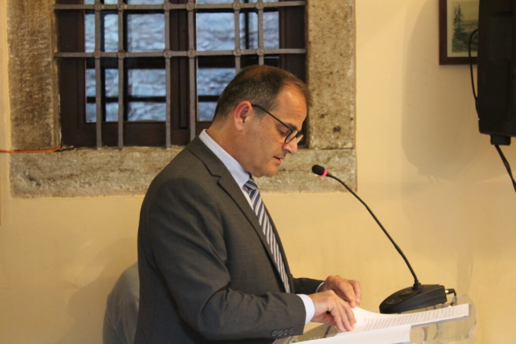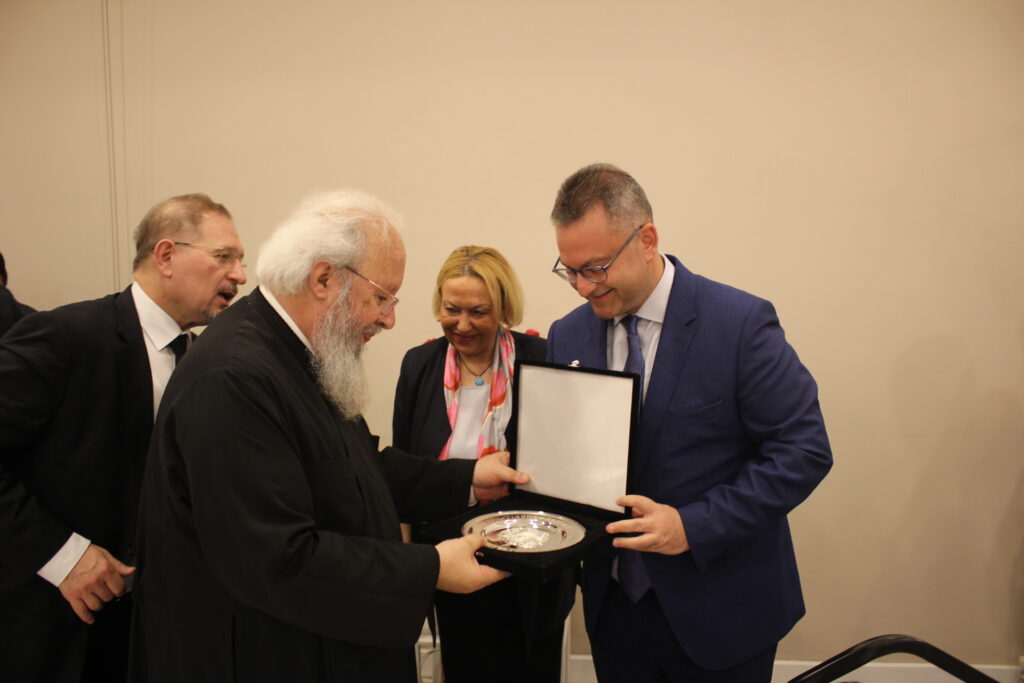 Καταχειροκροτούμενος ανέβηκε στο βήμα ο κ. Βαφειάδης, αφού πρώτα ο Προέδρος κ. Νικόλαος Καλαμάρης χαιρέτησε τους παρευρισκόμενους Αρχιερείς και τους θεσμικούς εκπροσώπους που παρίσταντο εντός της αιθούσης.