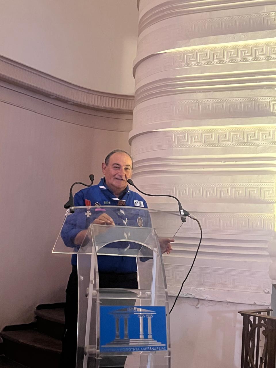 Η εκδήλωση άρχισε με την ομιλία του κ. Μαρκοζάνη, ο οποίος καλωσόρισε τους θεσμικούς εκπροσώπους και τους παριστάμενους Αλεξανδρινούς και ανεφέρθη με θέρμη και αγάπη γι΄ αυτό που επιχειρεί ο προσκοπισμός από ιδρύσεώς του, ενώ παράλληλα ανέδειξε το ρόλο και την προσφορά των Προσκόπων Αλεξανδρείας, οποιαδήποτε στιγμή και οπουδήποτε το απαιτήσει η Ελληνική Κοινότητα, το Πατριαρχείο και τα θεσμικά σωματεία της πόλης.