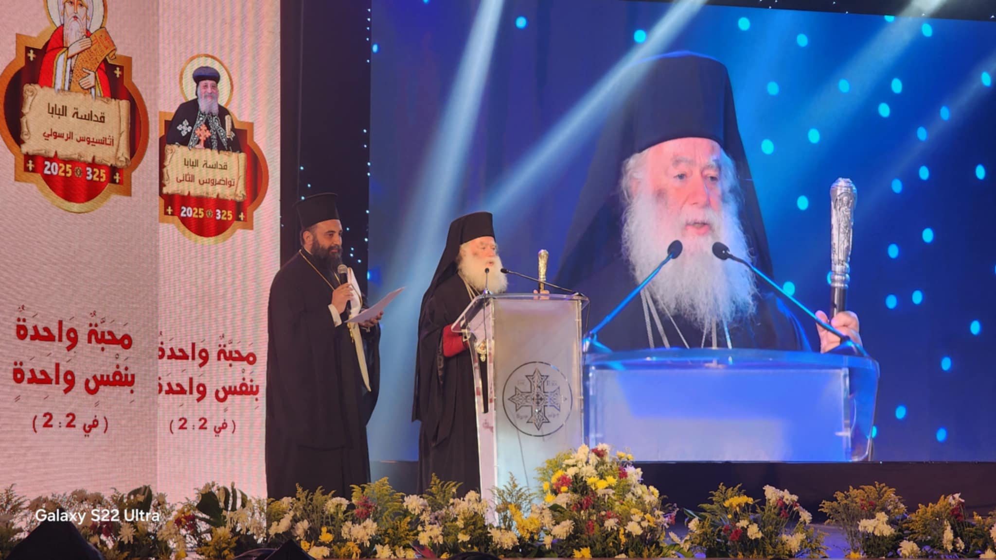 Εκφράζοντας τις θερμές του ευχαριστίες προς τον Αγιώτατο Πατριάρχη Tawadros Β΄ για την τιμητική πρόσκληση, ο Μακαριώτατος Πατριάρχης Θεόδωρος Β’ τόνισε την αναγκαιότητα διατηρήσεως της ελπίδος στο σύγχρονο κόσμο, λέγοντας χαρακτηριστικά: «Μπορεί να υπάρχουν θεολογικές διαφορές, όμως υπάρχει κάτι άλλο που μας ενώνει: ο κοινός πόνος, η κοινή μαρτυρία, η αγάπη για τον Χριστό και για τον συνάνθρωπο ανεξαρτήτως εθνικότητας, χρώματος, φυλής ή θρησκείας.»