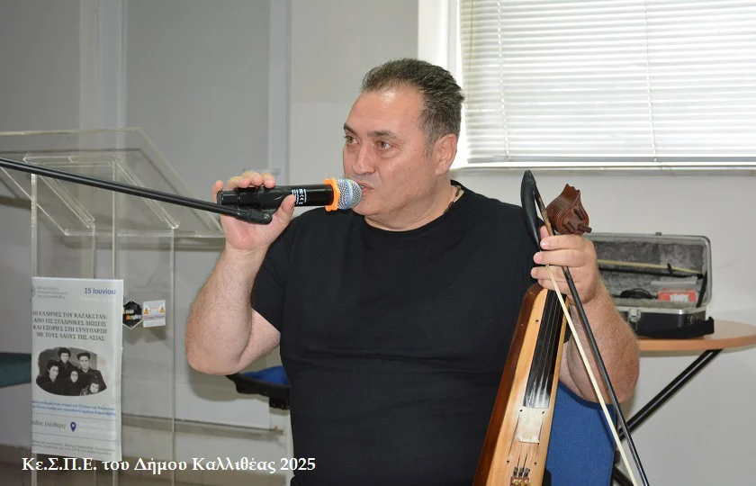 Στο τέλος της εκδήλωσης τους παρευρισκόμενους καθήλωσε ο γνωστός και διακεκριμένος λυράρης και τραγουδιστής Δημήτρης Καρασαββίδης, γεννημένος στο Καζακστάν, με μια μουσική αναδρομή στην ιστορία των Ελλήνων Ποντίων αυτής της απέραντης και μακρινής χώρας.