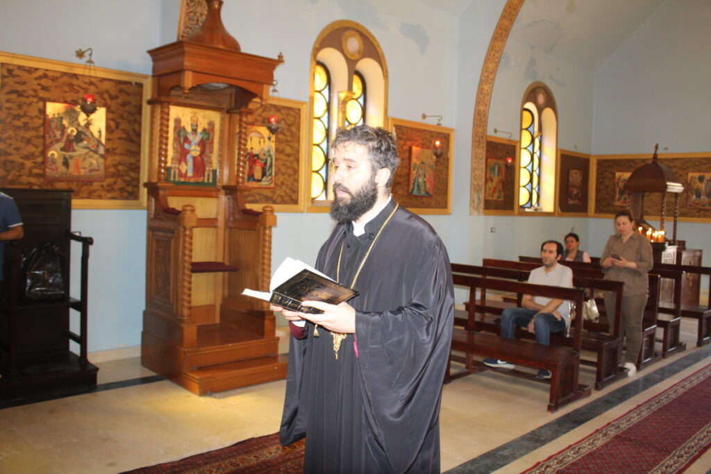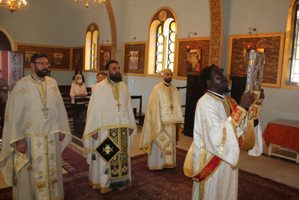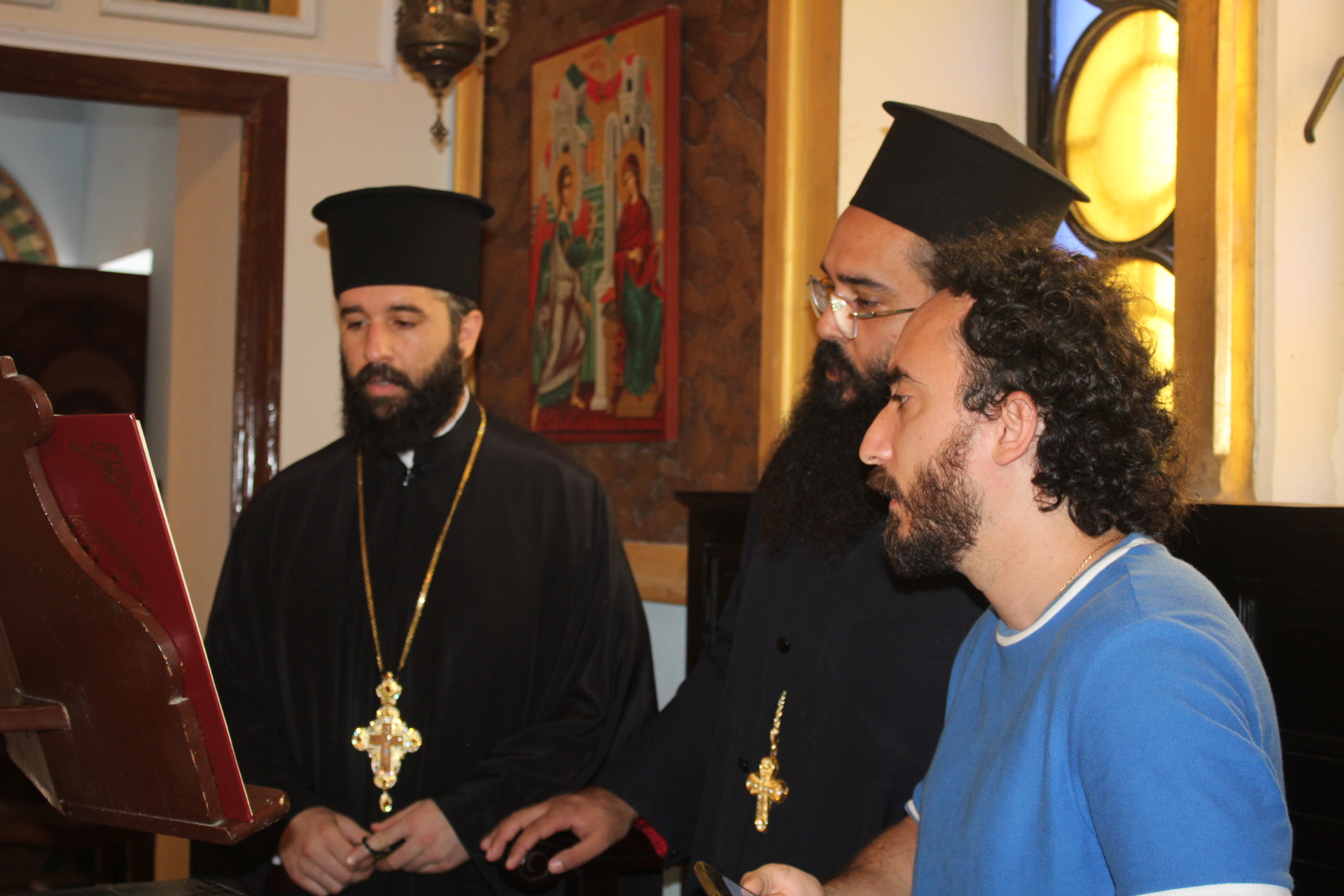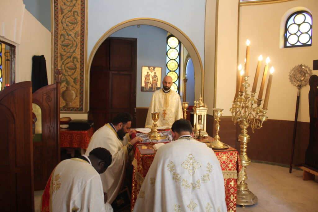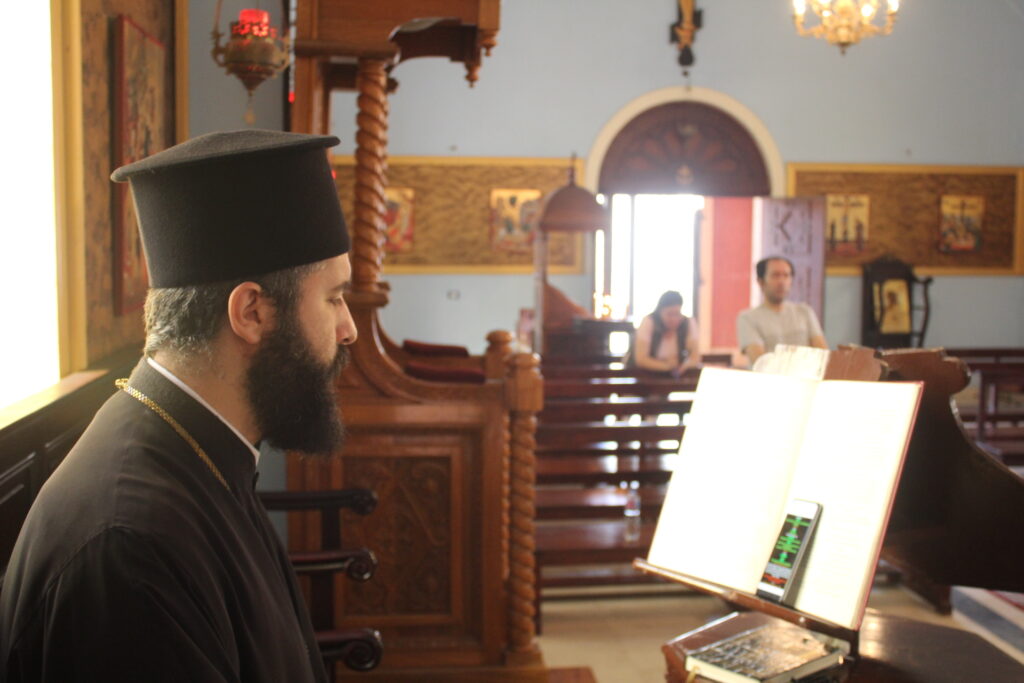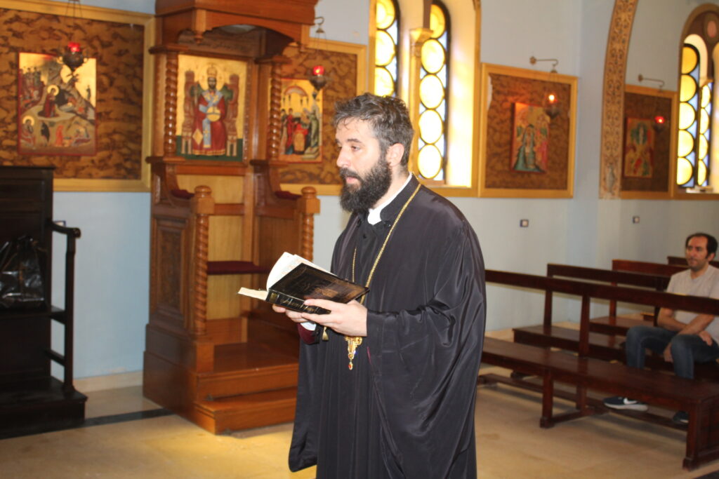 Στο αναλόγιο τους βυζαντινούς ύμνους απέδωσαν, ο Πανοσιολογιώτατος Αρχιμανδρίτης κ. Επιφάνιος με τον Πατέρα Fadi και τον αραβόφωνο ιεροψάλτη Κρίστιαν Τουρκουμάν.