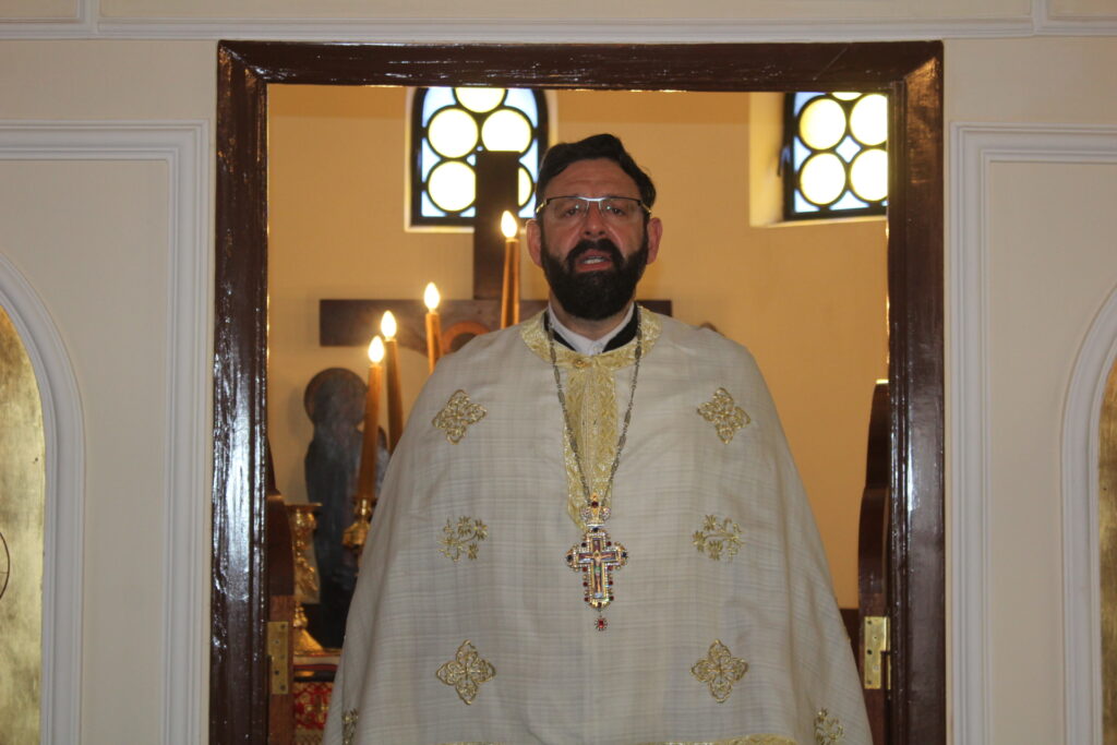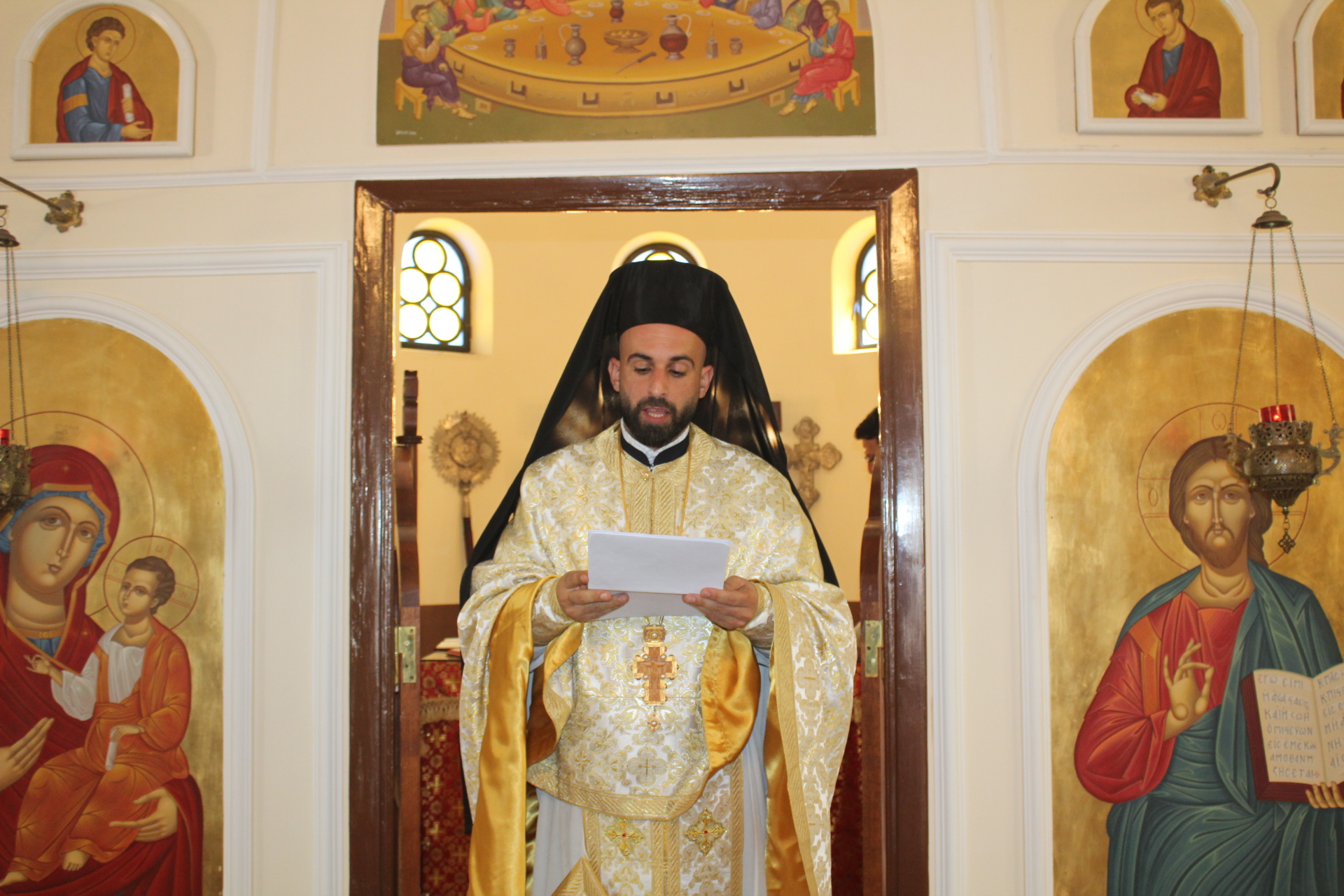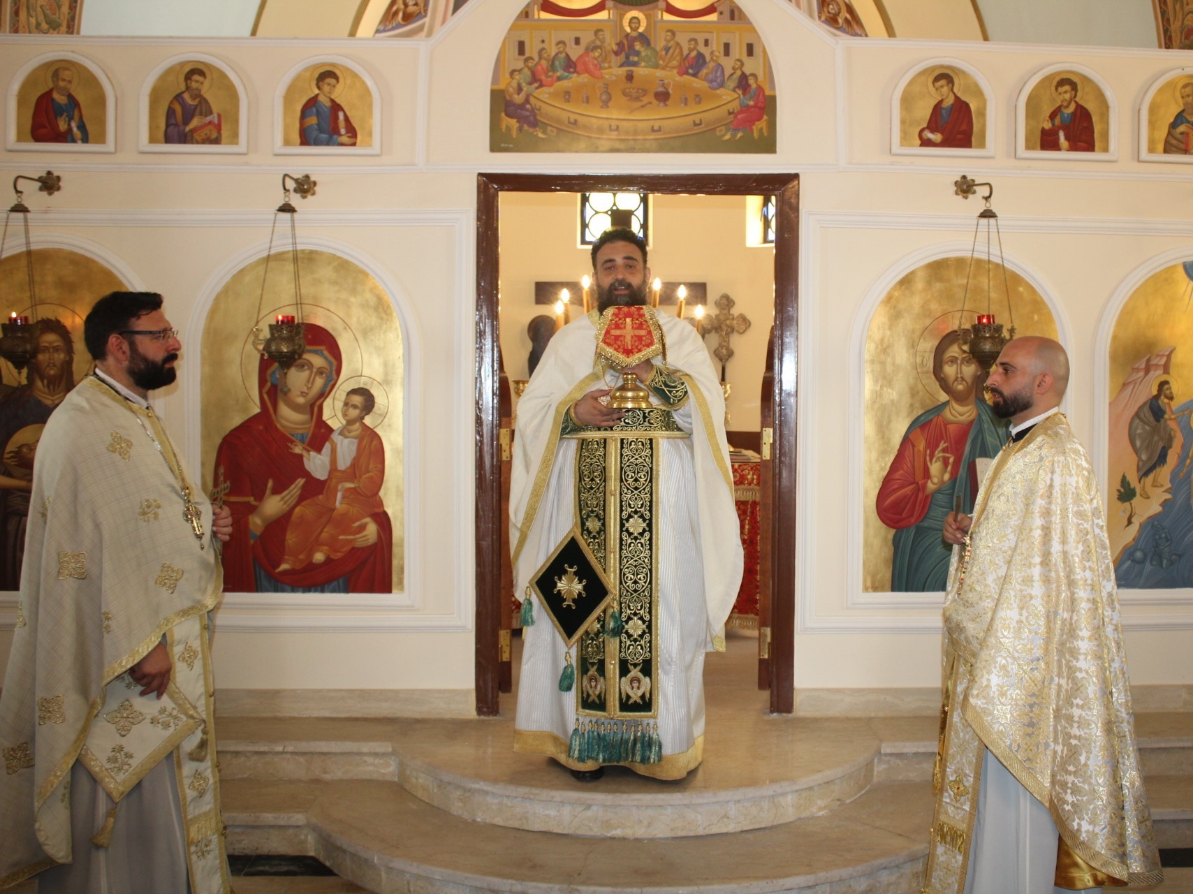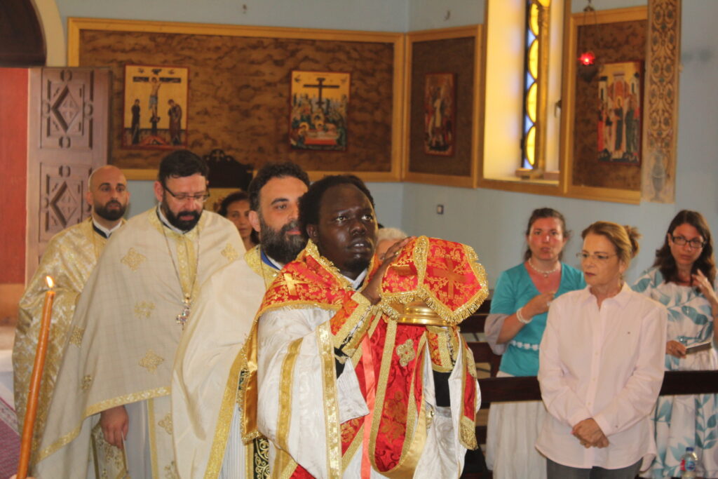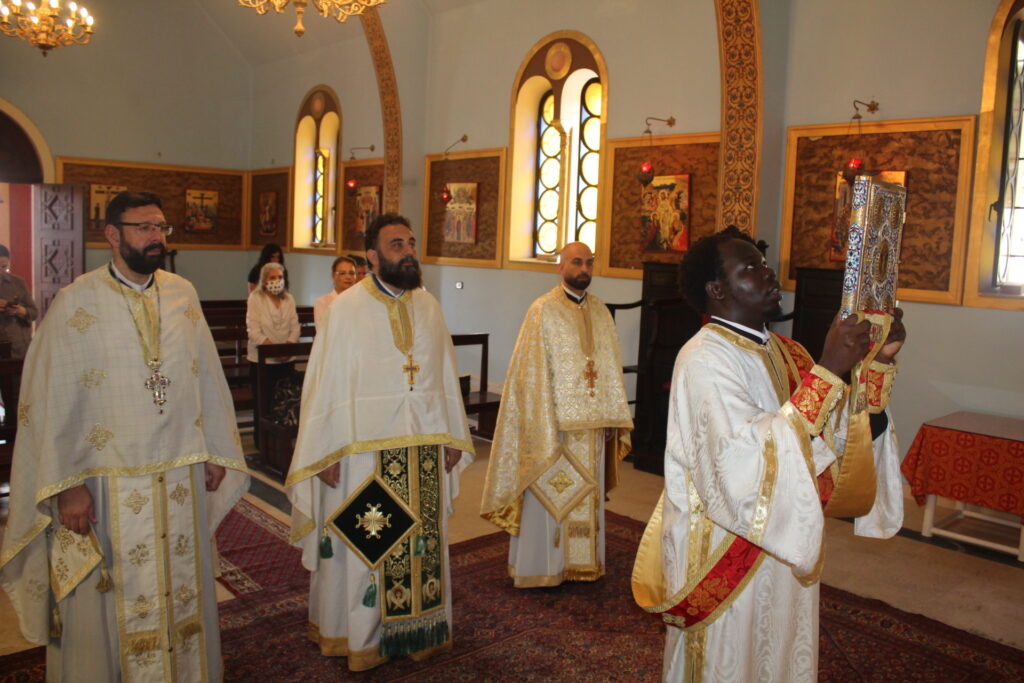Στο αναλόγιο τους βυζαντινούς ύμνους απέδωσαν, ο Πανοσιολογιώτατος Αρχιμανδρίτης κ. Επιφάνιος με τον Πατέρα Fadi και τον αραβόφωνο ιεροψάλτη Κρίστιαν Τουρκουμάν.