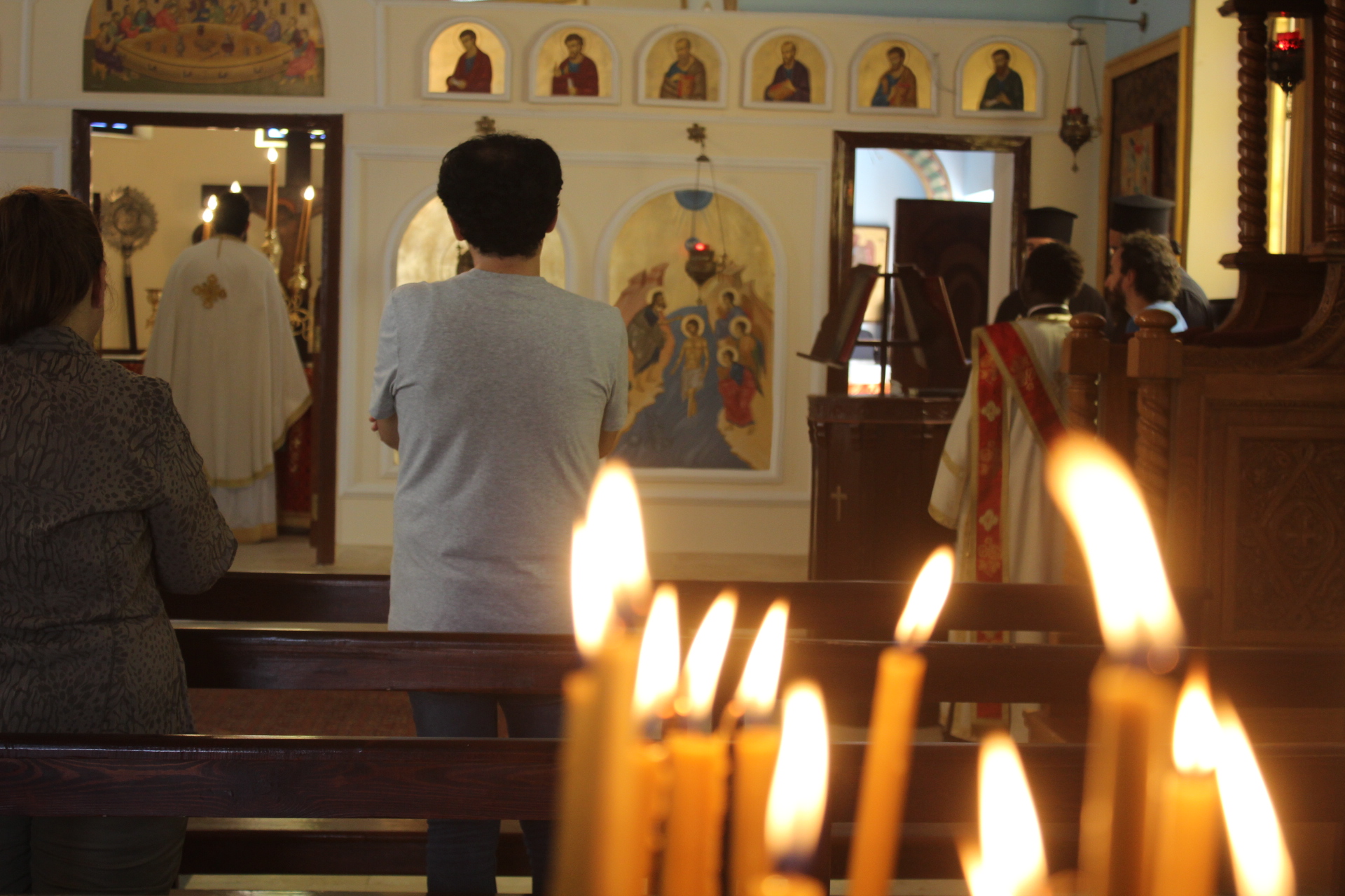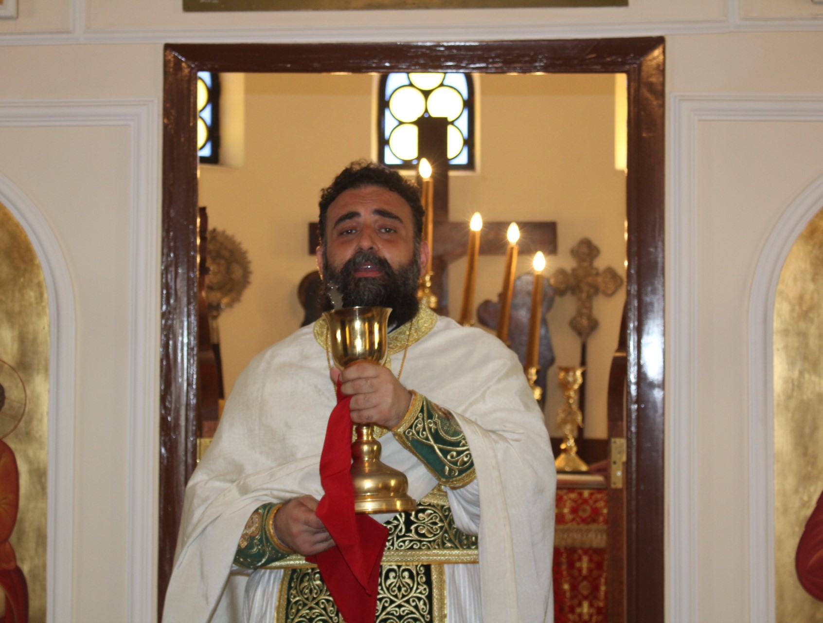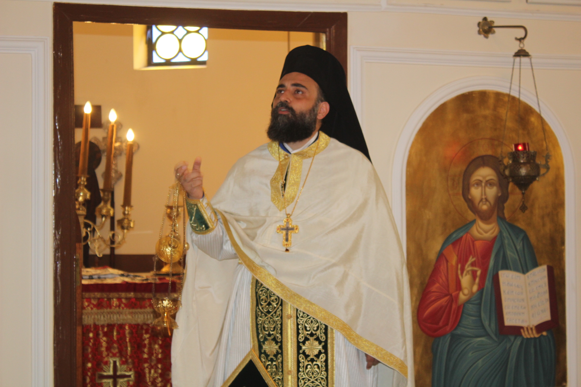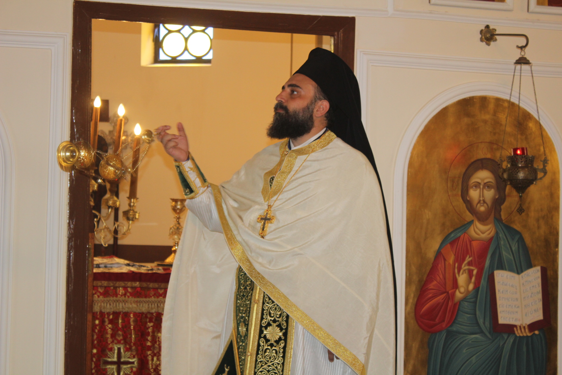 Στο αναλόγιο τους βυζαντινούς ύμνους απέδωσαν, ο Πανοσιολογιώτατος Αρχιμανδρίτης κ. Επιφάνιος με τον Πατέρα Fadi και τον αραβόφωνο ιεροψάλτη Κρίστιαν Τουρκουμάν.