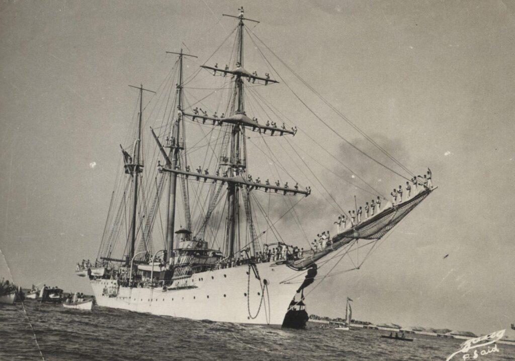 Το εκπαιδευτικό πλοίο επισκέφθηκε για πρώτη φορά την Αλεξάνδρεια τον Απρίλιο του 1930 υπό τη διοίκηση του τότε αντιπλοιάρχου Αλέξανδρου Σακελλαρίου, πρώην Διοικητού της Ναυτικής Ακαδημίας Πολέμου.