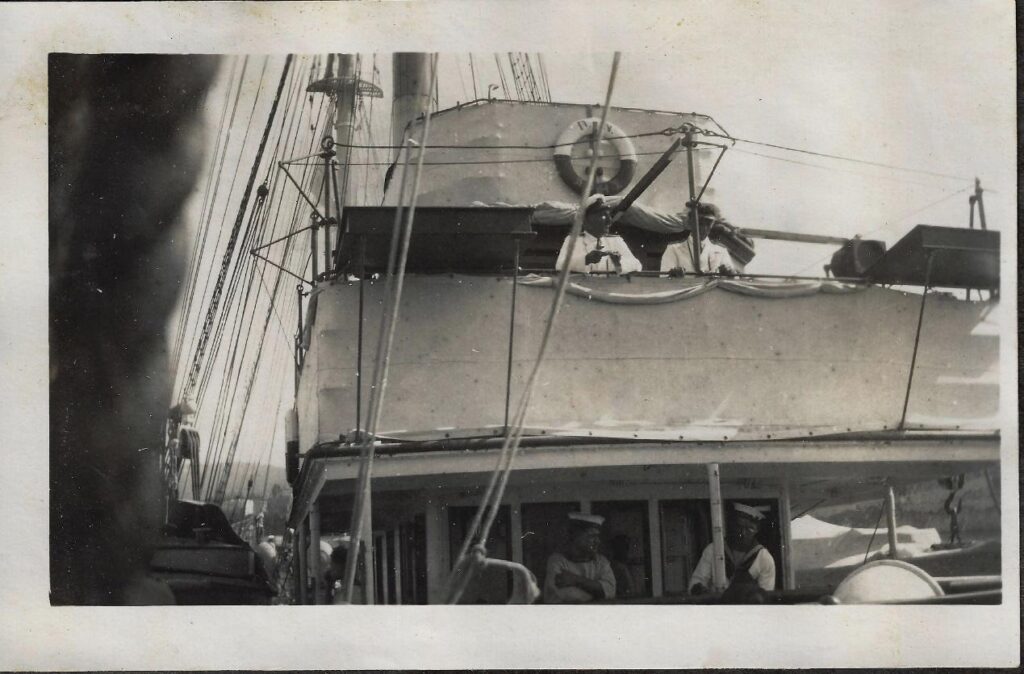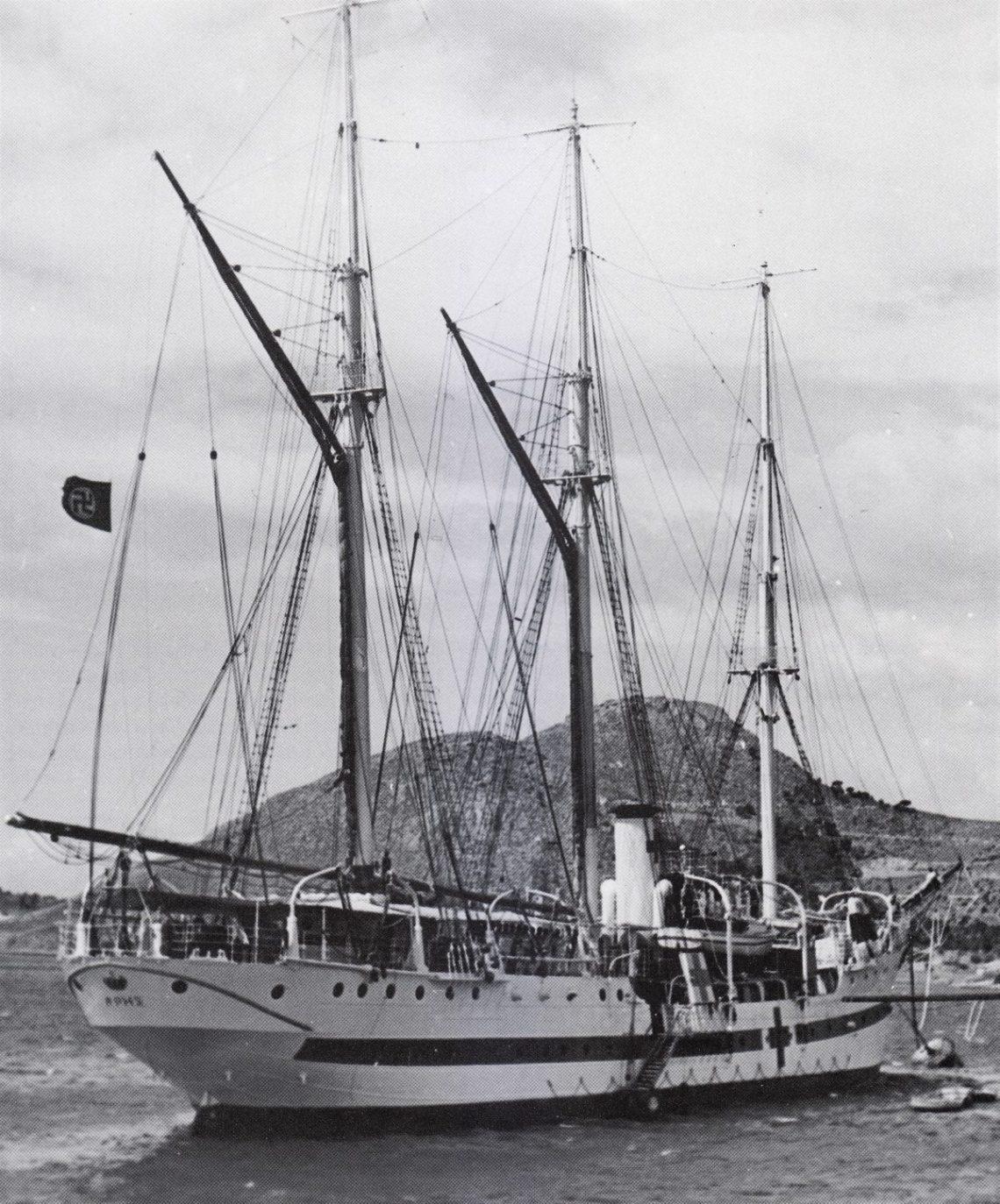 Μια σπάνια φωτογραφία. To Άρης ως Gratz, στον Νάυσταθμο Σαλαμίνος, με τη γερμανική σημαία στον ιστό του.