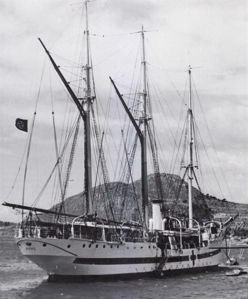 Με την έναρξη του Β ́ Παγκοσμίου Πολέμου και την εισβολή των Γερμανών, λόγω της χαμηλής ταχύτητάς του, δεν ακολούθησε τον Ελληνικό Στόλο στην Αίγυπτο, οπότε τον Μάιο του 1941 αιχμαλωτίστηκε από τους Γερμανούς στο ναύσταθμο της Σαλαμίνας. Μετασκευάστηκε στην Σαλαμίνα σε πλωτό νοσοκομείο δυναμικότητος 299 κλινών για να καλύψει υγειονομικές ανάγκες των ναζιστικών δυνάμεων και στις 28 Νοεμβρίου 1941 μετονομάστηκε σε “Γκρατς”. Το ελληνικό πλήρωμα υπό τον Λοχαγό ιατρό Φραγκαντώνη και άλλους 60 περίπου ναύτες συνέχισε να υπηρετεί στο πλοίο. Αρχηγός της γερμανικής ομάδος ήταν ο Hellmuth Schulze, με βοηθό τον Klaus Harms. Μετέφερε τραυματίες από την Πάτρα, την Κρήτη, την Μύλο, τον Βόλο στην Θεσσαλονίκη. Επισκέφθηκε για τέταρτη και τελευταία φορά την Αίγυπτο τον Νοέμβριο του 1942, κατά την διάρκεια της δεύτερης μάχης του Αλαμέιν οπότε και παρέλαβε 170 τραυματίες από το λιμάνι της Μάρσα Ματρούχ και τους μετέφερε στον Πειραιά. Στο επόμενο ταξίδι προσέγγισε το λιμάνι Στις 5 Δεκεμβρίου 1942 στις 6:15 π.μ., χτύπησε σε νάρκη στα ανοικτά του συμπλέγματος των νήσων Cani, 10 ναυτικά μίλια βορειοανατολικά του λιμανιού της Μπιζέρτας της Τυνησίας και βυθίστηκε με ελάχιστους επιζώντες, ενώ υπάρχει και ανεπιβεβαίωτη πληροφορία ότι τορπιλίστηκε. Μεταξύ των απωλειών ήταν και 30 Έλληνες από το πλήρωμα.