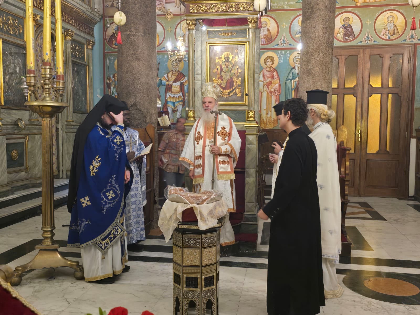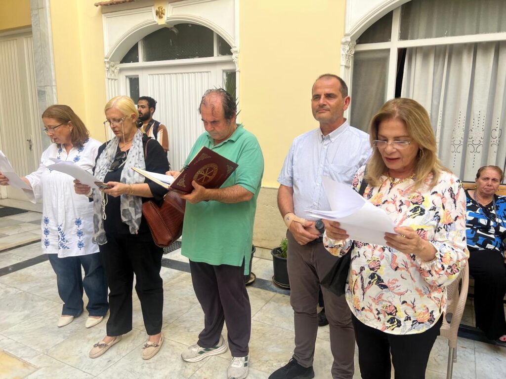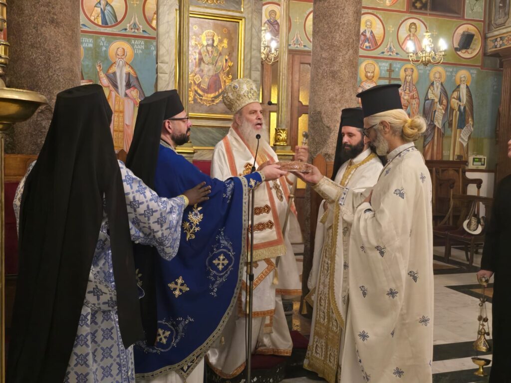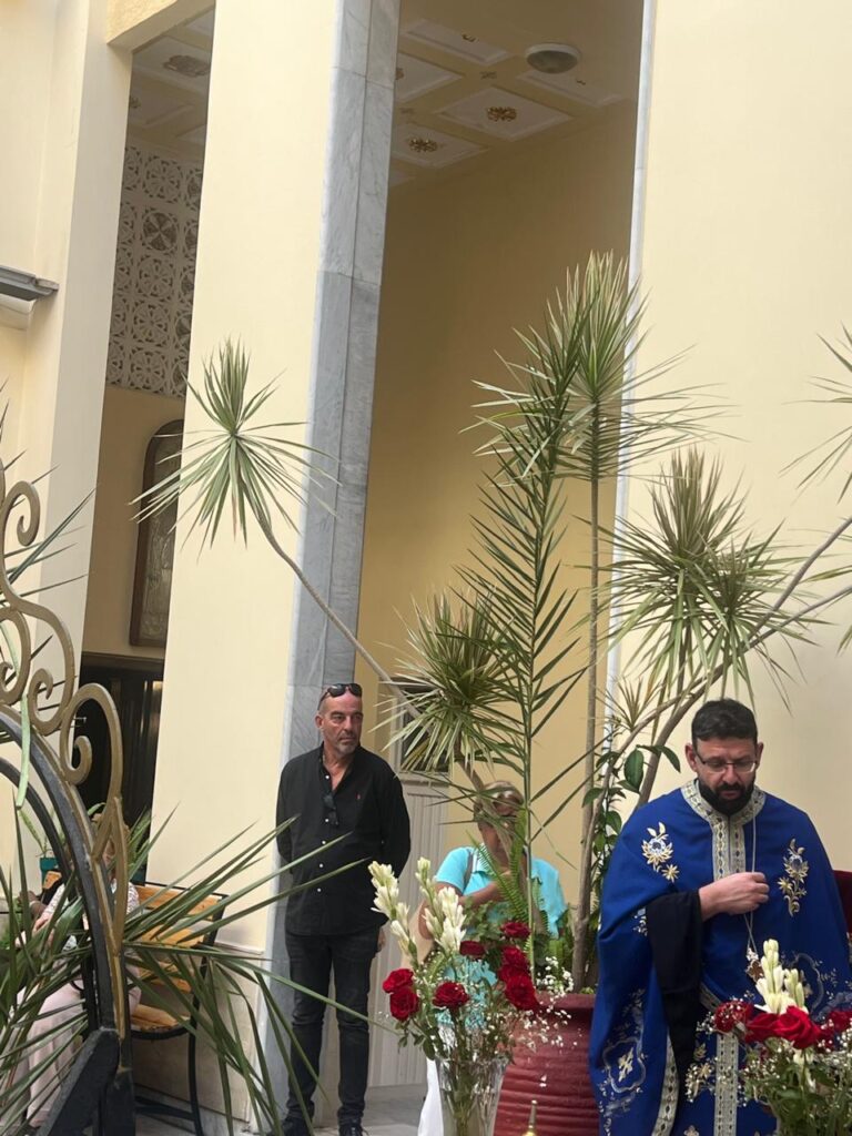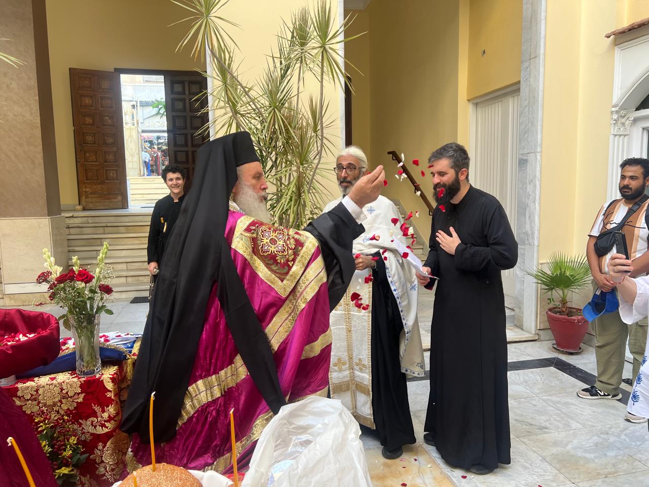 Συμπροσευχήθηκαν την Αγία αυτή ημέρα, οι Αρχιμανδρίτες κύριοι: Αθανάσιος και Επιφάνιος καθώς και ο π. Στέφανος με τον αραβόφωνο ιερέα π. Σάμυ. Στο ψαλτήρι ο σταθερός ιεροψάλτης κ. Ιωάννης Γενειατάκης με τον υιό του Αναστάσιο.