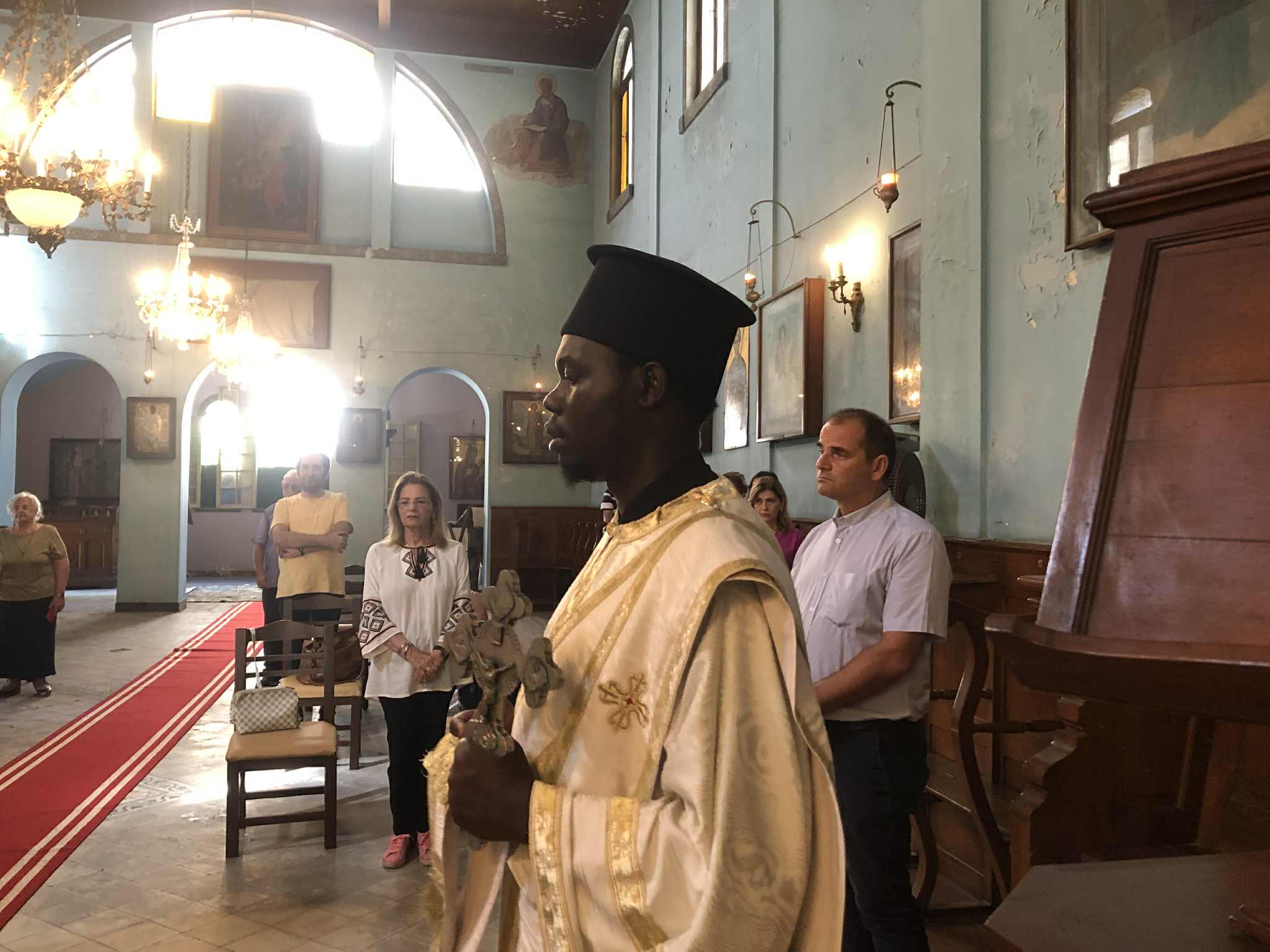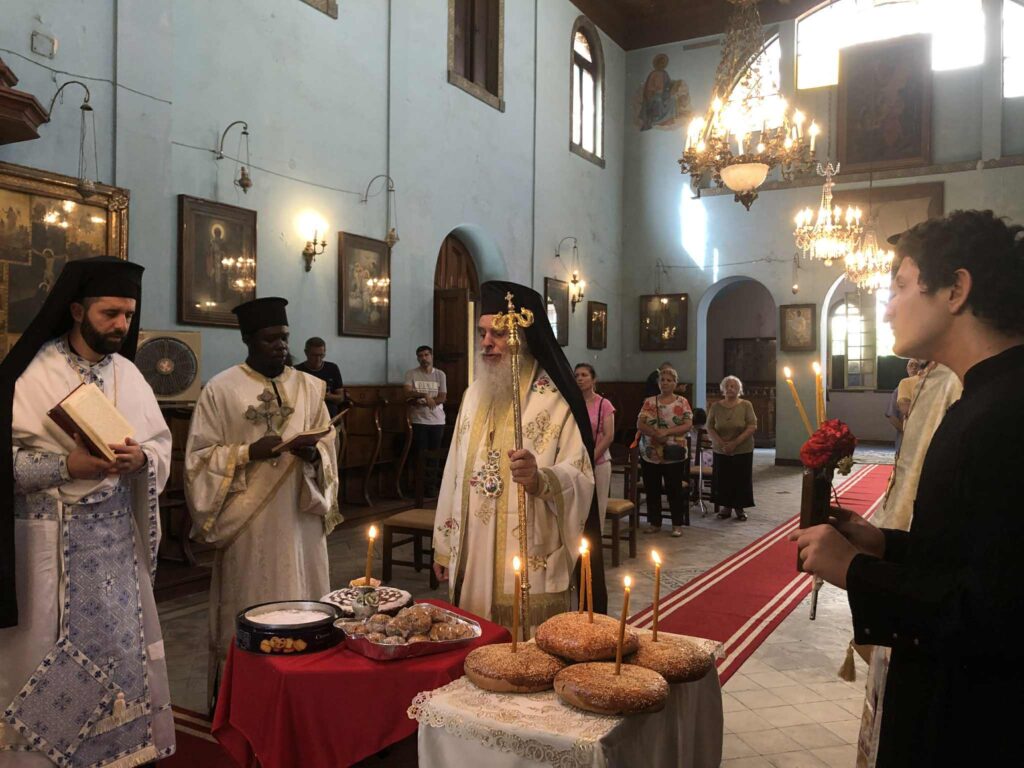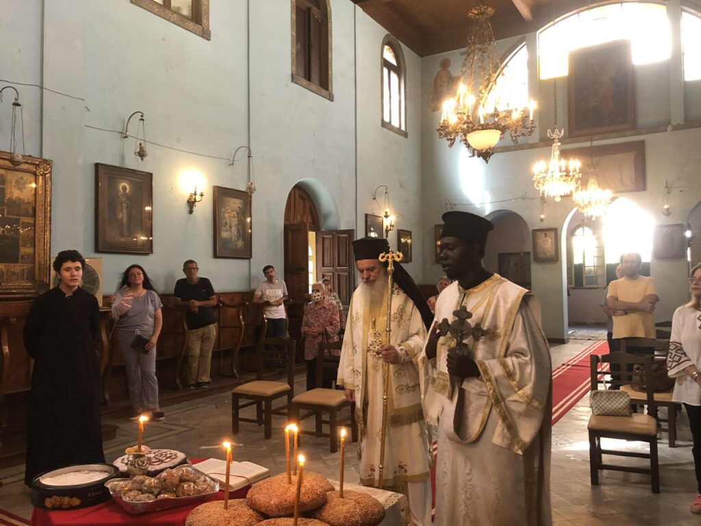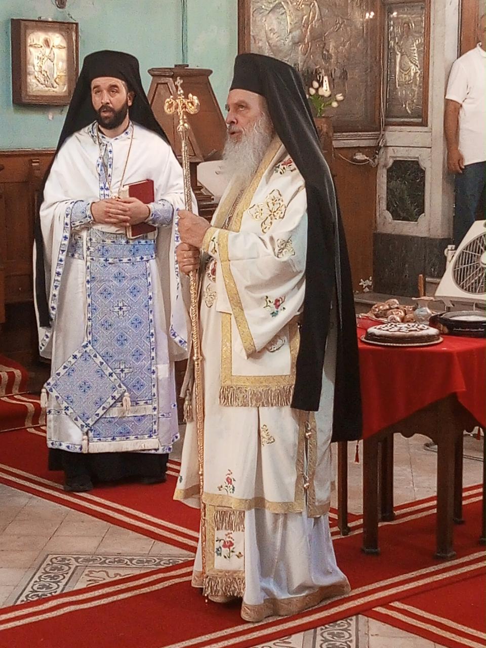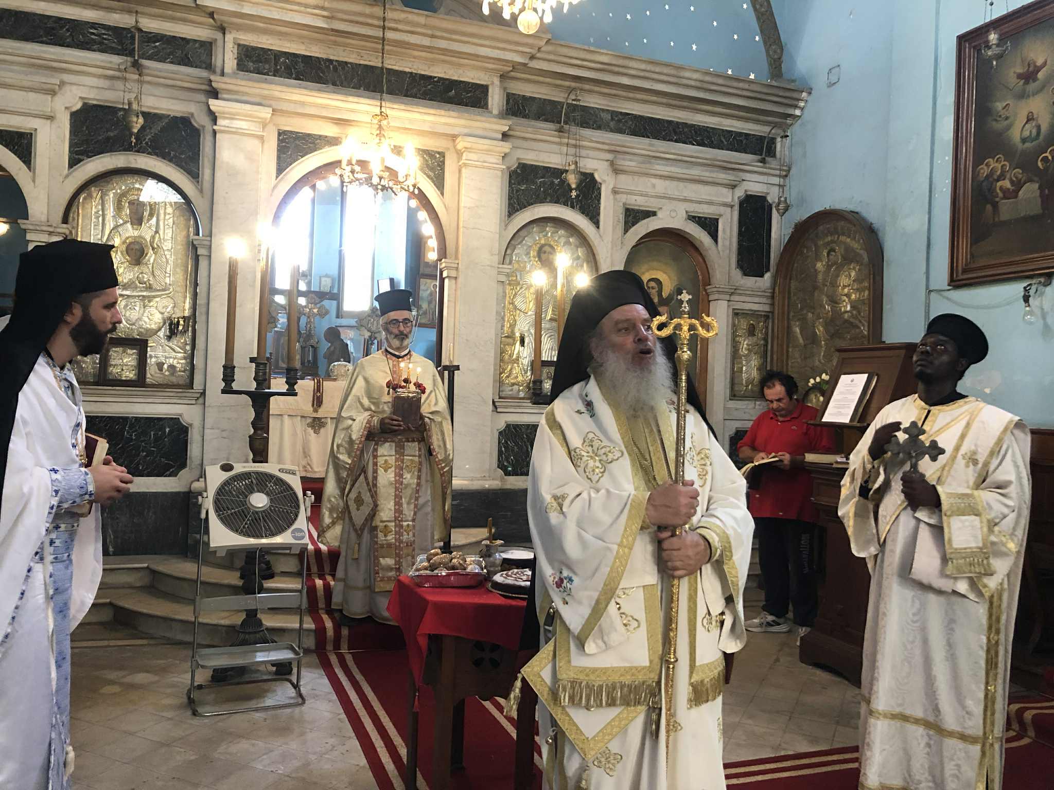 Ο Σεβασμιώτατος Μητροπολίτης κ. Γερμανός, Προϊστάμενος της Ιεράς Μονής του Οσίου Σάββα του Ηγιασμένου, προεξήρχε της Θείας Λειτουργίας, με συμπροσευχόμενους τον Πανοσιολογιώτατο Αρχιμανδρίτη  κ. Επιφάνιο, τον Πρωτοπρεσβύτερο αραβόφωνο κ. Σάμυ και τον Αρχιδιάκονο κ. Στέφανο.