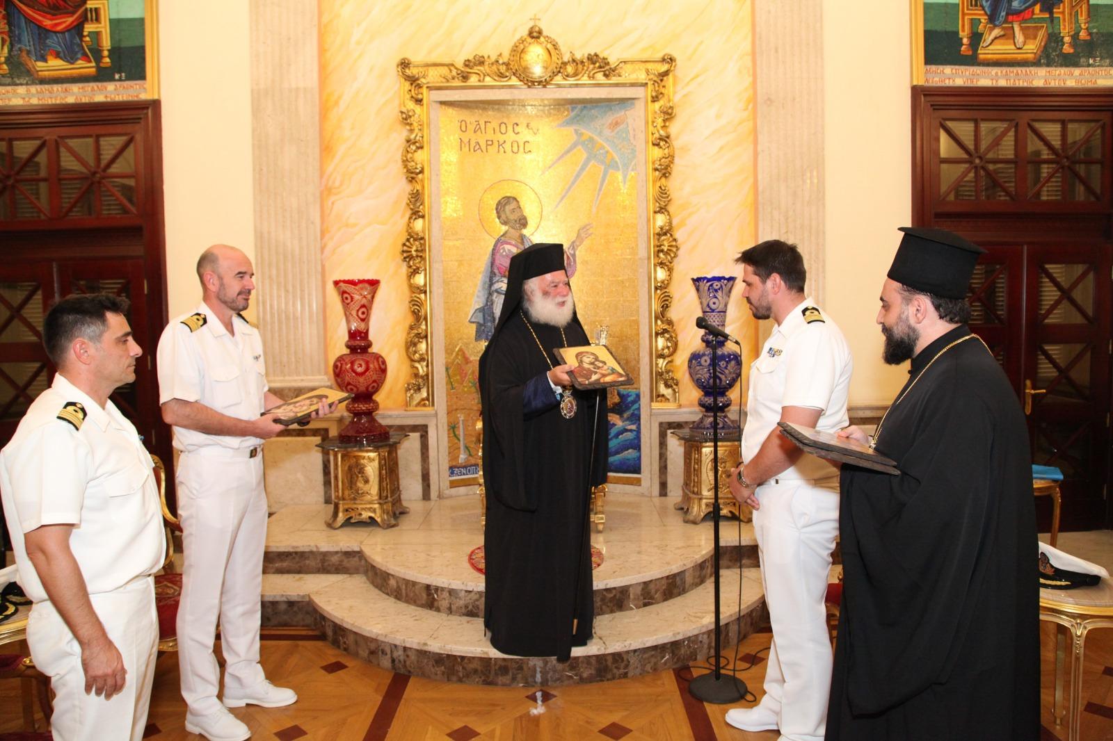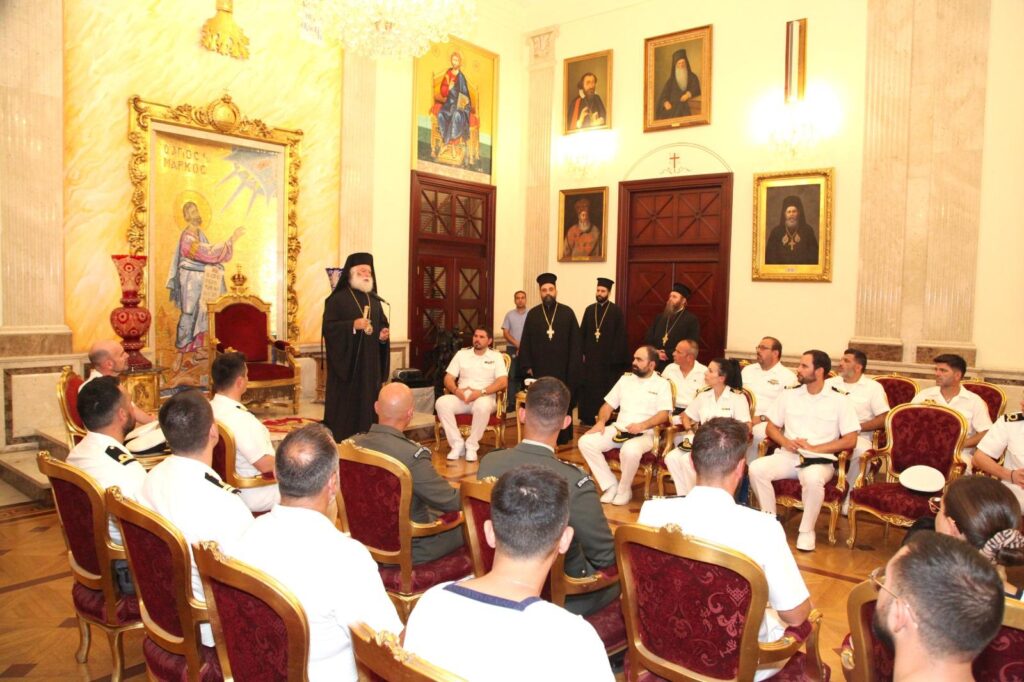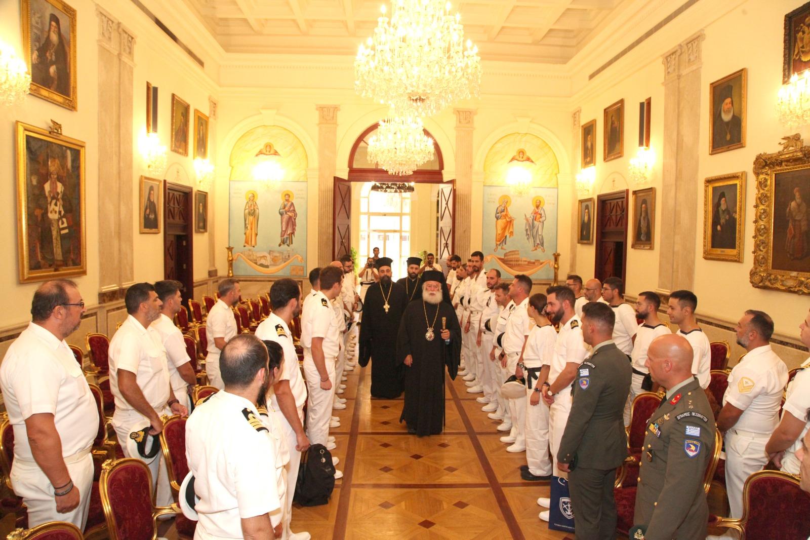 Στην Πατριαρχική Καθέδρα του Δευτερόθρονου Πατριαρχείου, υποδέχθηκε ο Μακαριώτατος Πάπας και Πατριάρχης Αλεξανδρείας και πάσης Αφρικής κ.κ. Θεόδωρος Β΄ τα πληρώματα της Φρεγάτας «ΛΗΜΝΟΣ» και του Αρματαγωγού «ΙΚΑΡΙΑ», καθώς και στελέχη της Πολεμικής Αεροπορίας τα οποία επισκέπτονται την Μεγάλη Πόλη της Αλεξάνδρειας στο πλαίσιο της πολυεθνικής άσκησης “Bright Star 25”.